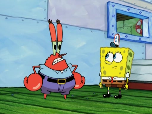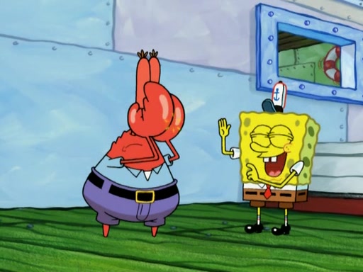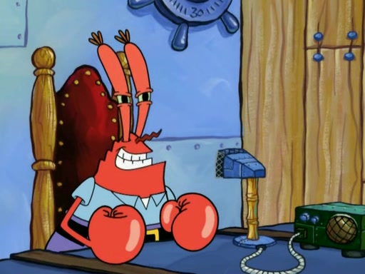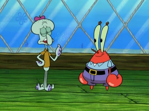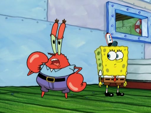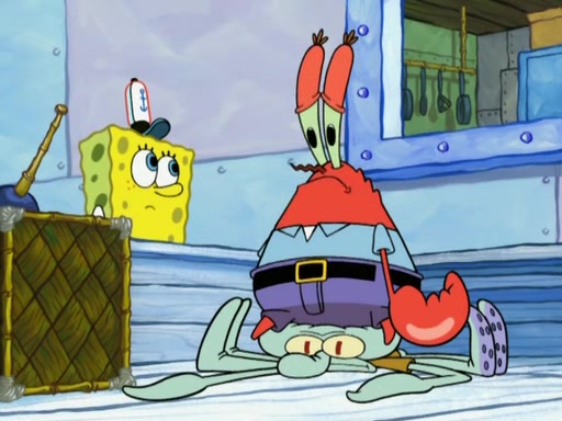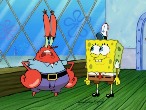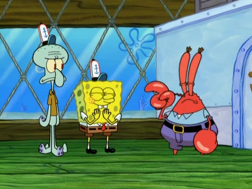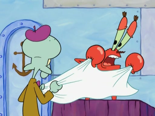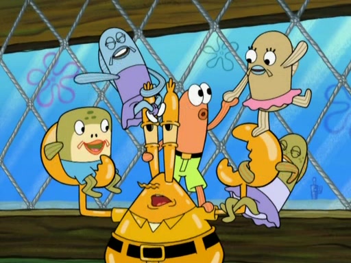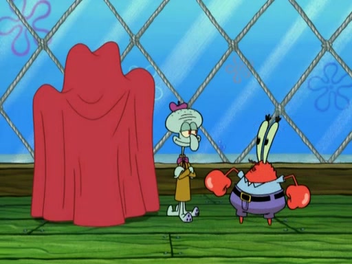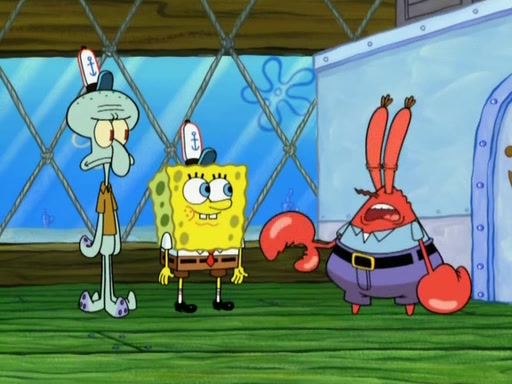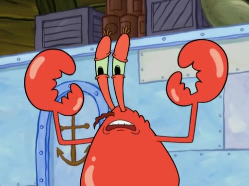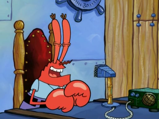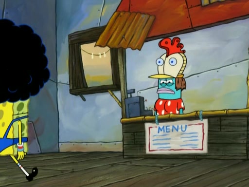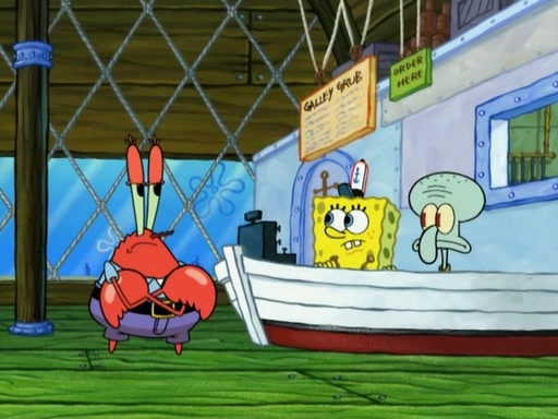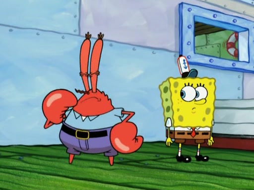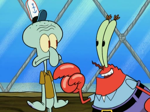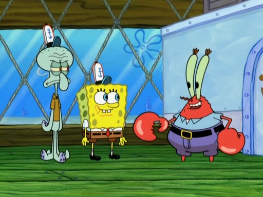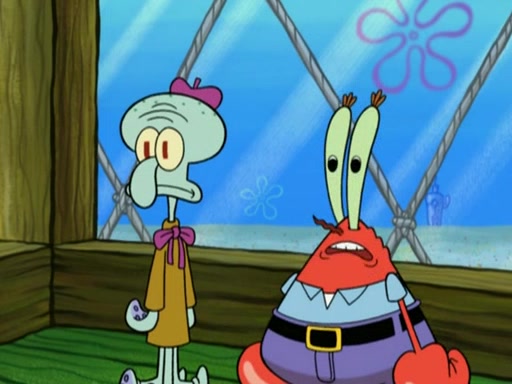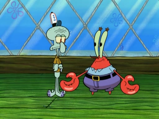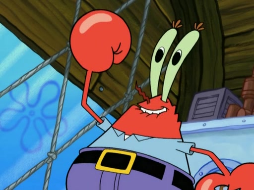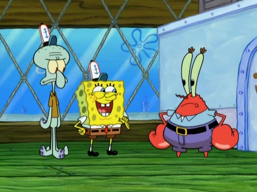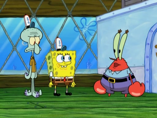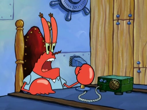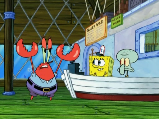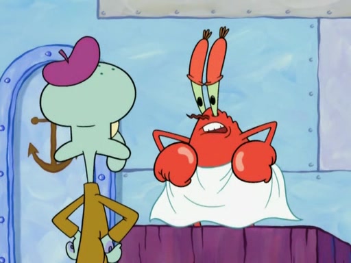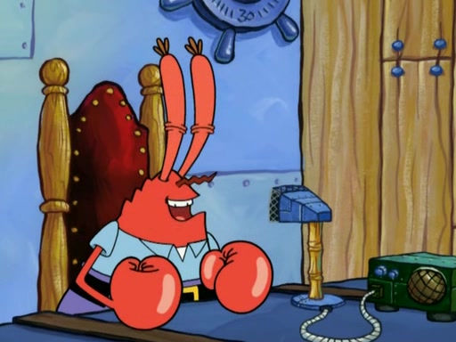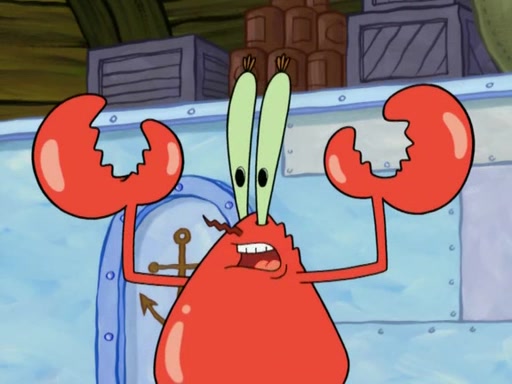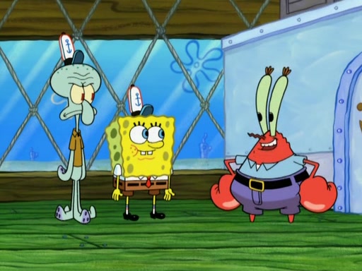Mr. Krabs is about to open the Krusty Krab, but nobody shows up. A commercial reveals everyone is at the Sea Chicken Shack, and he sends SpongeBob to find out what is making them more popular than them. He arrives at the place in a disguise. He tells Mr. Krabs that the store is a dump and it smells bad. He gets thrown out when he violates their No headbands rule. The large, outdoor Mr. Seachicken statue is why everyone is going there instead of the Krusty Krab. So, Mr. Krabs asks Squidward to make a statue of him. Mr. Krabs makes some various poses and Squidward keeps saying no until Mr. Krabs holds his arms in the air, and Squidward finds the perfect pose.