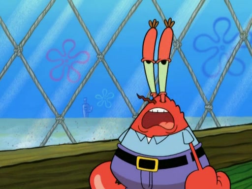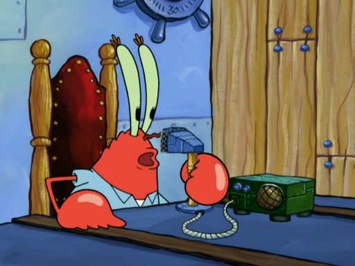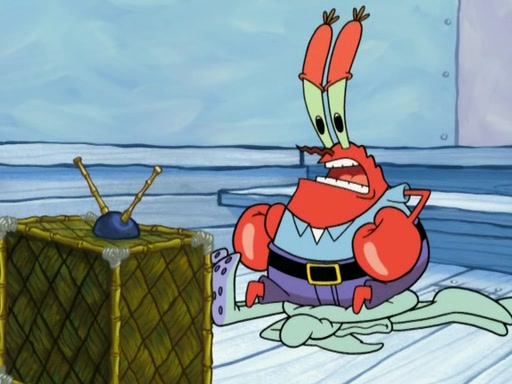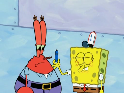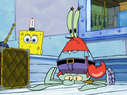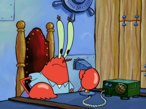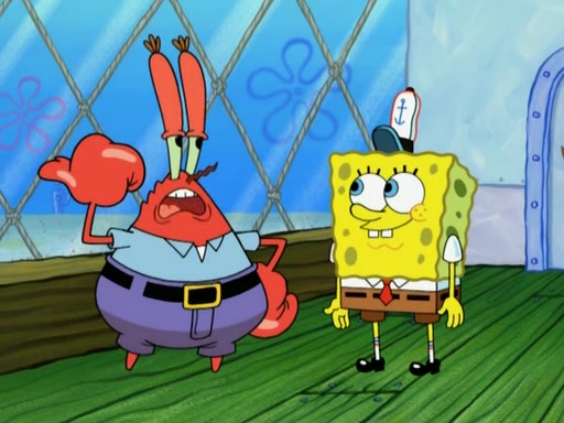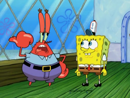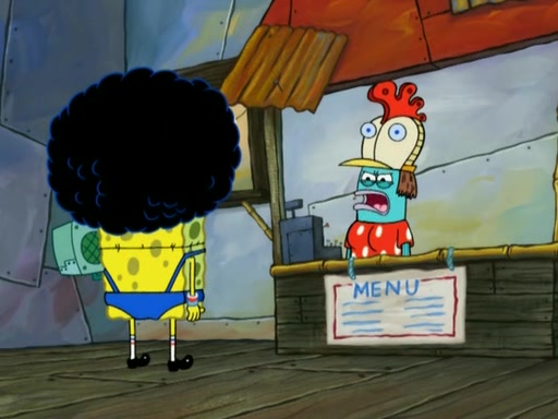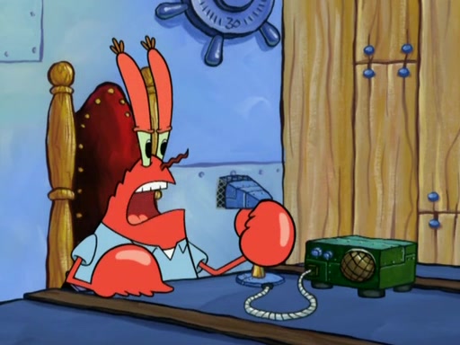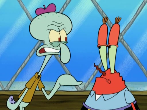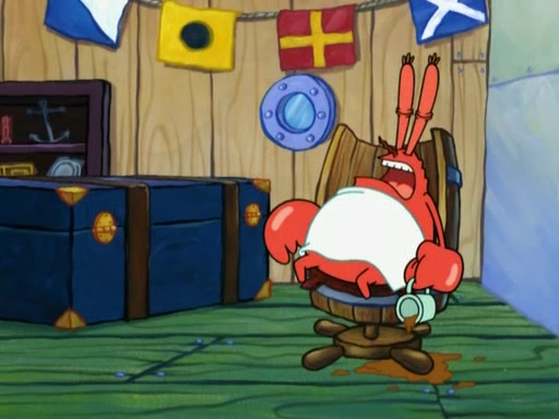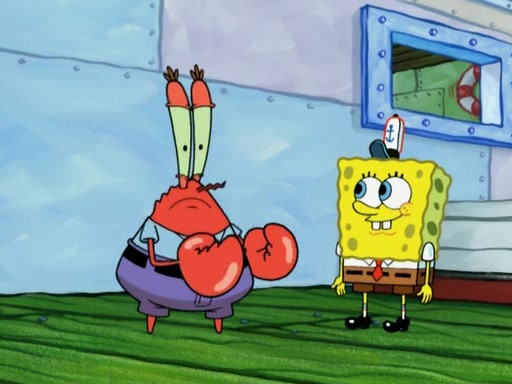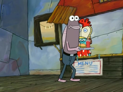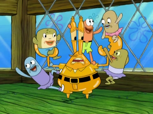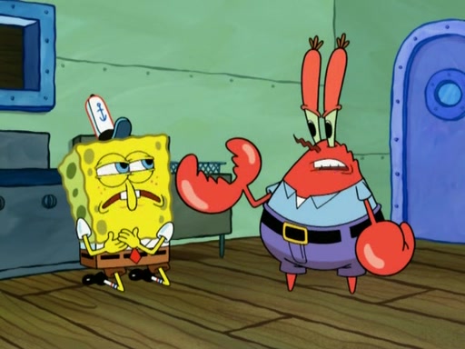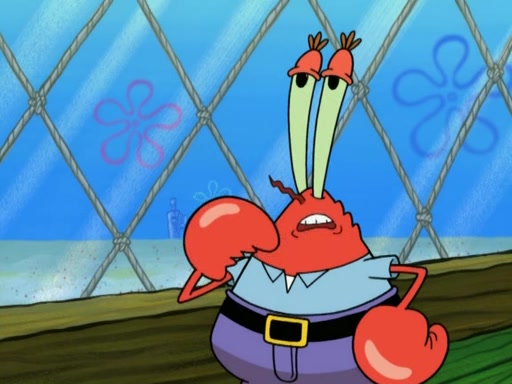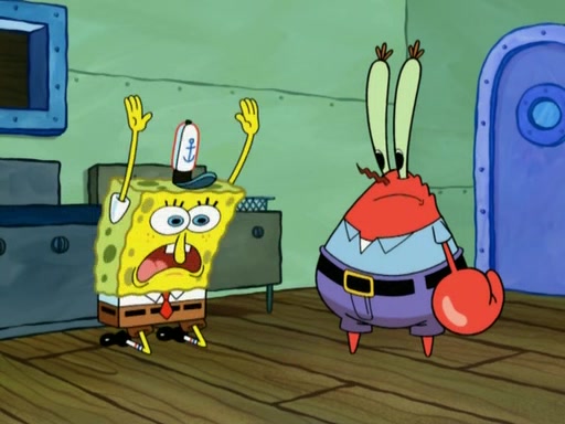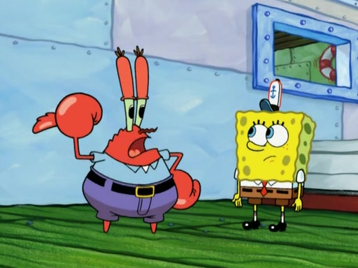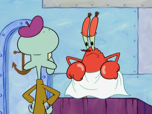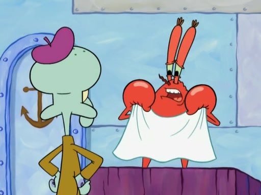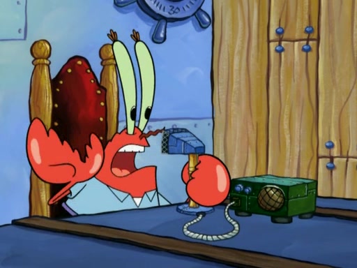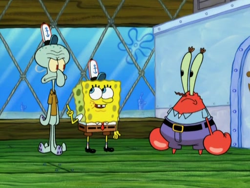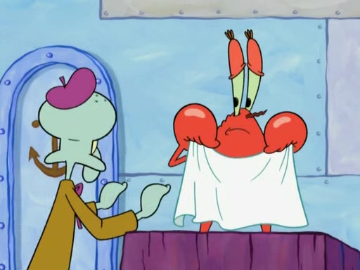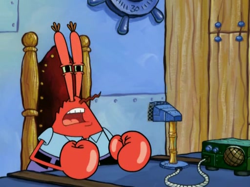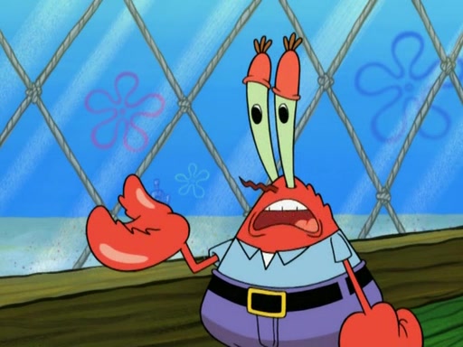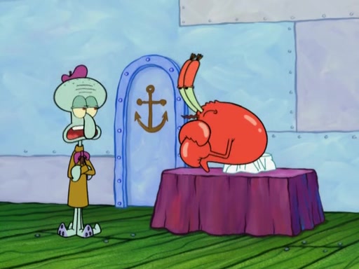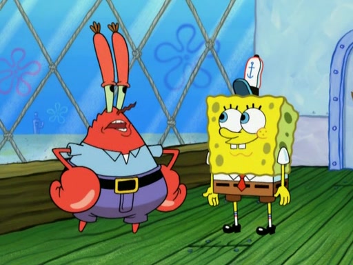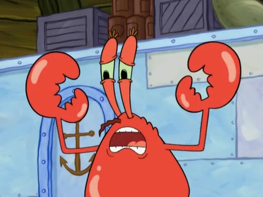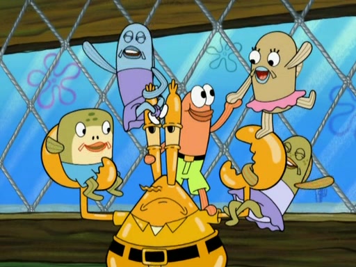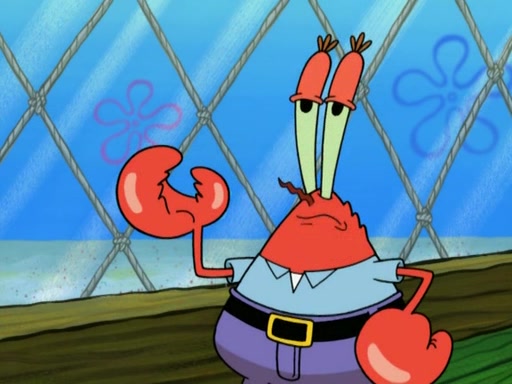 Mr. Krabs is about to open the Krusty Krab, but nobody shows up. A commercial reveals everyone is at the Sea Chicken Shack, and he sends SpongeBob to find out what is making them more popular than them. He arrives at the place in a disguise. He tells Mr. Krabs that the store is a dump and it smells bad. He gets thrown out when he violates their No headbands rule. The large, outdoor Mr. Seachicken statue is why everyone is going there instead of the Krusty Krab. So, Mr. Krabs asks Squidward to make a statue of him. Mr. Krabs makes some various poses and Squidward keeps saying no until Mr. Krabs holds his arms in the air, and Squidward finds the perfect pose.