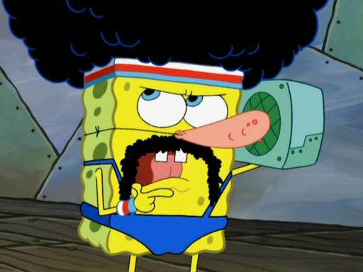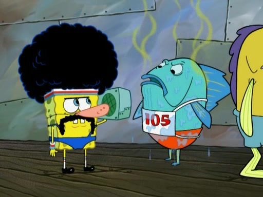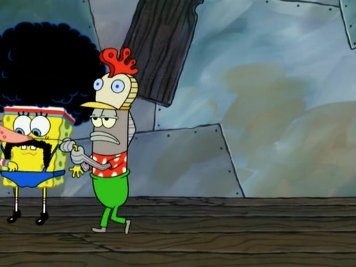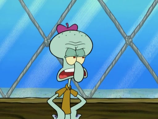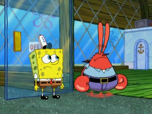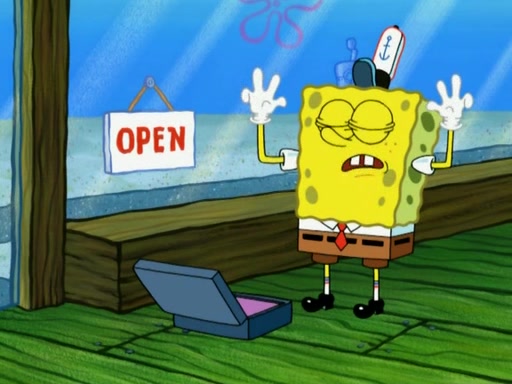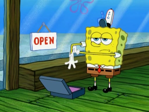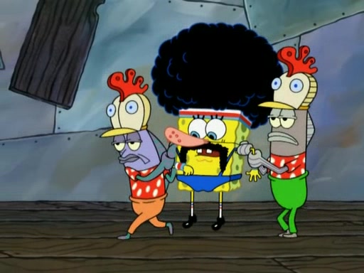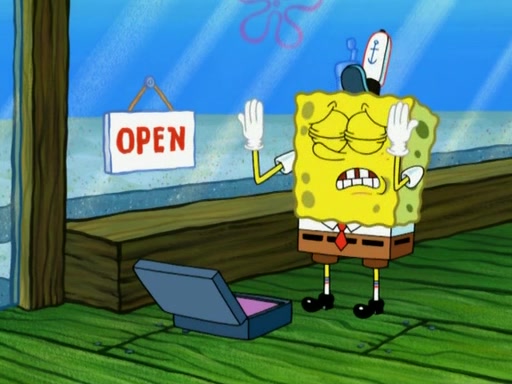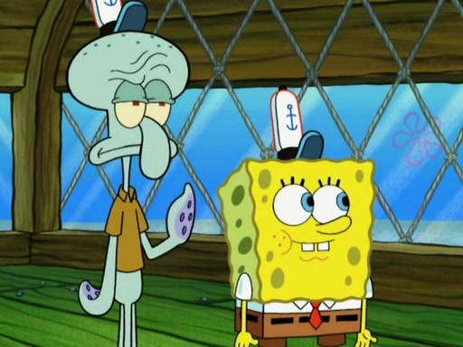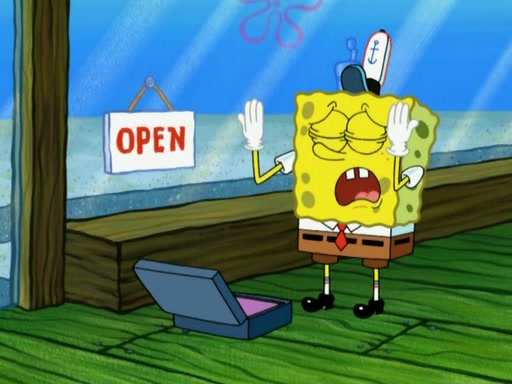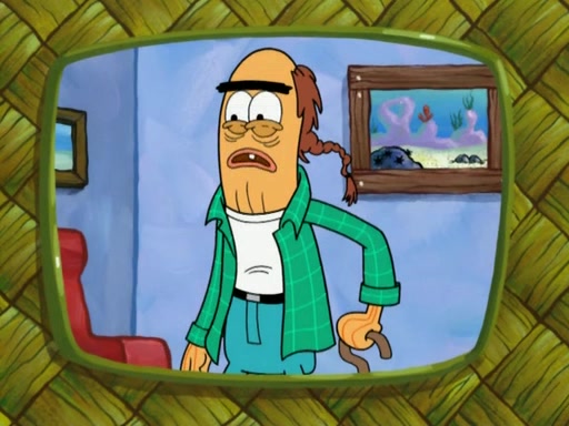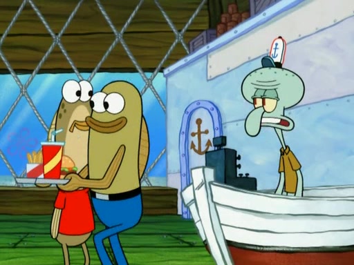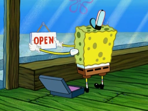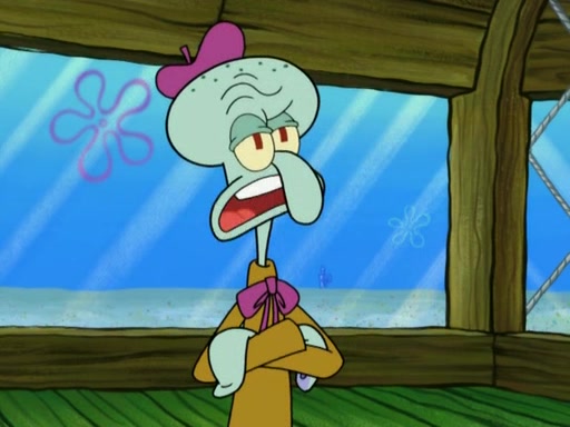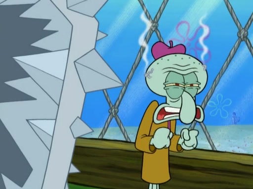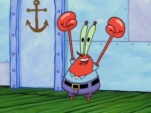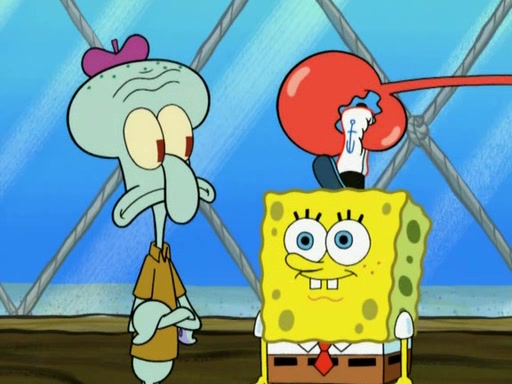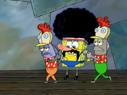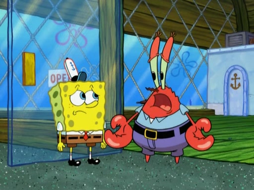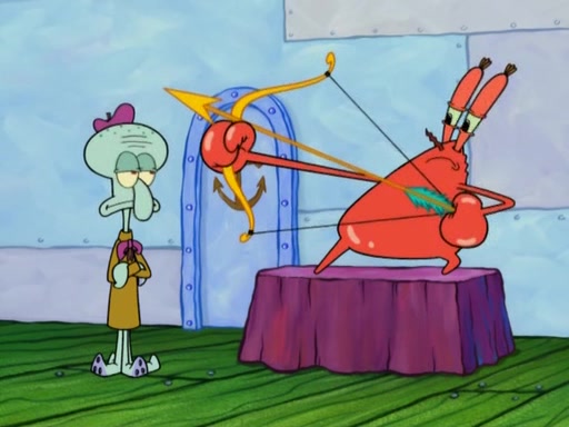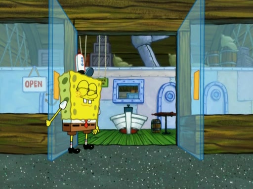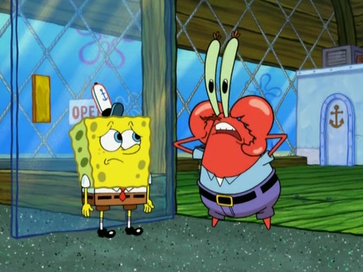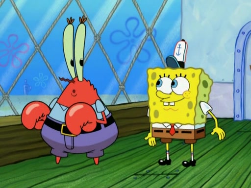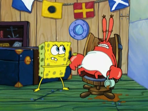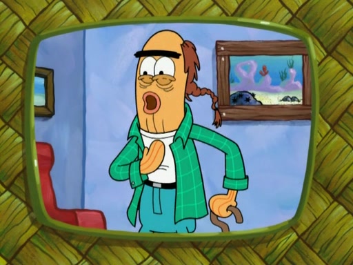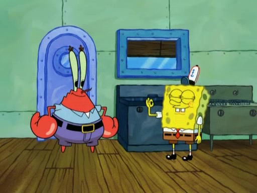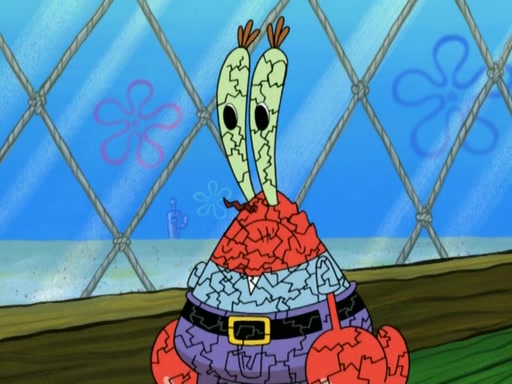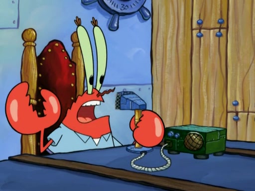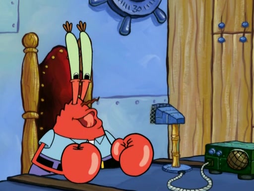 Mr. Krabs is about to open the Krusty Krab, but nobody shows up. A commercial reveals everyone is at the Sea Chicken Shack, and he sends SpongeBob to find out what is making them more popular than them. He arrives at the place in a disguise. He tells Mr. Krabs that the store is a dump and it smells bad. He gets thrown out when he violates their No headbands rule. The large, outdoor Mr. Seachicken statue is why everyone is going there instead of the Krusty Krab. So, Mr. Krabs asks Squidward to make a statue of him. Mr. Krabs makes some various poses and Squidward keeps saying no until Mr. Krabs holds his arms in the air, and Squidward finds the perfect pose.