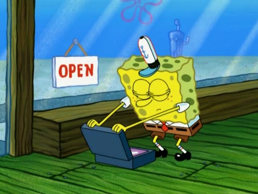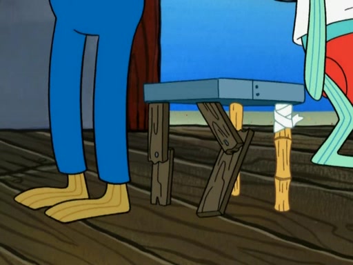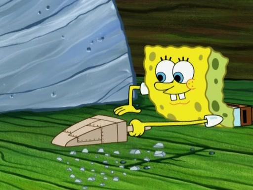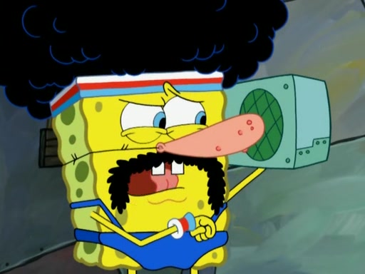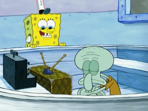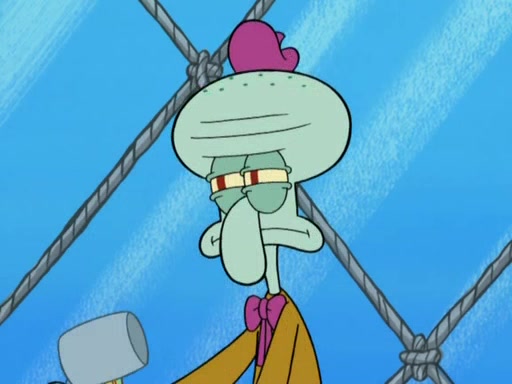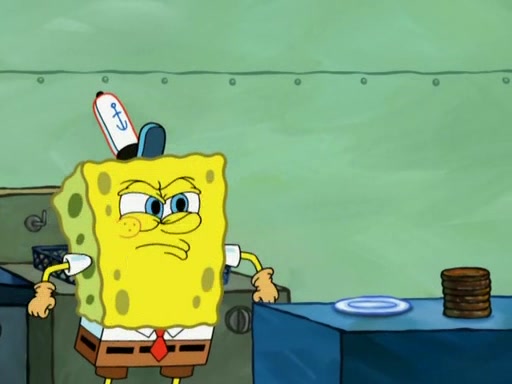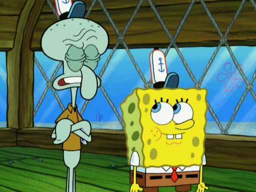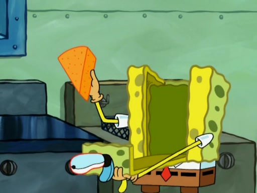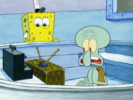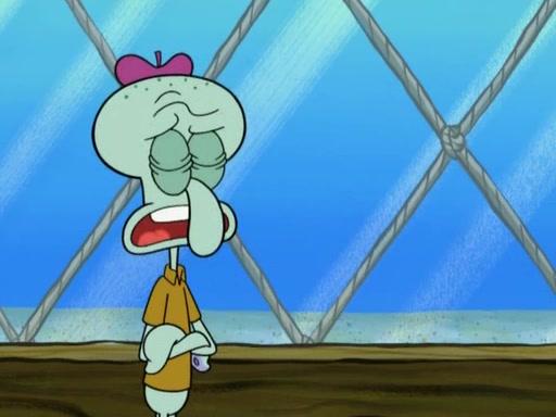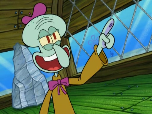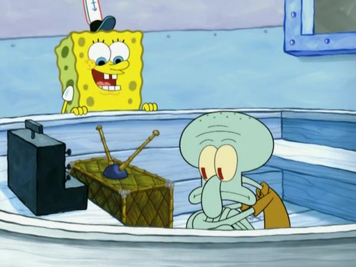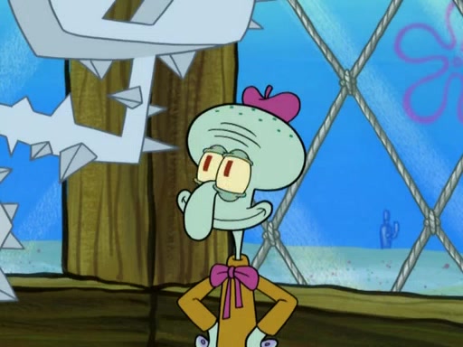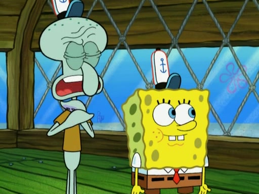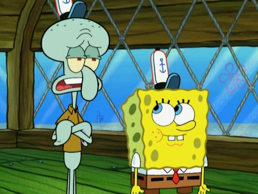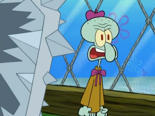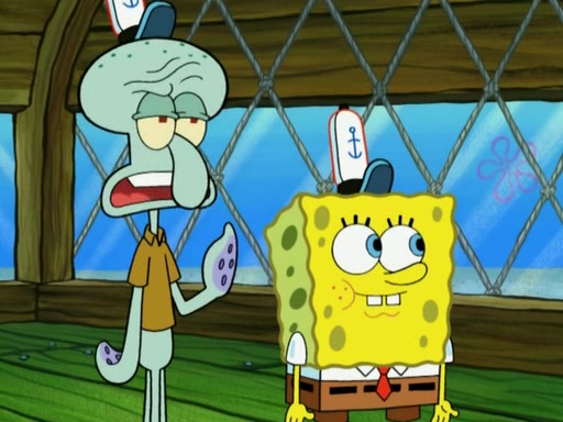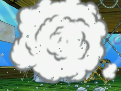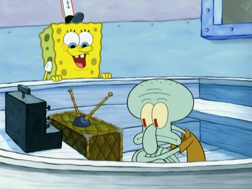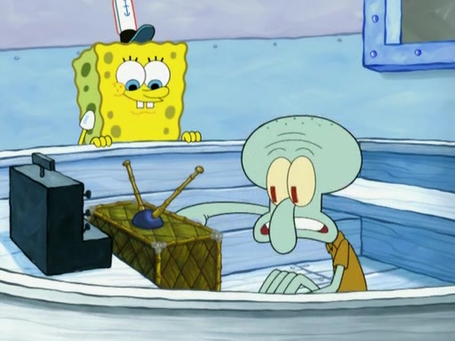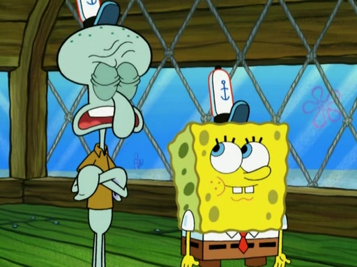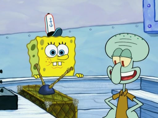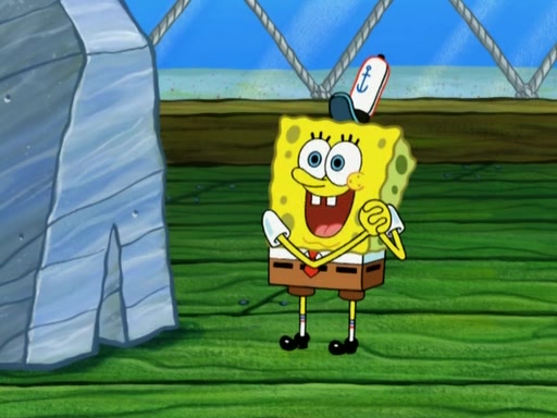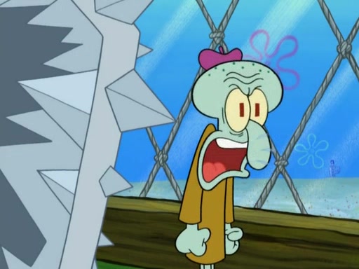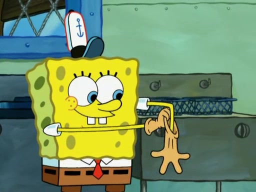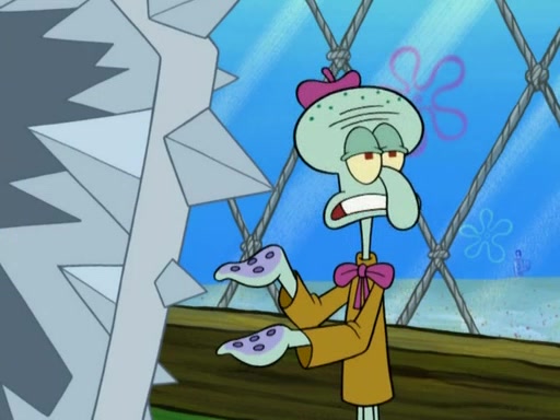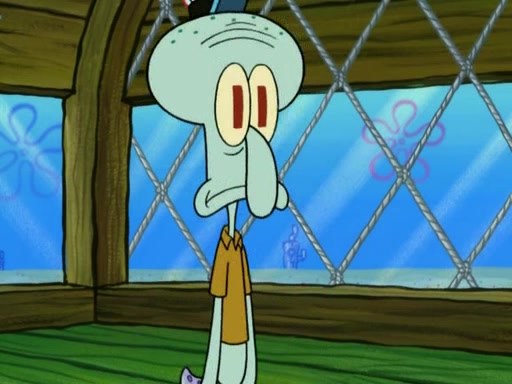 It takes Squidward almost twenty-four hours to finish making the statue. He has Mr. Krabs stand in one position with his hands up in the air for all that time, but Mr. Krabs isn't pleased when the statue is finished. The final result expresses what Squidward may actually feel about Mr. Krabs, because it has spikes and a second mouth near the stomach area. Spongebob plays on it after Mr. Krabs tells him to make sure it's safe, but it falls on him: The statue isn't safe as a playground object, and it may even result in a lawsuit. Spongebob decides to paint Mr. Krabs gold so the children can play on him instead of the statue.