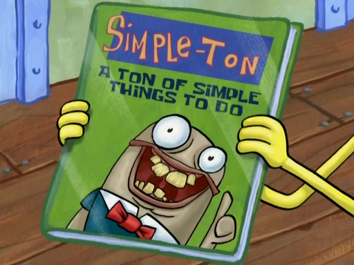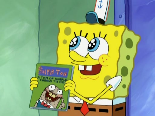 It starts out at the Krusty Krab where SpongeBob and Patrick are making their favorite noises, while simultaneously annoying Squidward. SpongeBob's is the dolphin laughing and Patrick's is the song of great blue whale. Squidward, who is extremely annoyed at this point, asks them what was happening. They explain that they are doing stuff together out of a book called Simple-ton. They then take a quiz to find out how much they know about each other. SpongeBob does fantastic. However, Patrick does terrible. (Just because he is stupid) Squidward then looks at the book and laughs that Patrick guessed that the shape of SpongeBob was a triangle. Patrick buys two ice cream cones (but only gets Patrick's favorite flavor which is dill pickle swirl with mustard and extra bacon pits) and asks SpongeBob for money. SpongeBob becomes upset, and he tells Patrick that he doesn't know him anymore after tearfully throwing the money on the ground. He then runs off to his house crying. SpongeBob cries so much that he fills up Gary's food bowl. Eventually, SpongeBob goes to Sandy for help and she says that they don't have to know everything about each other and they probably just need some time apart. SpongeBob then tries to avoid Patrick, but he sees him go to the gym and many other places with Larry. Patrick is shown with a gift when SpongeBob angrily confronts the two, followed with Larry uncomfortably backing away from them. Patrick then explains that Larry is not his best friend, Larry helped Patrick find a gift for SpongeBob and that he got the gift for SpongeBob, which was a pair of glasses with a fake nose and mustache. SpongeBob and Patrick become friends again until Patrick gets scared by SpongeBob in the glasses and runs away, with SpongeBob quitely sighing "Why me?".