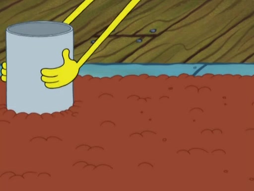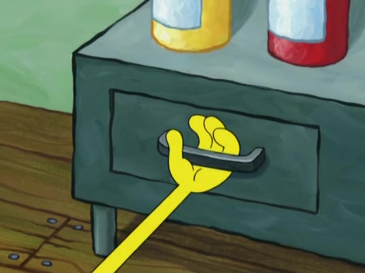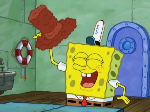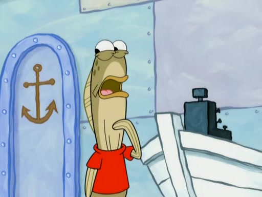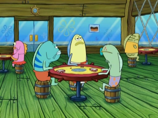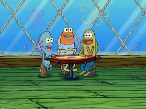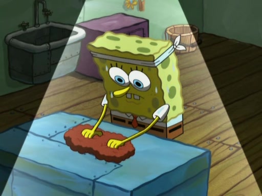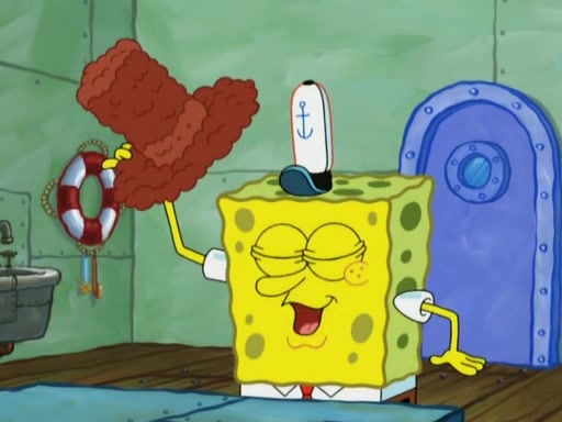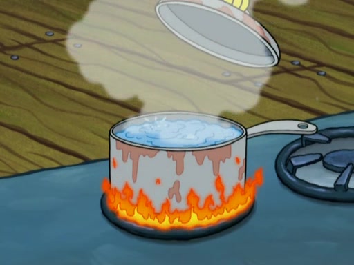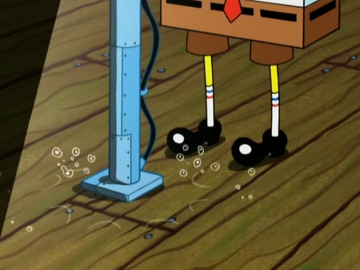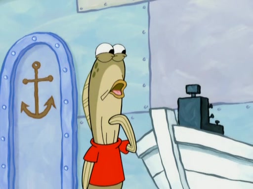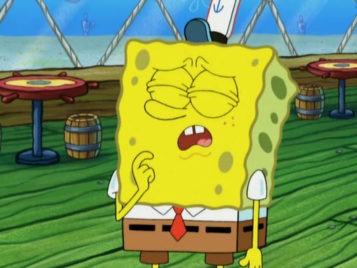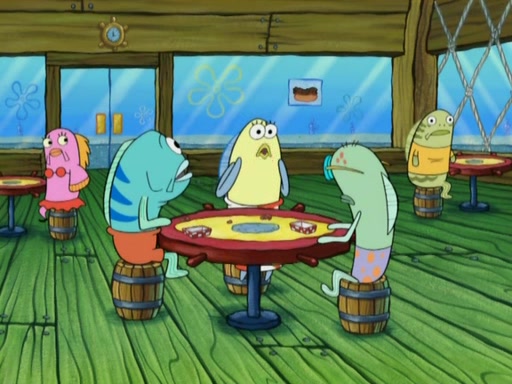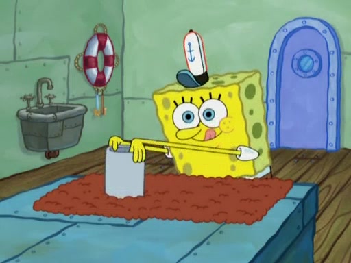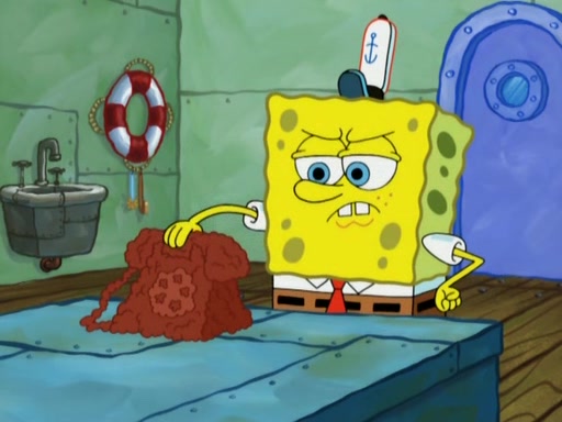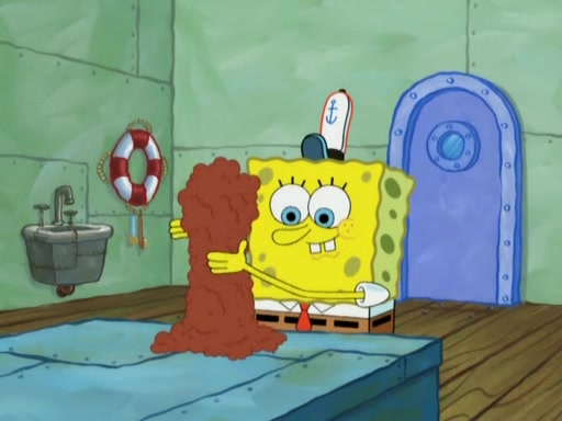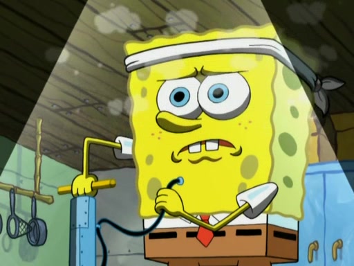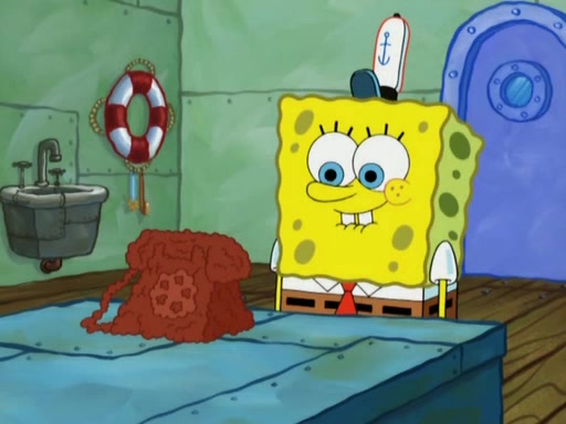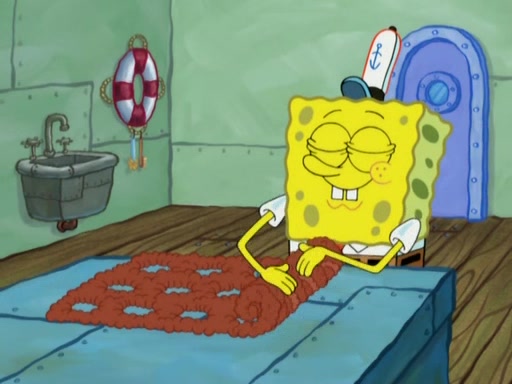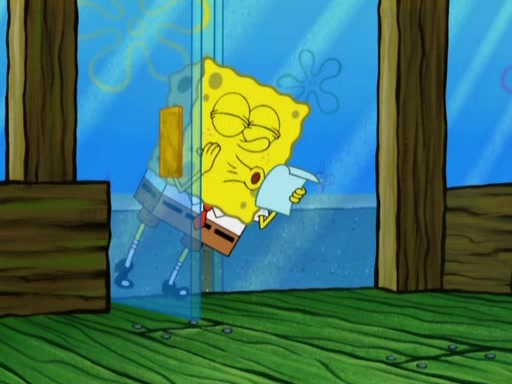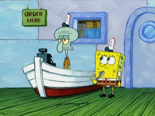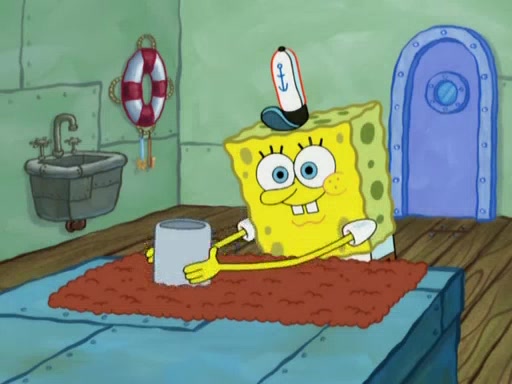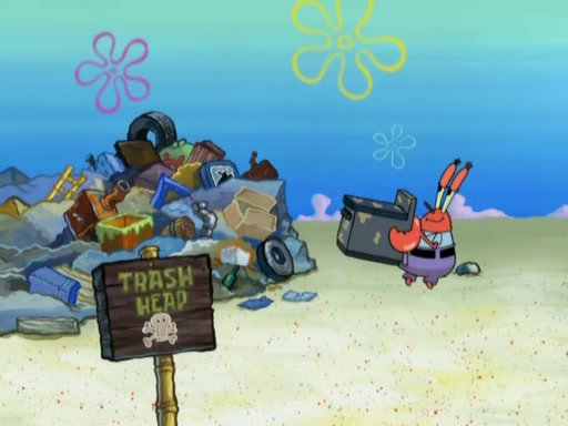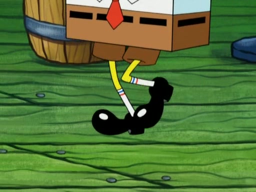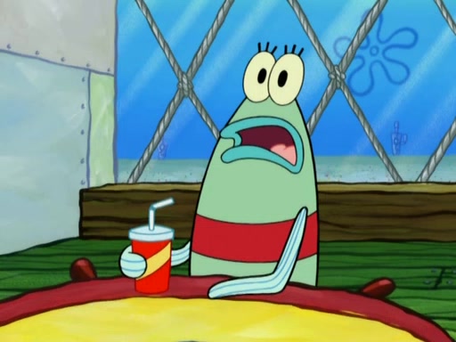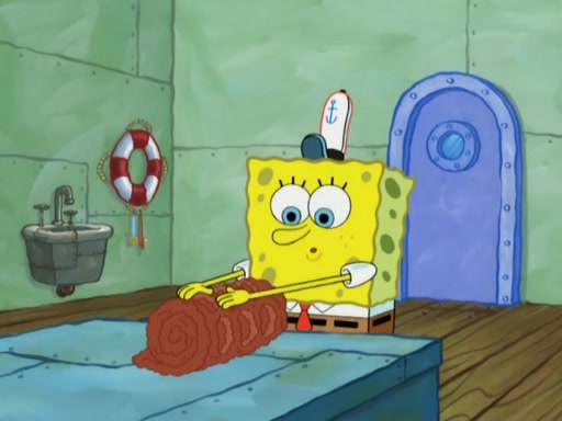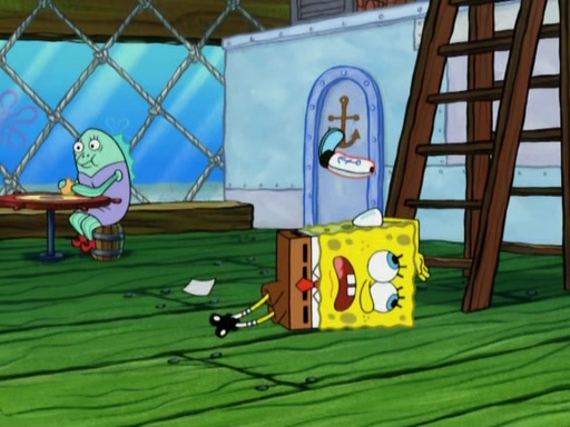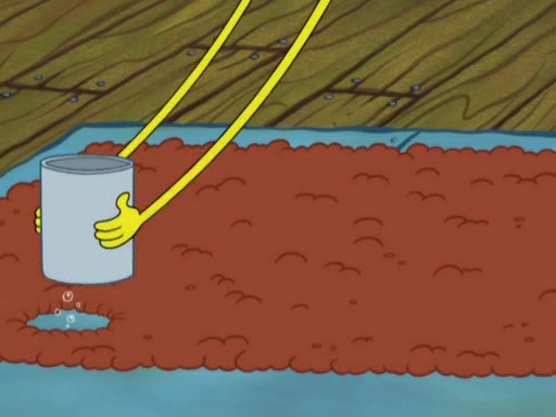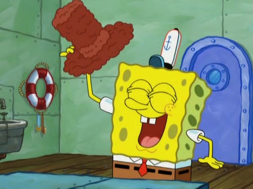 At the Krusty Krab, SpongeBob's preparing a large batch of Krabby Patties and humorously shaping its byproduct with the last of the Krabby Patty pieces. After his last joke in which he seems to be talking to Gary, he made a figure resembling a hot dog. He cooked it in a pot and the Krusty dog was given to Mr. Krabs. SpongeBob suggests adding the Krusty dog to the menu only if he uses the leftover meat which possibly means Mr. Krabs doesn't want to buy extra meat to make Krusty dogs.