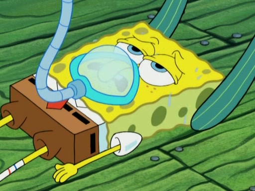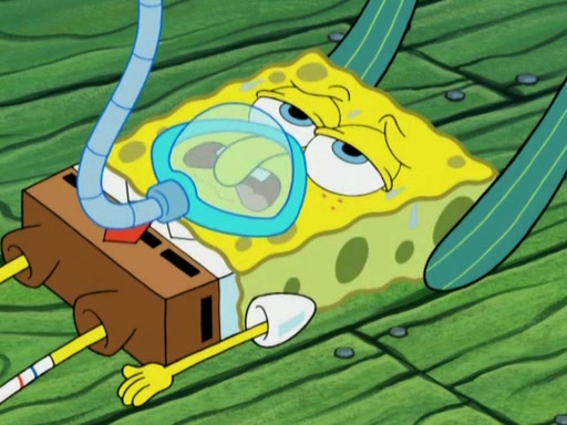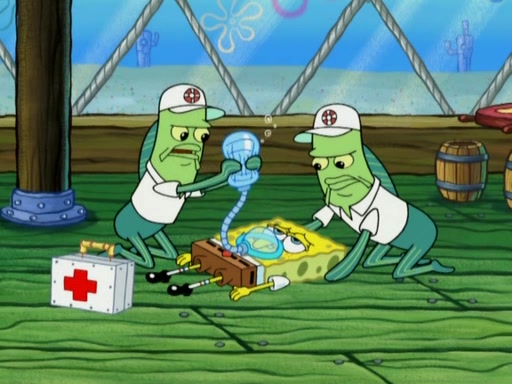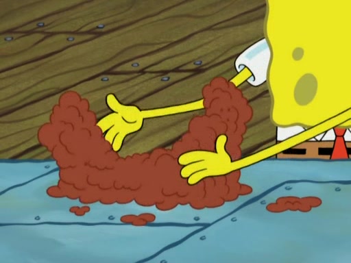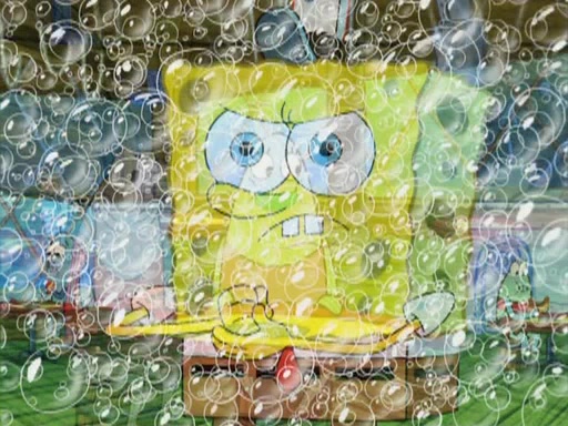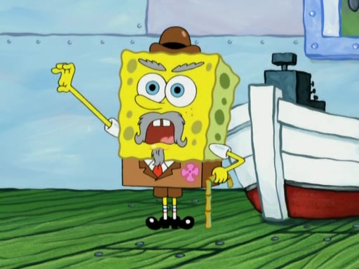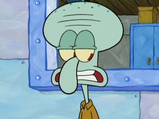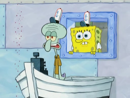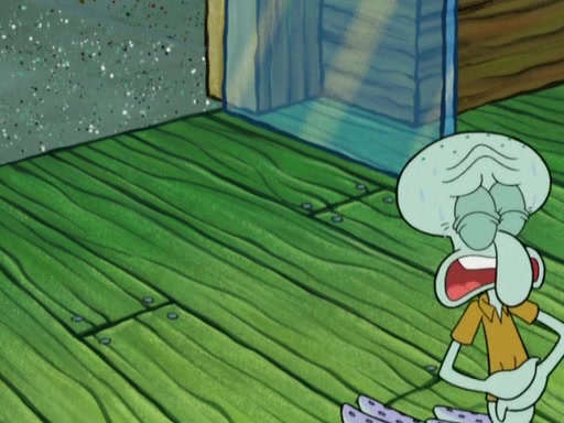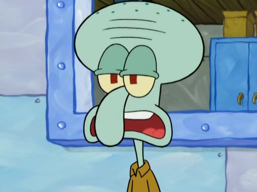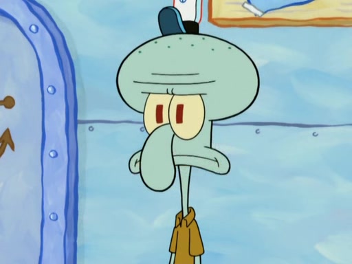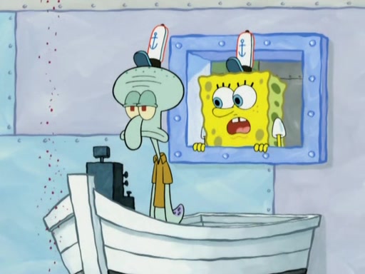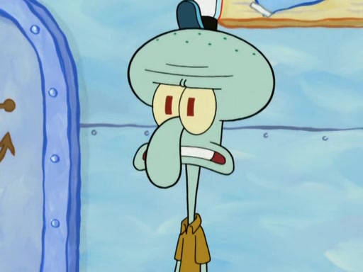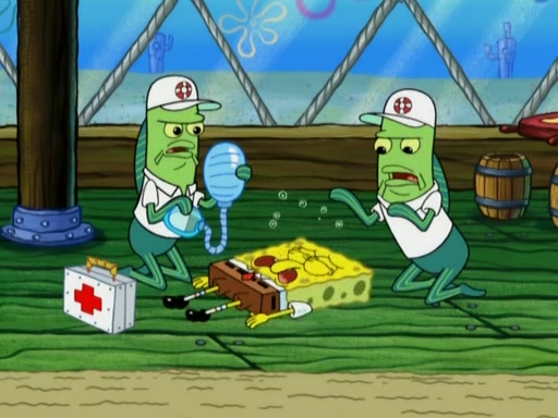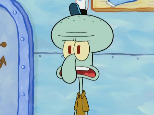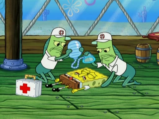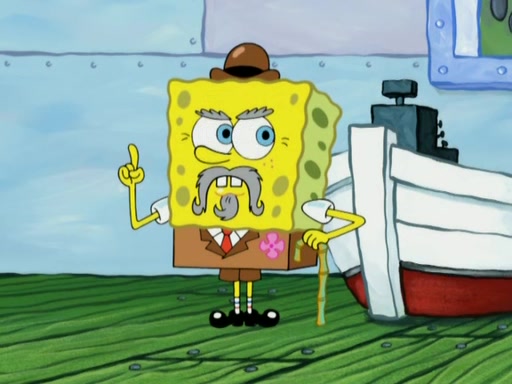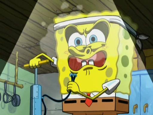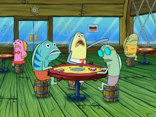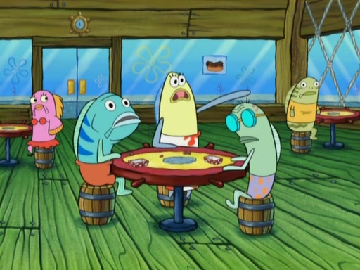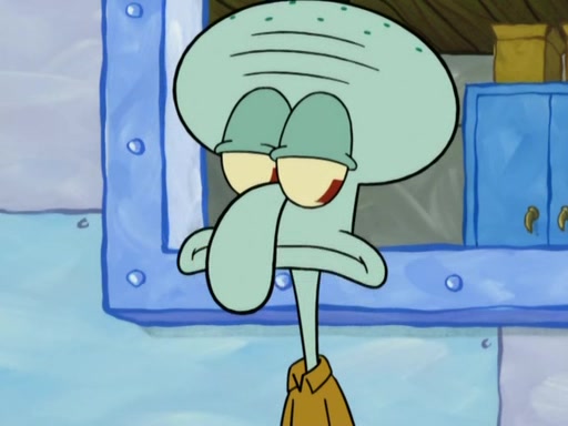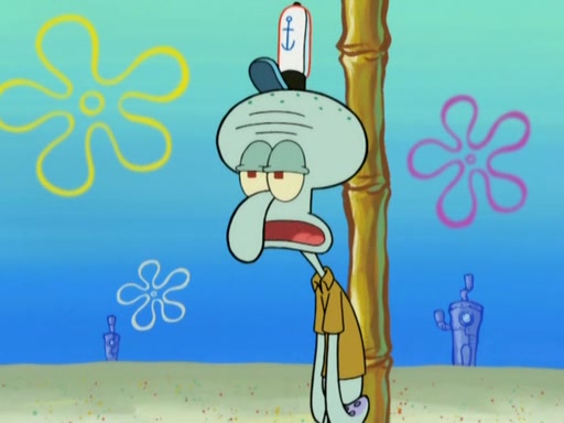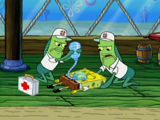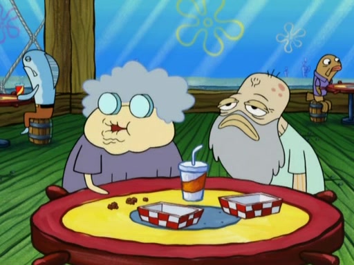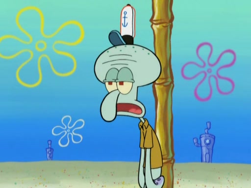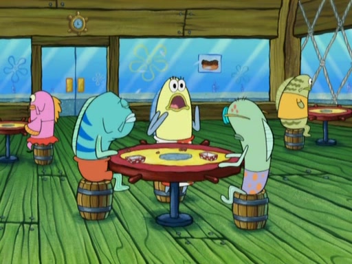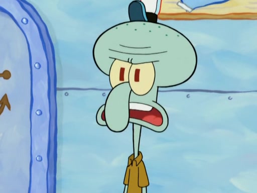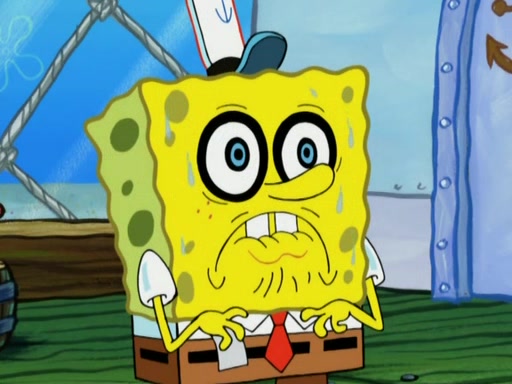 In a plan to put patties back, SpongeBob pasted out rumors and lies about what some of the real ingredients are. After little success and help from Squidward, he made people think that a Krusty Dog will explode which annoyed them by exploding a Krusty Dog with a pump in one customers face. When Krabby Patties regained popularity, Squidward is dressed in a costume again only to be kicked by Sadie, thinking that the patties are only as bad as the Krusty dogs.