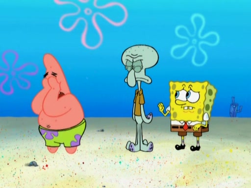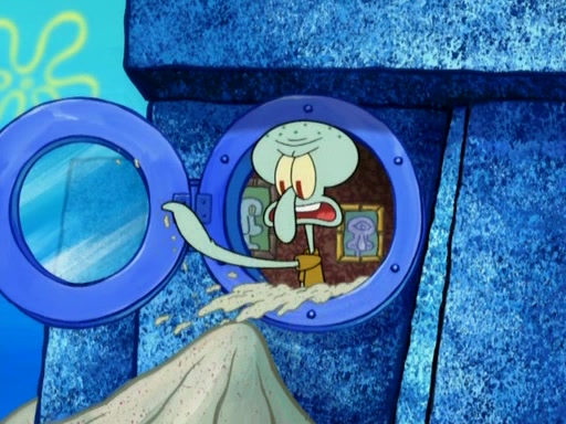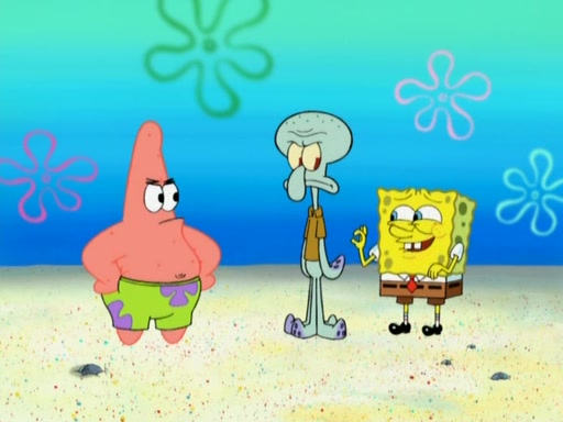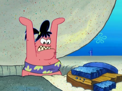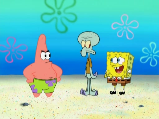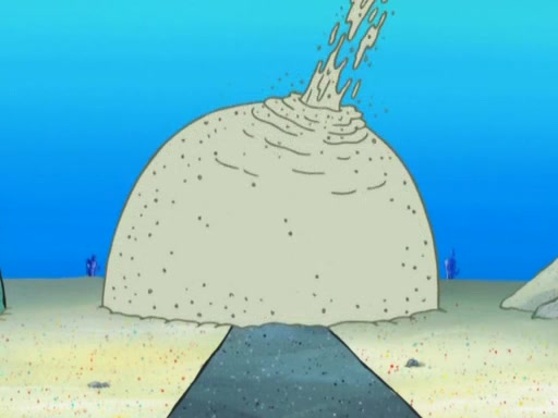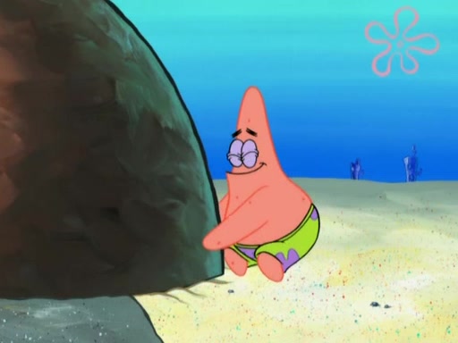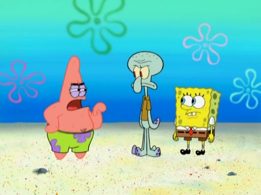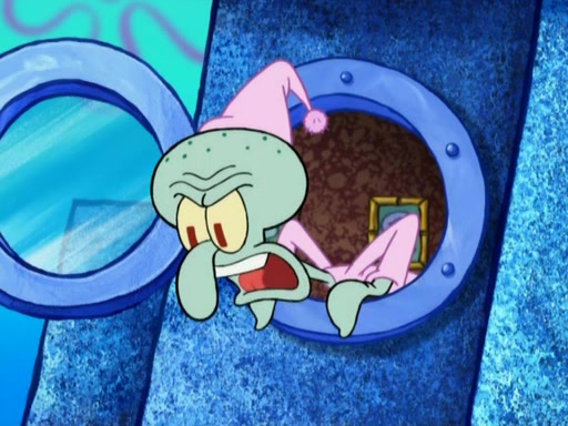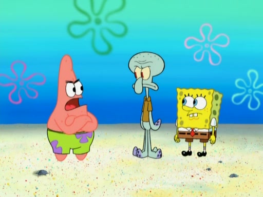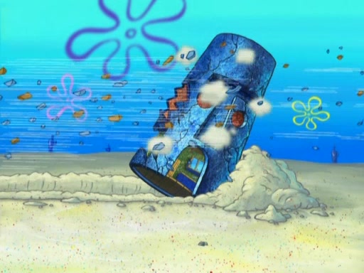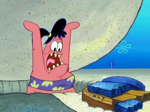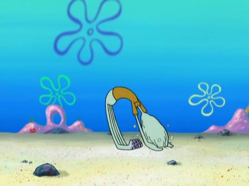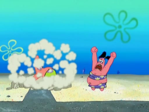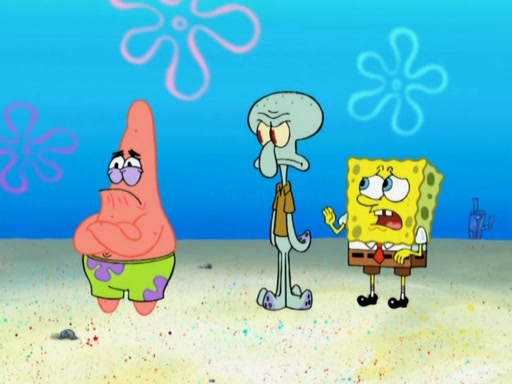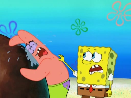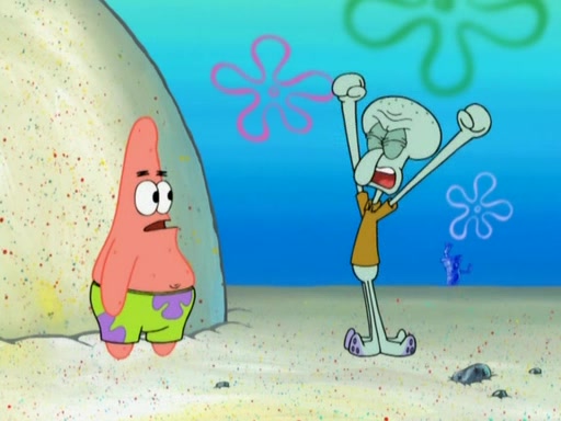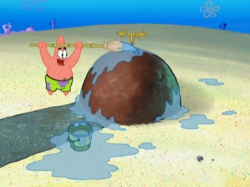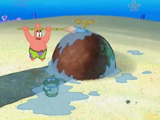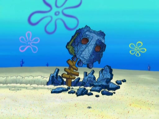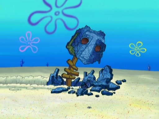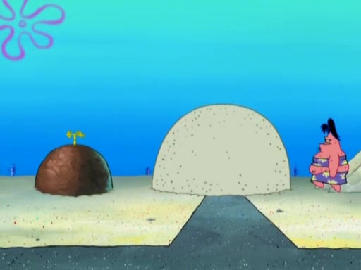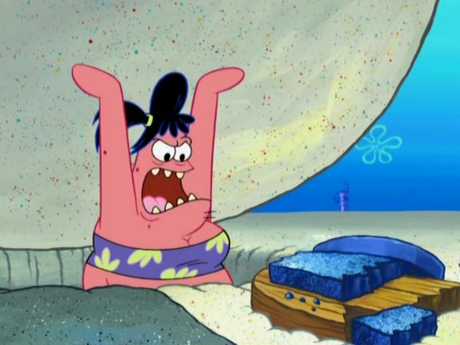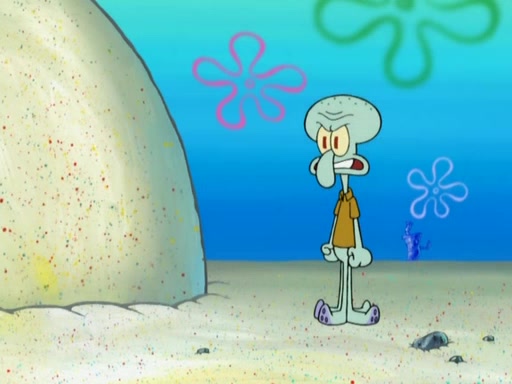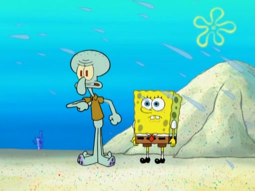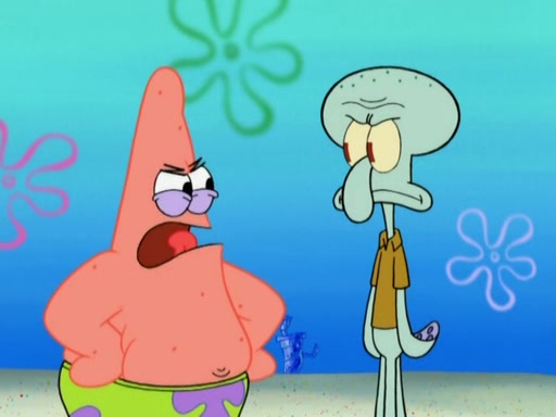 After that, Patrick becomes overprotective of Sam by saying that SpongeBob and Squidward are "meanies" and saying that they should blecorate (decorate) the rock. However, she uses parts of Squidward's house to decorate it. Then Squidward gets angry and calls her a thief. Then SpongeBob tries to talk some sense into Patrick, but Patrick does not care that Sam deliberately dismantled Squidward's house. Then he starts crying, thinking SpongeBob has become a traitor, and gets head-butted by Sam. Squidward gets angry and attempts to throw a rock at the house. In response, Sam and Patrick come out of the house and Sam chews up the loose parts and spits them at Squidward's house, destroying it.