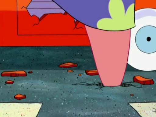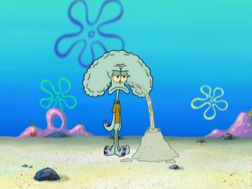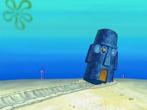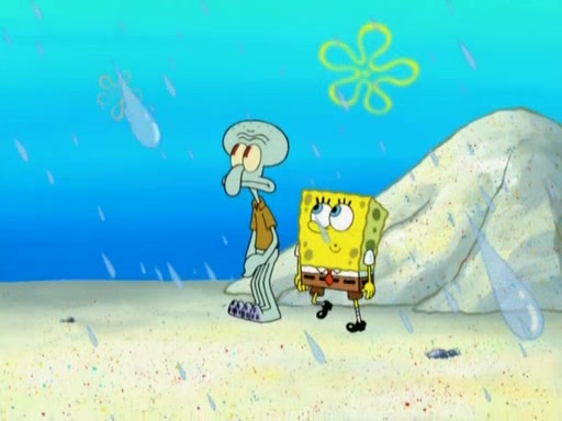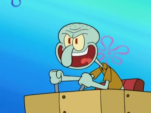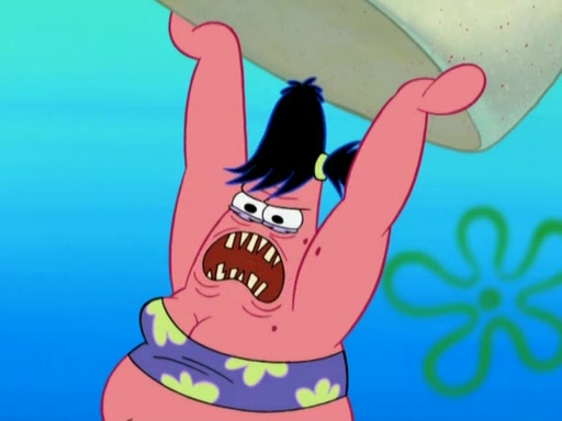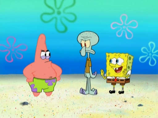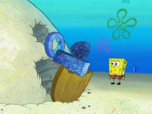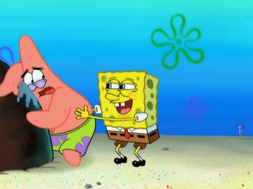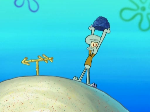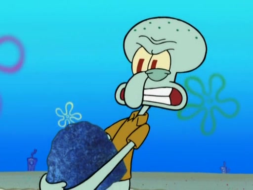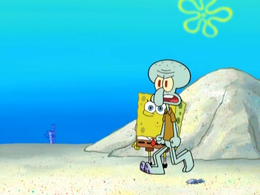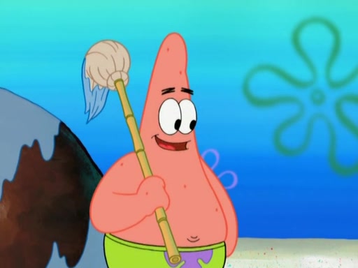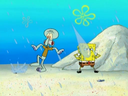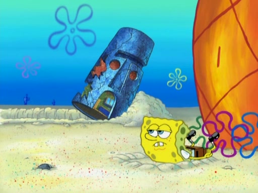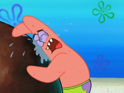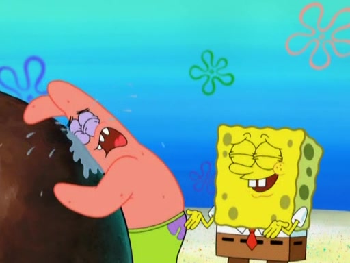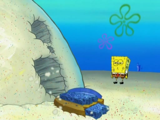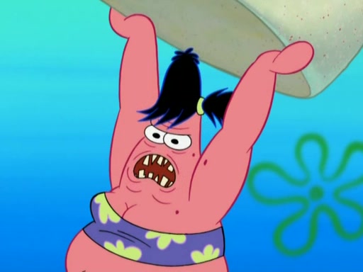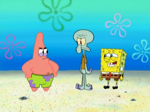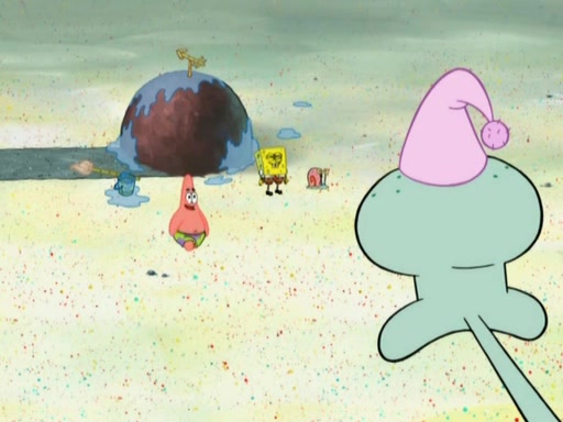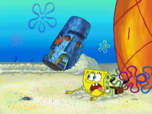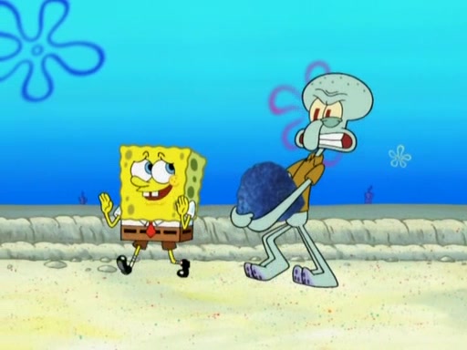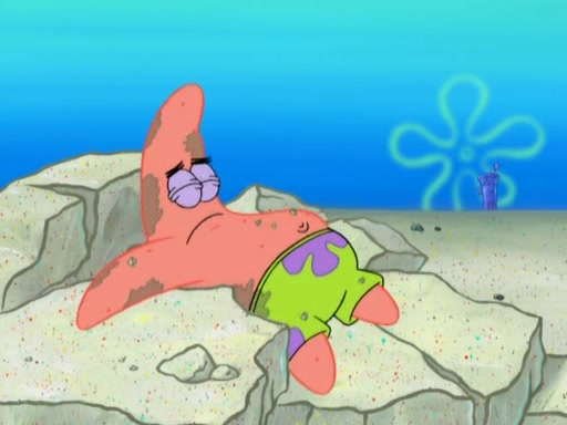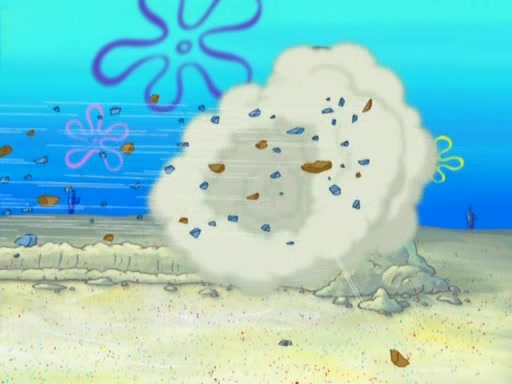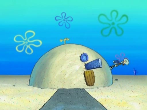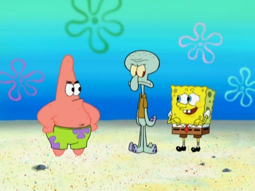 After that, Patrick becomes overprotective of Sam by saying that SpongeBob and Squidward are "meanies" and saying that they should blecorate (decorate) the rock. However, she uses parts of Squidward's house to decorate it. Then Squidward gets angry and calls her a thief. Then SpongeBob tries to talk some sense into Patrick, but Patrick does not care that Sam deliberately dismantled Squidward's house. Then he starts crying, thinking SpongeBob has become a traitor, and gets head-butted by Sam. Squidward gets angry and attempts to throw a rock at the house. In response, Sam and Patrick come out of the house and Sam chews up the loose parts and spits them at Squidward's house, destroying it.
