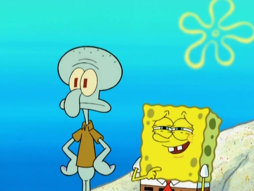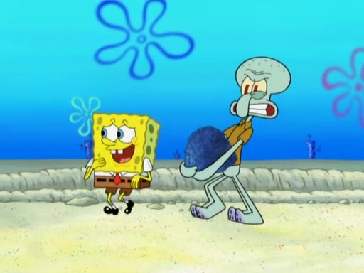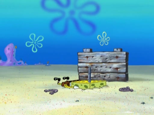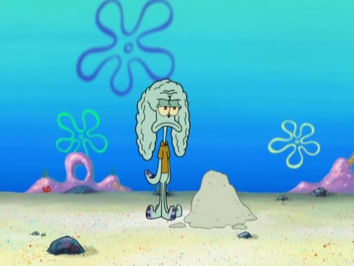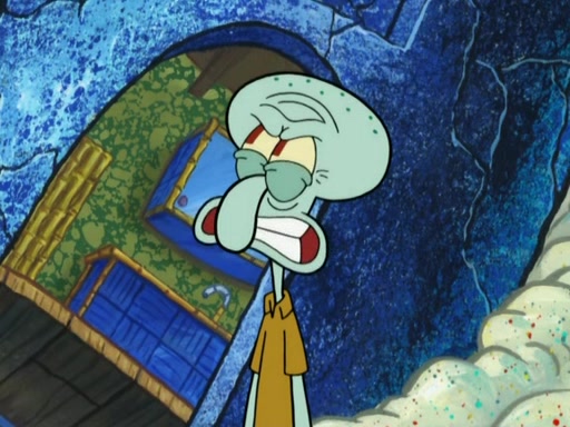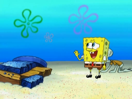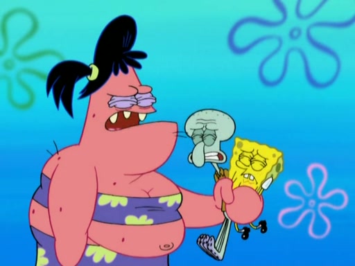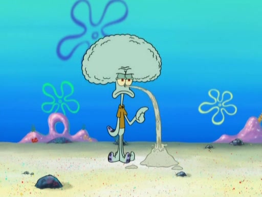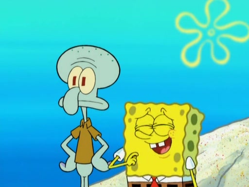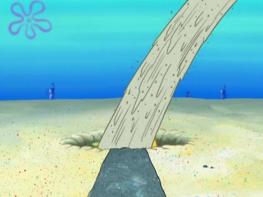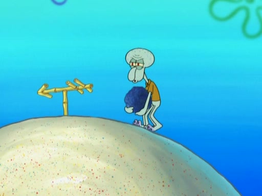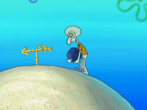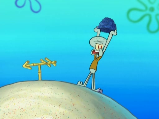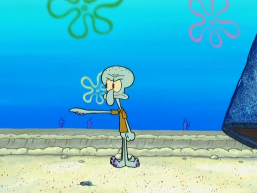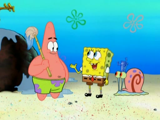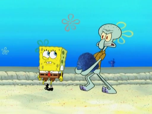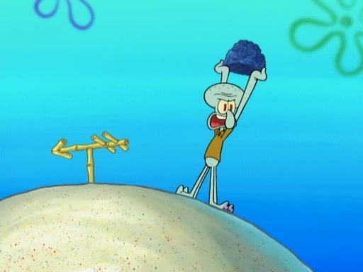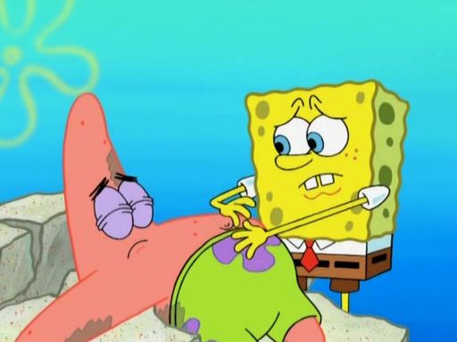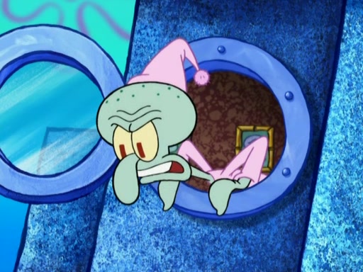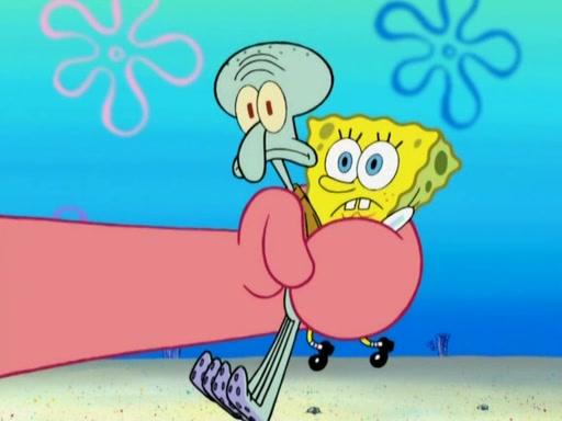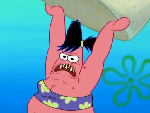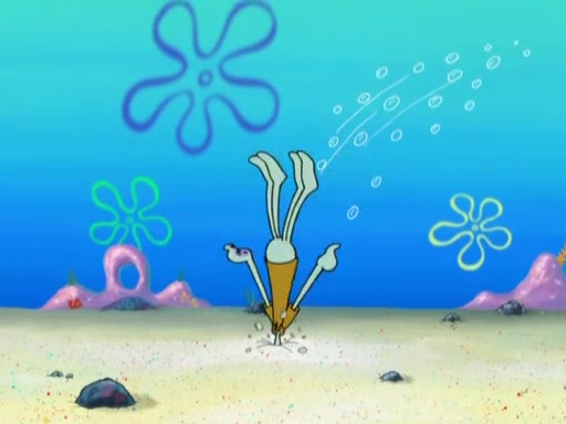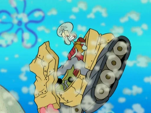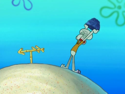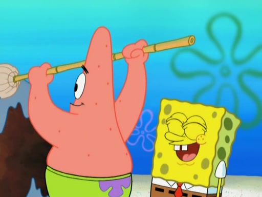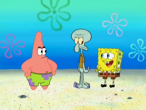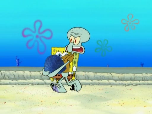 After that, Patrick becomes overprotective of Sam by saying that SpongeBob and Squidward are "meanies" and saying that they should blecorate (decorate) the rock. However, she uses parts of Squidward's house to decorate it. Then Squidward gets angry and calls her a thief. Then SpongeBob tries to talk some sense into Patrick, but Patrick does not care that Sam deliberately dismantled Squidward's house. Then he starts crying, thinking SpongeBob has become a traitor, and gets head-butted by Sam. Squidward gets angry and attempts to throw a rock at the house. In response, Sam and Patrick come out of the house and Sam chews up the loose parts and spits them at Squidward's house, destroying it.