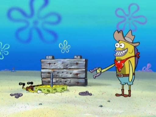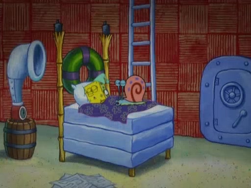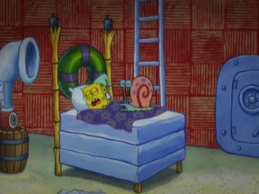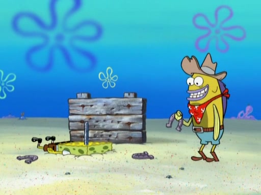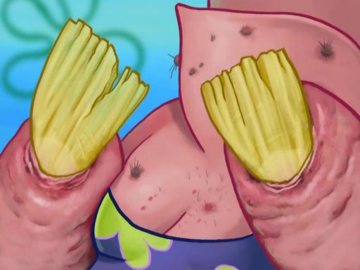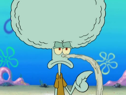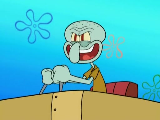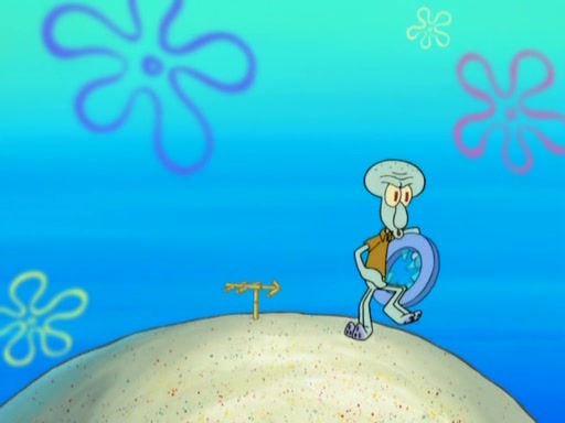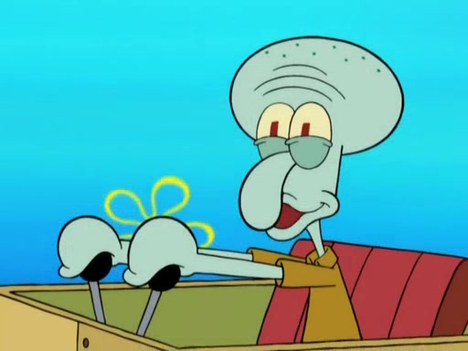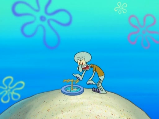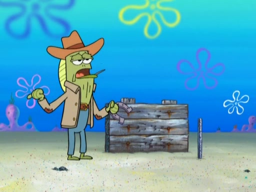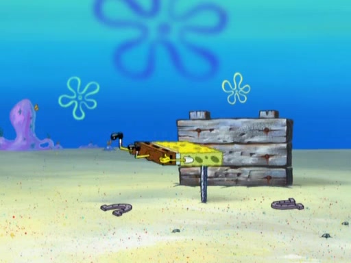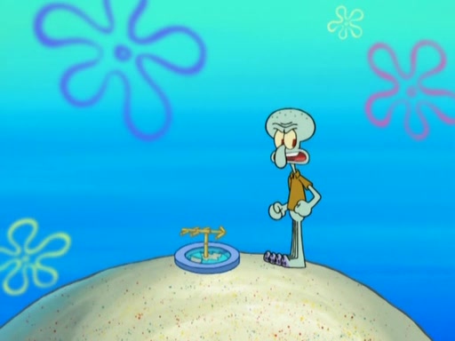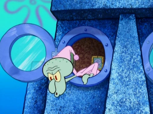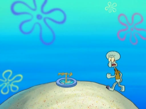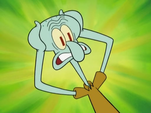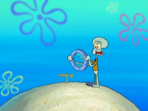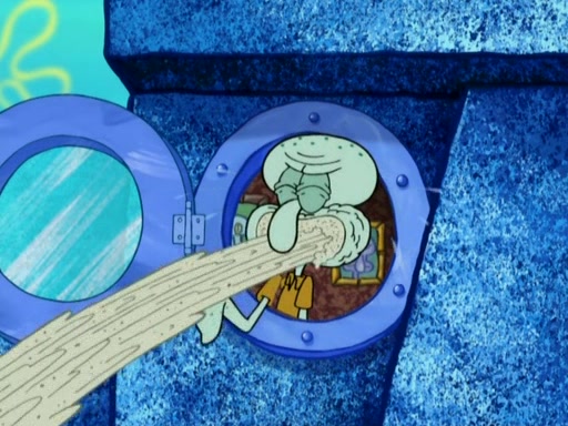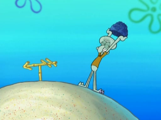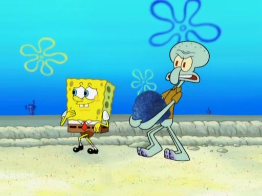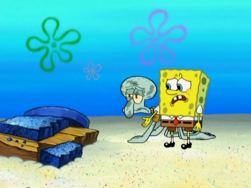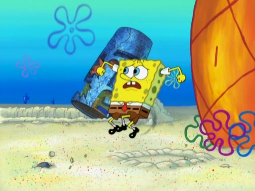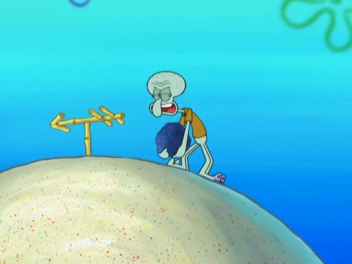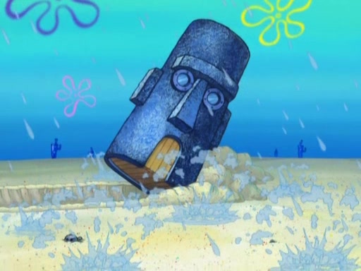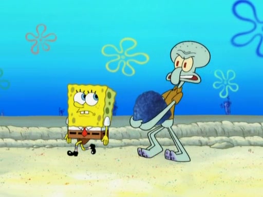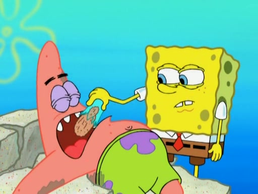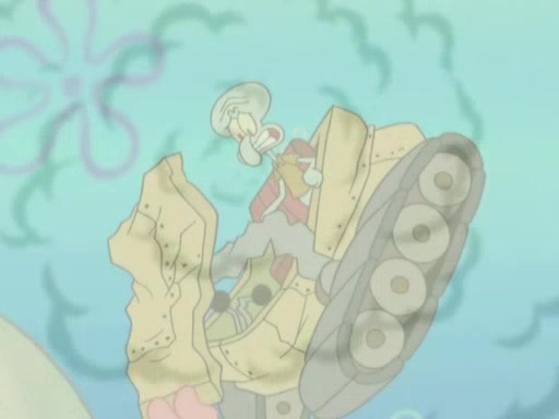 After that, Patrick becomes overprotective of Sam by saying that SpongeBob and Squidward are "meanies" and saying that they should blecorate (decorate) the rock. However, she uses parts of Squidward's house to decorate it. Then Squidward gets angry and calls her a thief. Then SpongeBob tries to talk some sense into Patrick, but Patrick does not care that Sam deliberately dismantled Squidward's house. Then he starts crying, thinking SpongeBob has become a traitor, and gets head-butted by Sam. Squidward gets angry and attempts to throw a rock at the house. In response, Sam and Patrick come out of the house and Sam chews up the loose parts and spits them at Squidward's house, destroying it.
