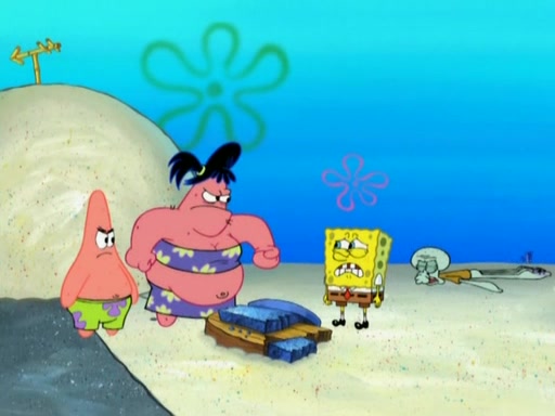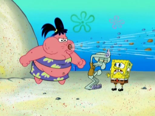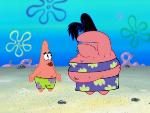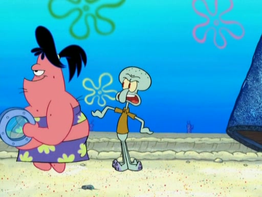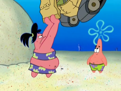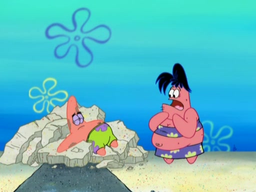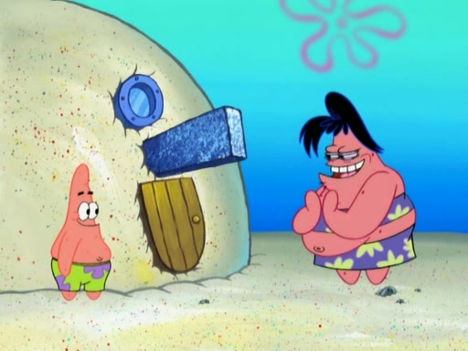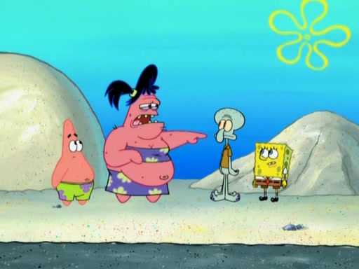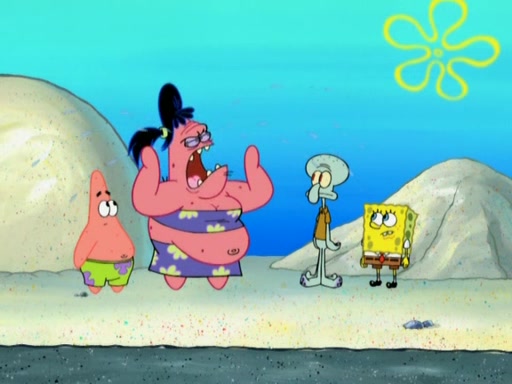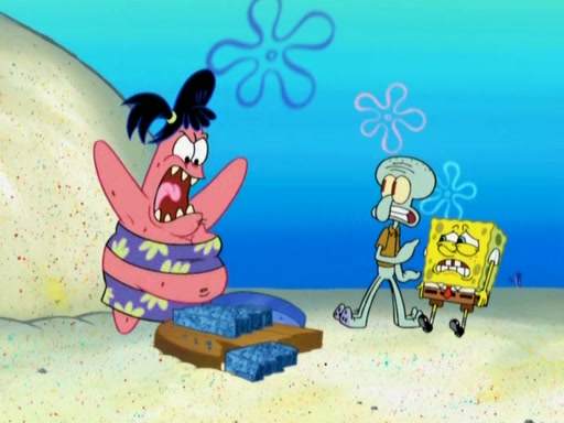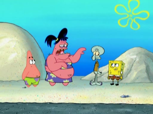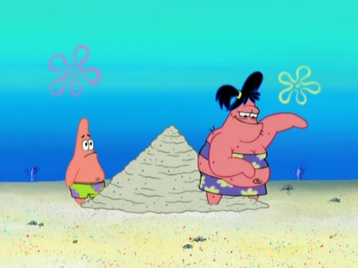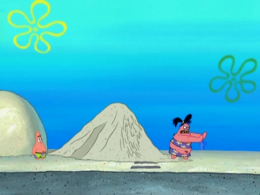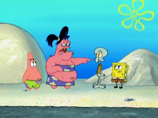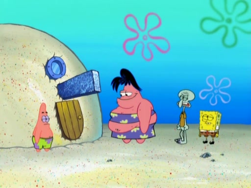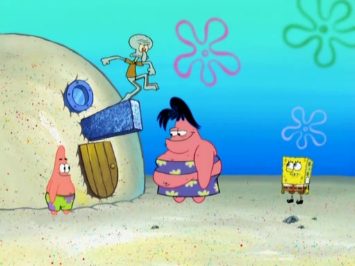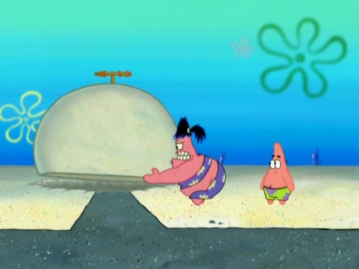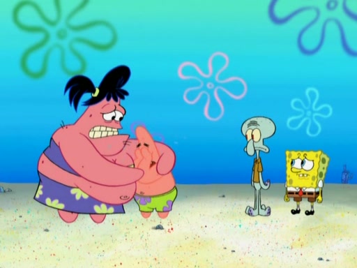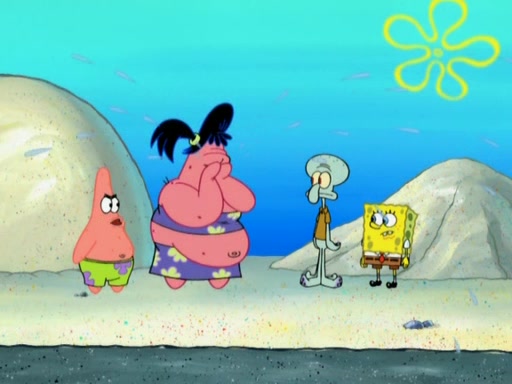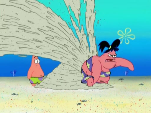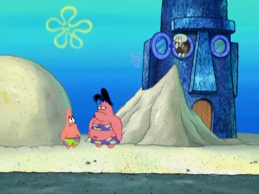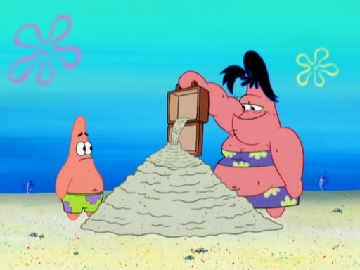 The episode opens with SpongeBob and Gary sleeping. Patrick is cleaning his rock with a mop then wakes them up. SpongeBob asks him why he is doing it and he responds by saying his sister Sam Star, is coming. Patrick also reveals that they were lost in the surf when they were only kids. Squidward screams angrily and demands for peace and quiet, but Sam then arrives in a bus, and punches the door down. She is revealed to be a huge starfish. Sam hugs and almost suffocates Patrick. Patrick introduces SpongeBob to Sam and Sam, mistaking SpongeBob to be a danger, protects Patrick by throwing SpongeBob. Patrick suggests that they go inside to "play," but Sam explains how the house is too small. Sam then takes a briefcase filled with sand and constructs a new house, made of sand. Patrick thanks her. However, Squidward complains that his house is filled with sand. Again, Sam feels overprotective and moves Squidward's house with only her bare hands. Squidward makes jokes about Sam saying, how she is bigger, and dumber than Patrick. Sam responds by getting angry and then starting to cry because she already knows it is all true. Her giant tears throw both Squidward and SpongeBob.