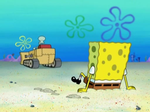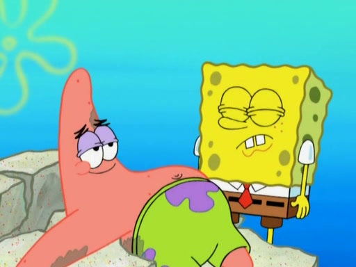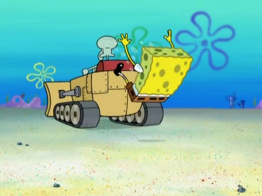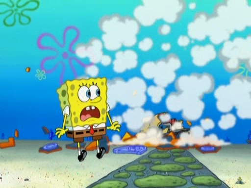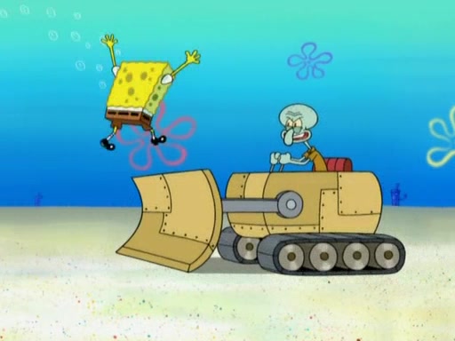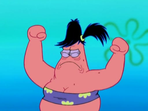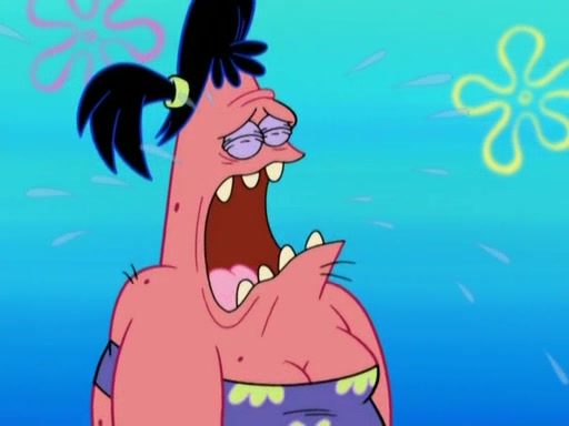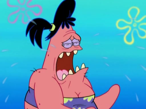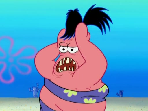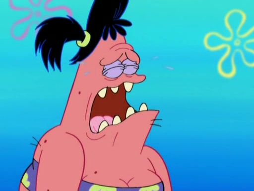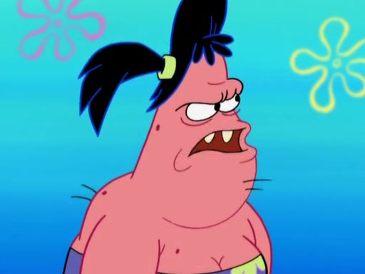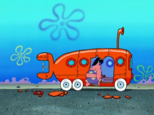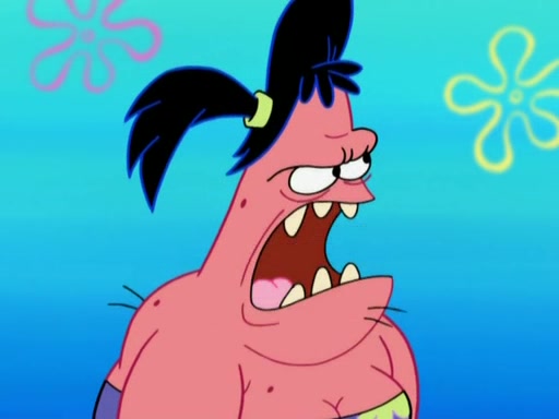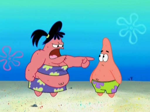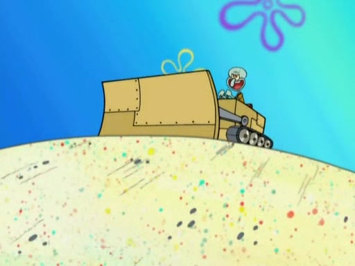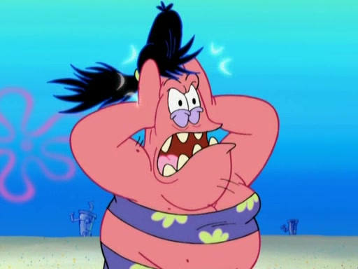 Squidward then drives a bulldozer at Patrick, Sam, and the house, making Patrick and Sam realize that Squidward is literally going to kill them. SpongeBob tries to stop him but to no avail. Sam, who throws the bulldozer at SpongeBob's house, stops Squidward. After that, SpongeBob finally becomes upset at the destruction of his house, making Patrick finally see what SpongeBob means. Patrick tries to tell her to control her temper, but she gets very angry and destroys her own home while Patrick sacrifices himself to save the house. Patrick lays there unconscious but SpongeBob successfully wakes him up by using cookie dough. Sam feels very guilty and explains that she must leave (She is late for a manicure and shows them her nails). As Sam leaves on the bus, SpongeBob and Patrick laugh about their experience with Patrick's sister.