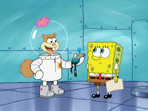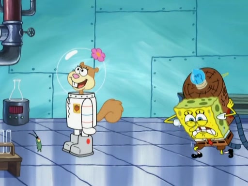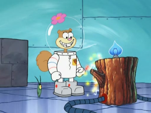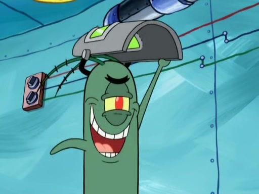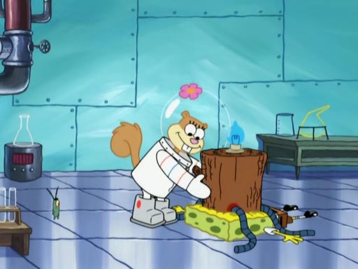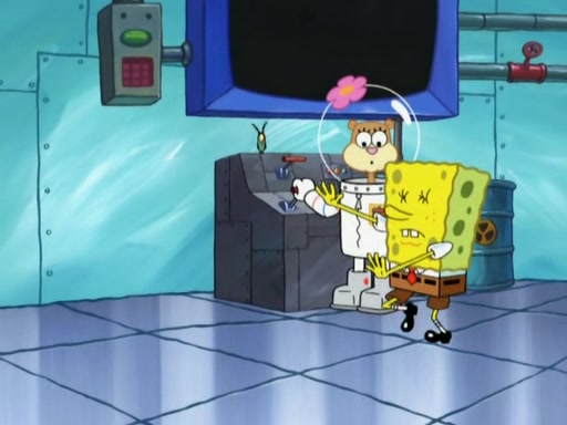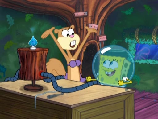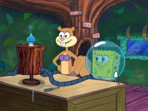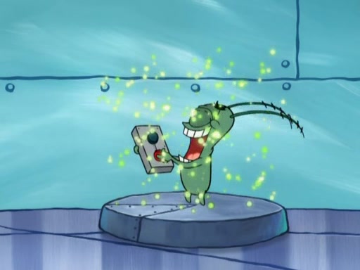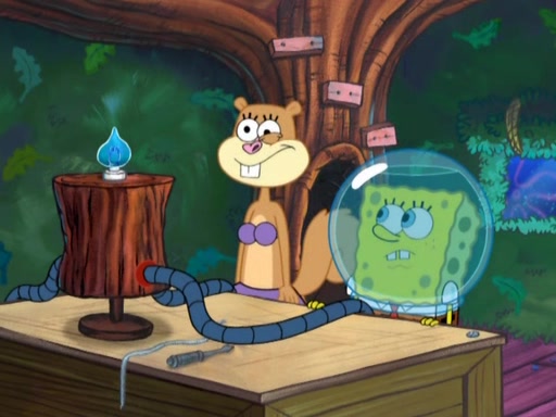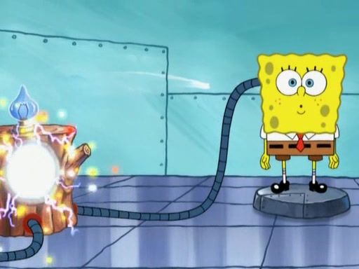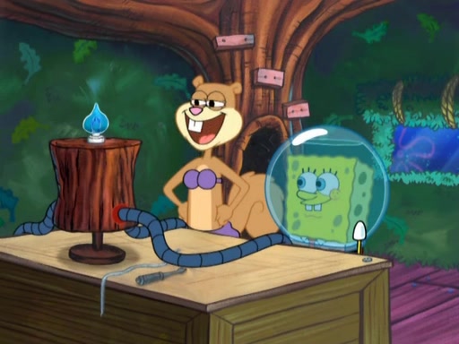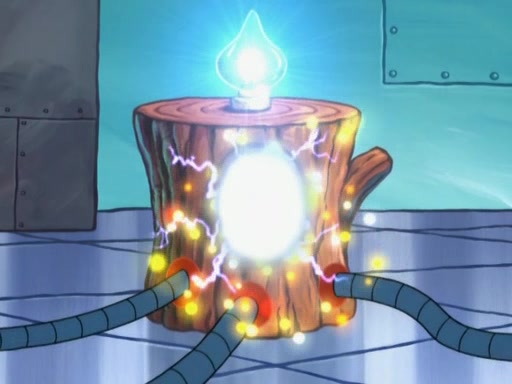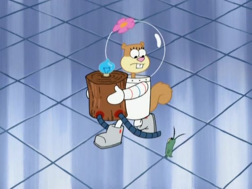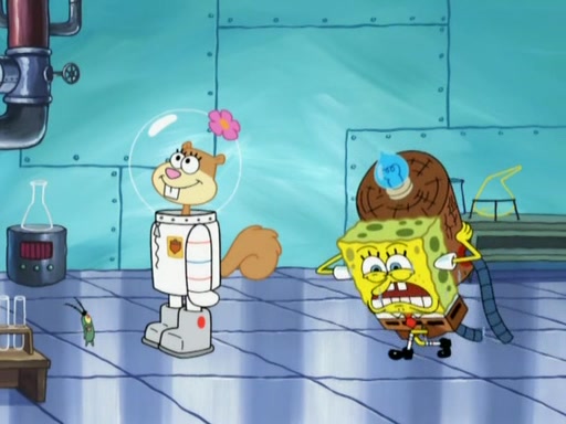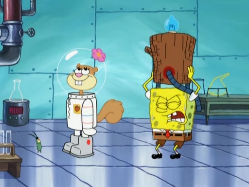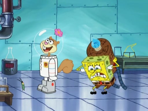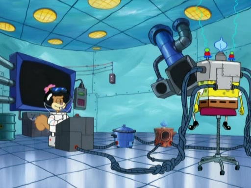 Plankton and Sandy hook cables up to SpongeBob and teleport him to the Krusty Krab. Unfortunately, only his eyes teleport. Squidward is scared and tells Mr. Krabs who thinks that Squidward just has bad gas. Plankton and Sandy teleport SpongeBob back to the Chum Bucket. It goes like that for a while until SpongeBob's entire body gets teleported. Plankton then traps Sandy and SpongeBob in a cage and teleports him to the bottle where the Krabby Patty formula is stored. Then, Sandy teleports the Krabby Patty formula back to her and SpongeBob, leaving Plankton stuck in the bottle. Sandy said she knew Plankton was in it for the formula all along. The episode ends with Sandy bragging that she cannot be fooled and laughing evilly.
