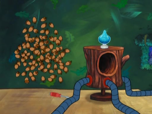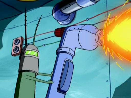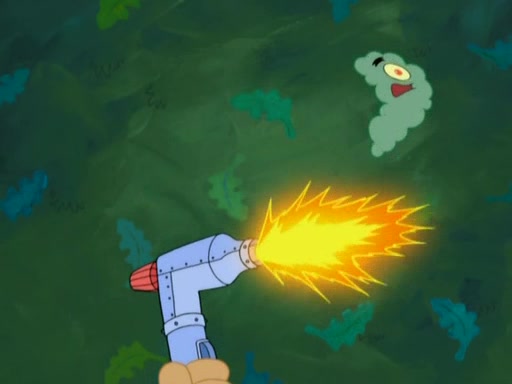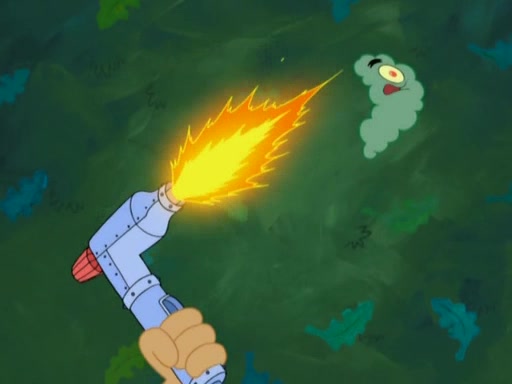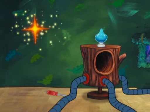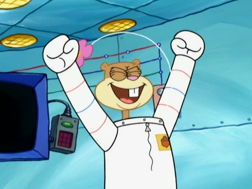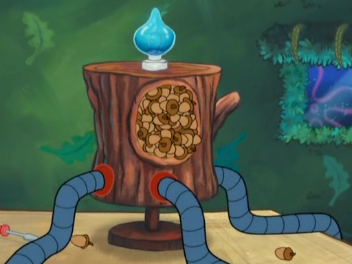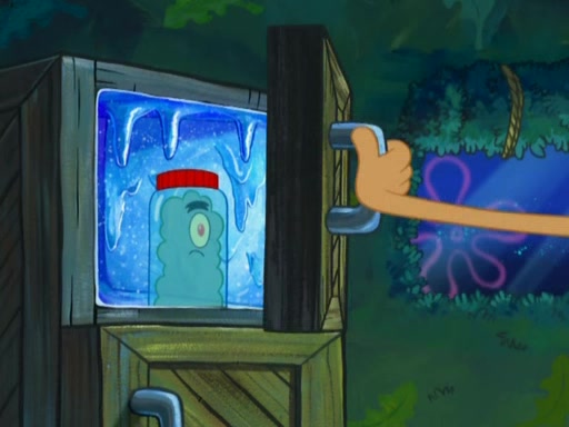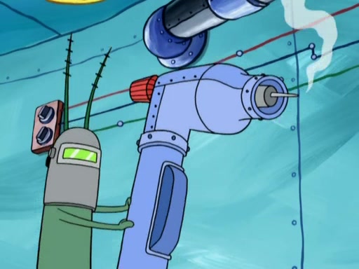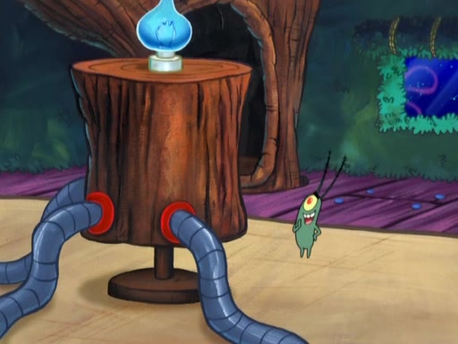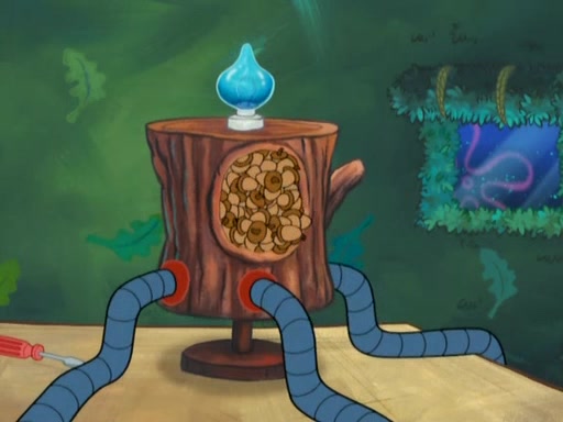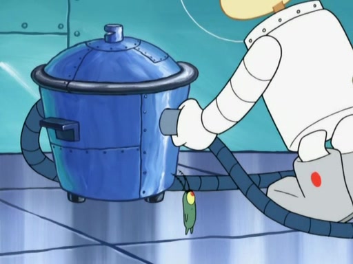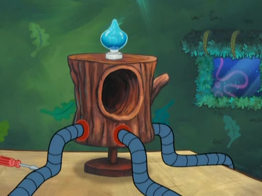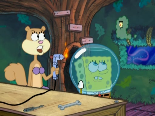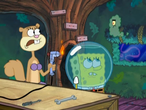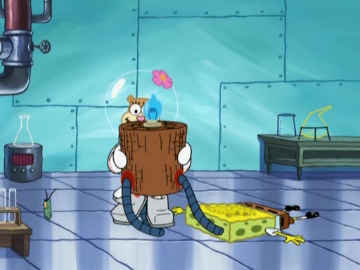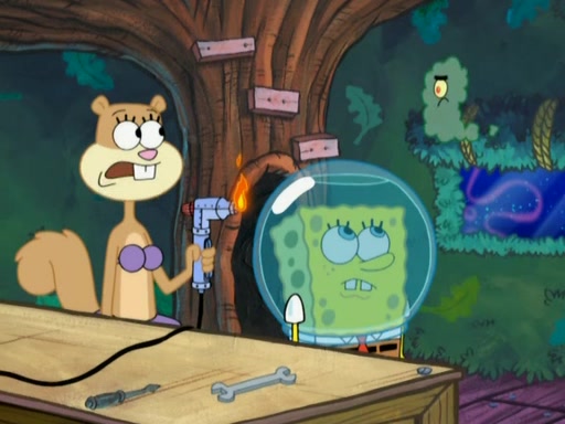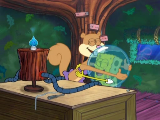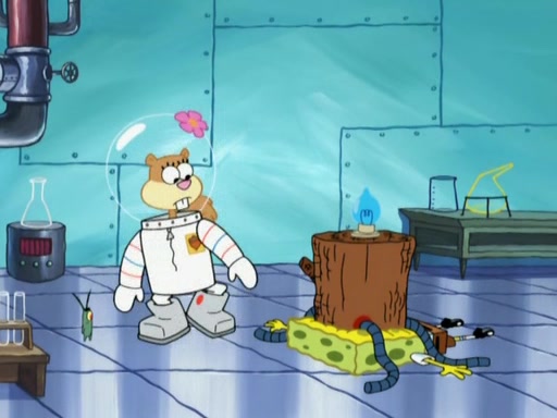 Plankton and Sandy hook cables up to SpongeBob and teleport him to the Krusty Krab. Unfortunately, only his eyes teleport. Squidward is scared and tells Mr. Krabs who thinks that Squidward just has bad gas. Plankton and Sandy teleport SpongeBob back to the Chum Bucket. It goes like that for a while until SpongeBob's entire body gets teleported. Plankton then traps Sandy and SpongeBob in a cage and teleports him to the bottle where the Krabby Patty formula is stored. Then, Sandy teleports the Krabby Patty formula back to her and SpongeBob, leaving Plankton stuck in the bottle. Sandy said she knew Plankton was in it for the formula all along. The episode ends with Sandy bragging that she cannot be fooled and laughing evilly.