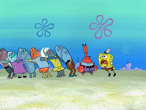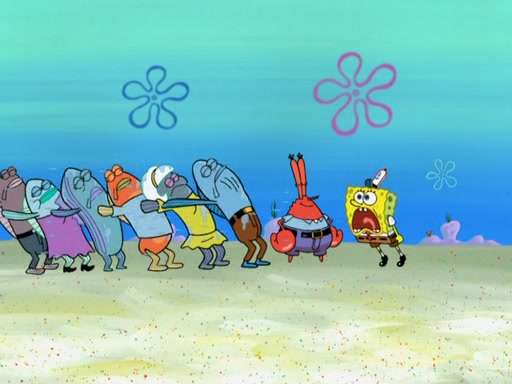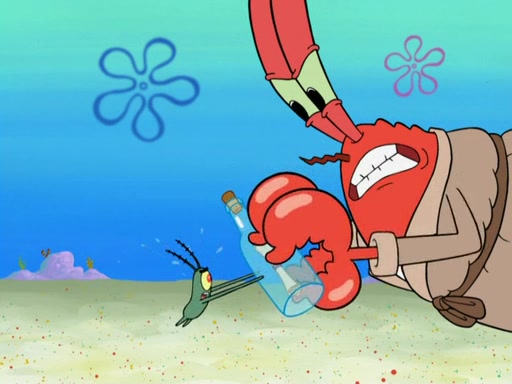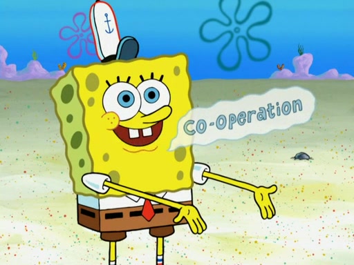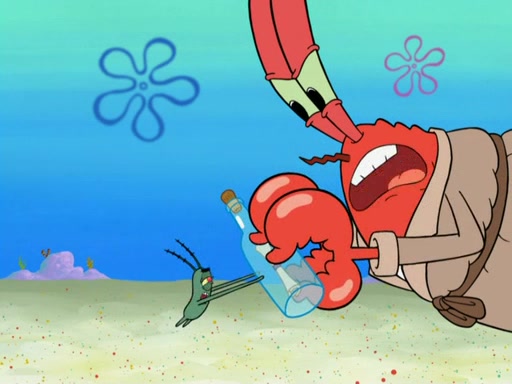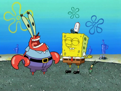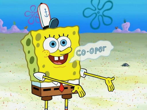 They are excited until the recipe is revealed to be about friendship. SpongeBob is revealed to be the employer and he said he created the restaurant to teach them about cooperation. Mr. Krabs and Plankton are angry and the episode ends when they chase SpongeBob with their newly formed "Co-operation."
