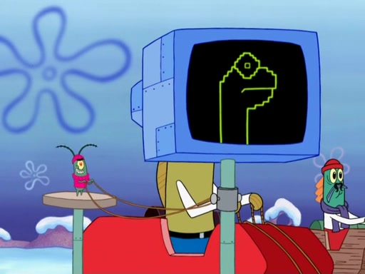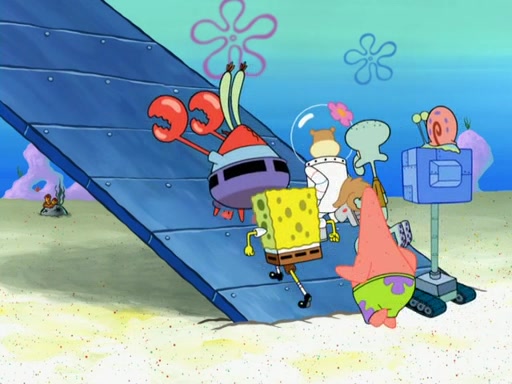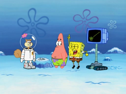 Patrick then points out that he "saw something shiny" and SpongeBob notices that it is Karen. They also discover robot Plankton who is buried in the snow and Karen explains that the whole race was a plot for him to steal from the Krusty Krab. SpongeBob and the group go sidewest to find Mr. Krabs. Gary is unable to go any further.