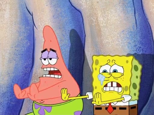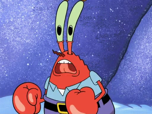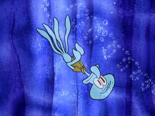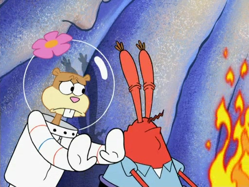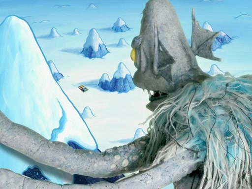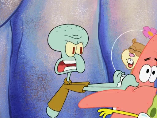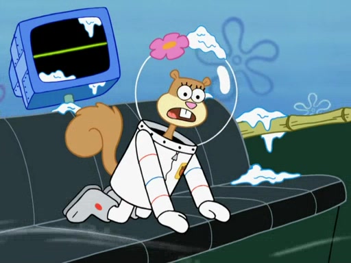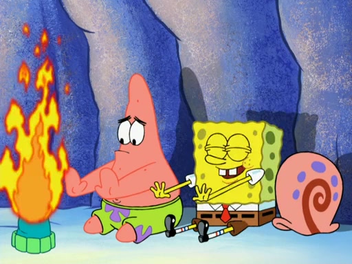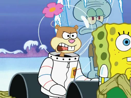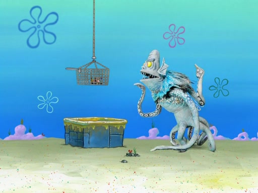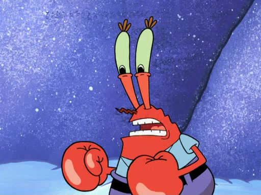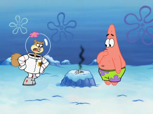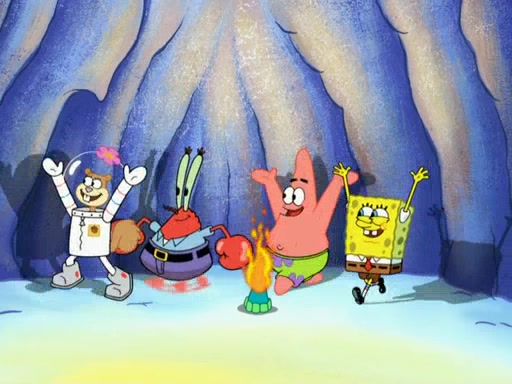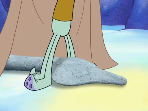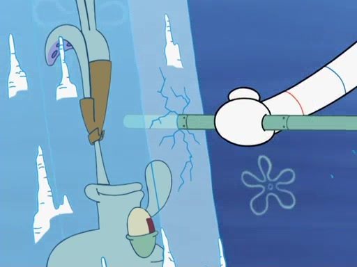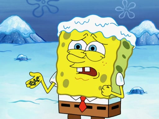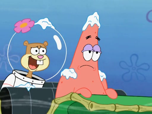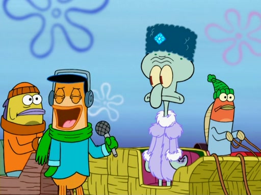 The gang decides to stop there and make a fire. Squidward thaws, just before encountering The Abominable Snow Mollusk who tries to attack the group. Squidward runs away and jumps into a cold body of water which freezes him again. The group (minus Squidward) continue the race and realize that they forgot Squidward soon after. They go after him and save him from the Snow Mollusk with the help of Patrick's last gummy worm. They continue on and Sandy realizes that Mr. Krabs has betrayed the group and gone off on his own so that he could win the prize himself, but got stung by a jellyfish that went into his mouth in the process.