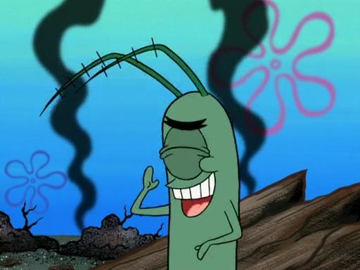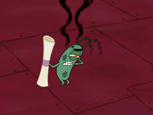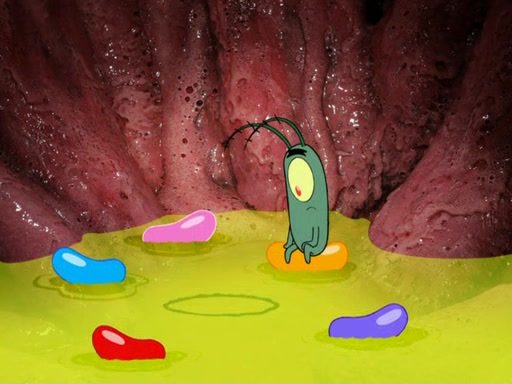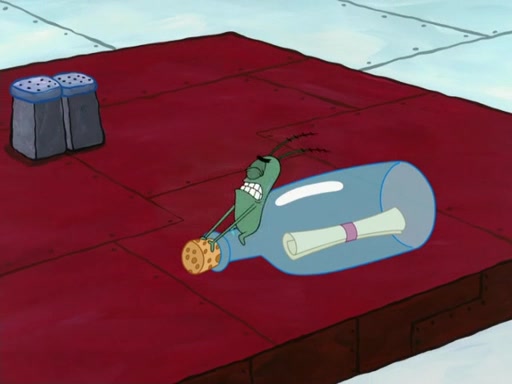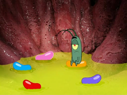 Plankton pretends to surrender and uses a pen to fly away. The group chases Plankton into a net trap that Plankton trapped them in. However, the Snow Mollusk returns and eats Patrick's Jelly Beans, then hugs the little pink sea star. Plankton escapes but the Snow Mollusk mistakes him for a jelly bean and eats him, returning the formula to Mr. Krabs with Karen showing no sympathy for Plankton. The episode ends as Plankton waits to be digested.