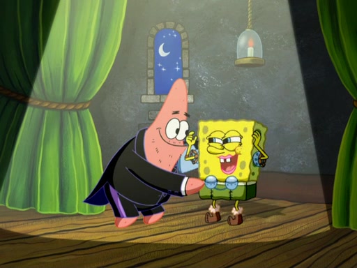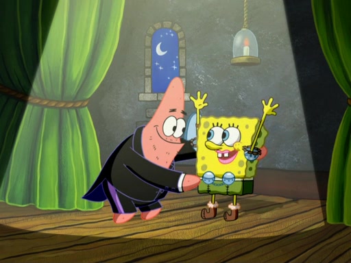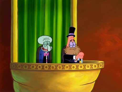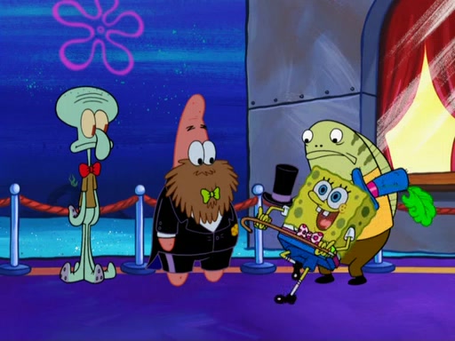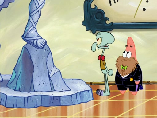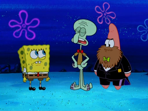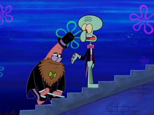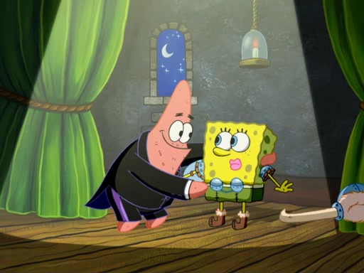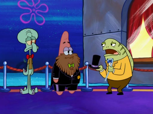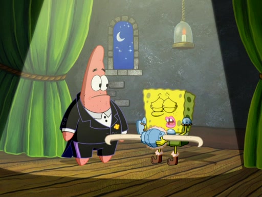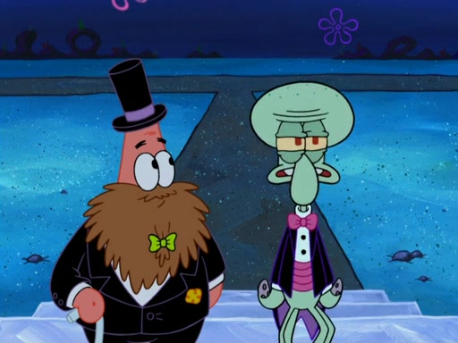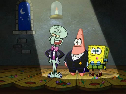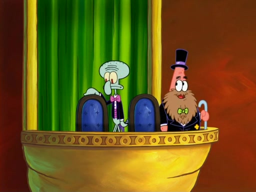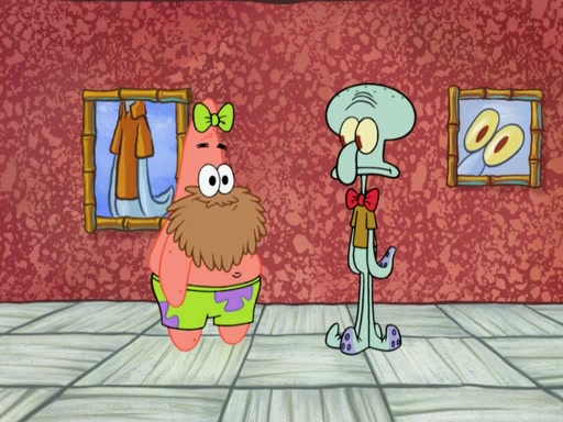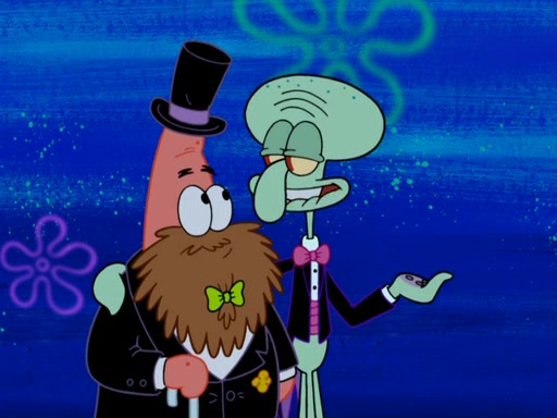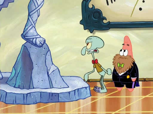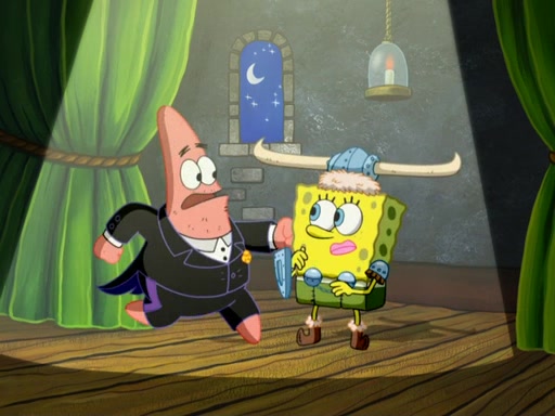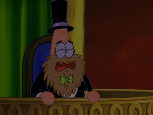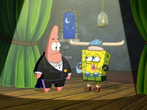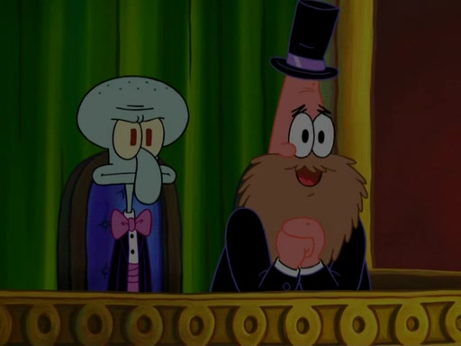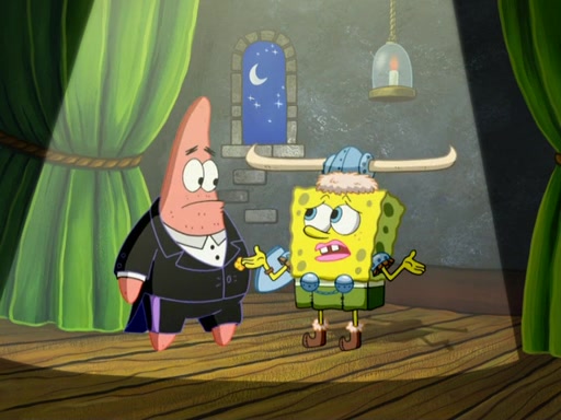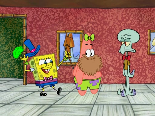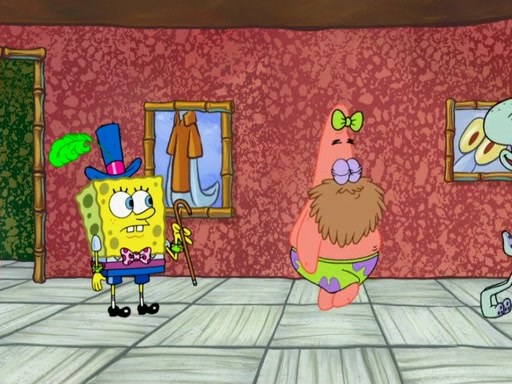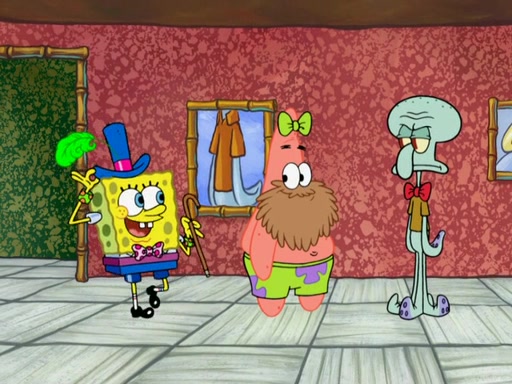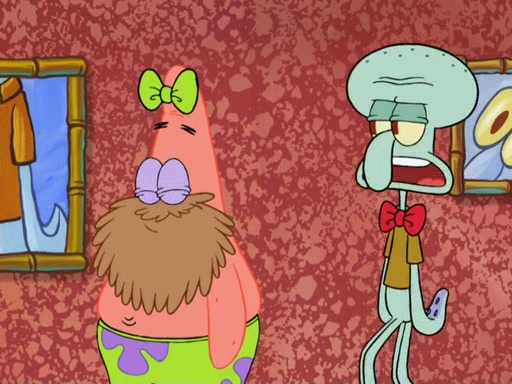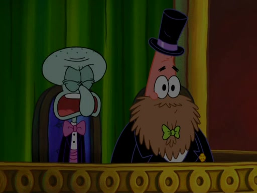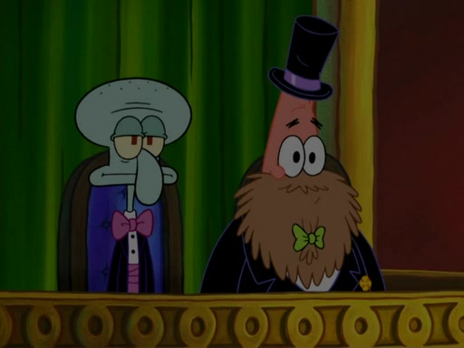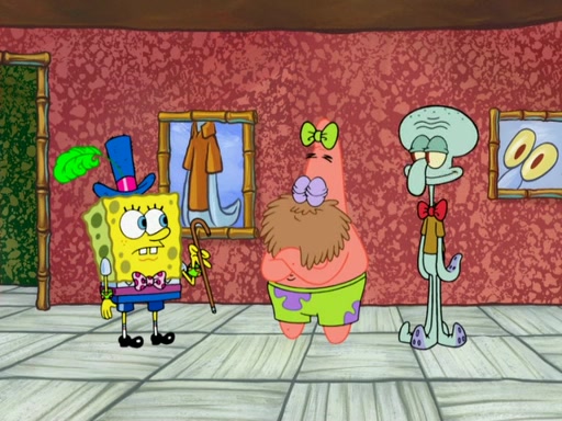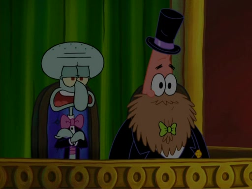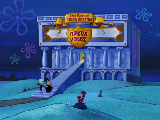Then, Squidward and Patrick go to the Opera House and they see a lady which is really SpongeBob singing opera which Patrick says "she's beautiful."