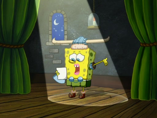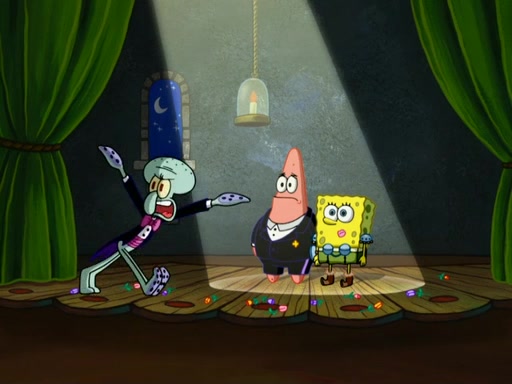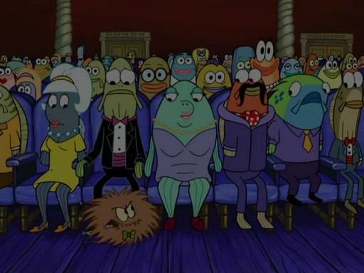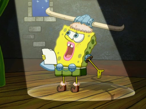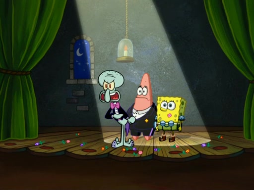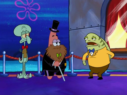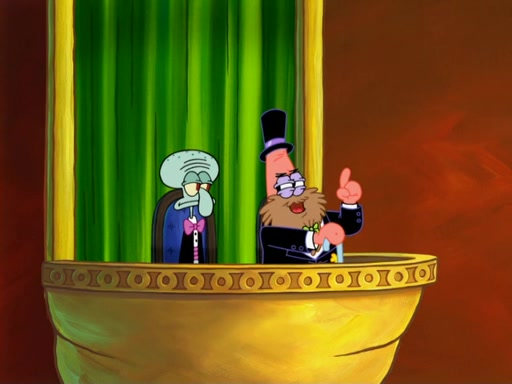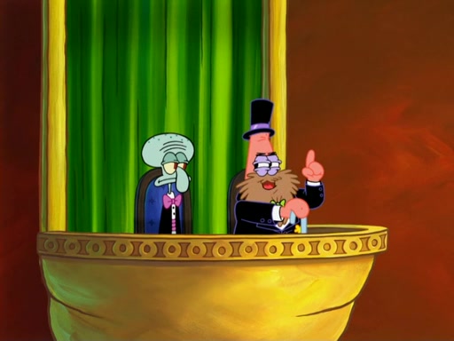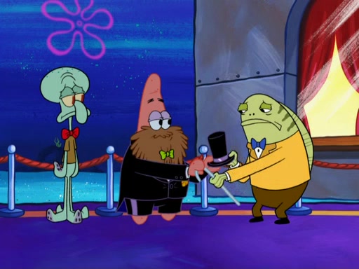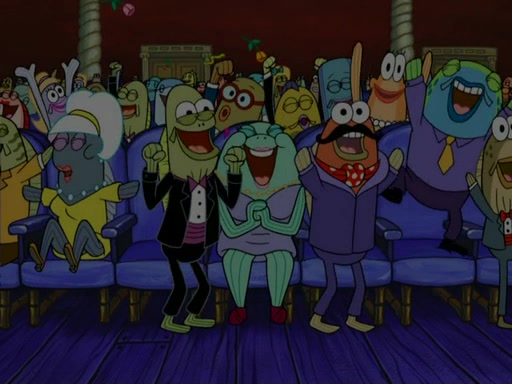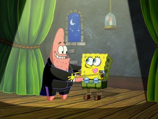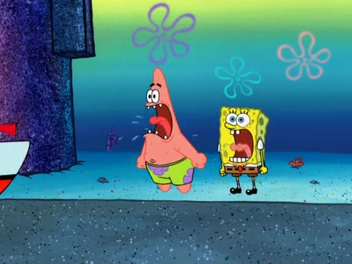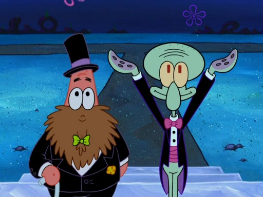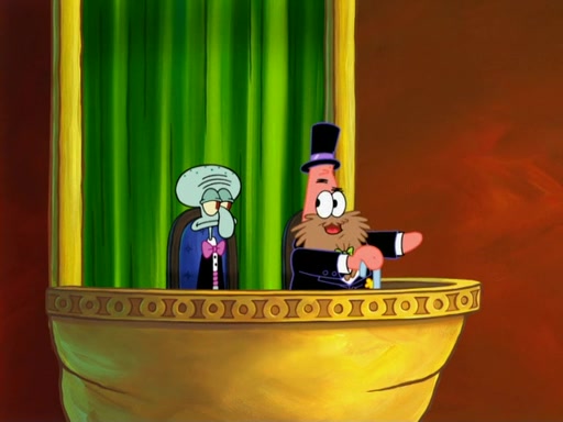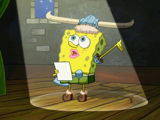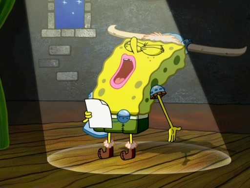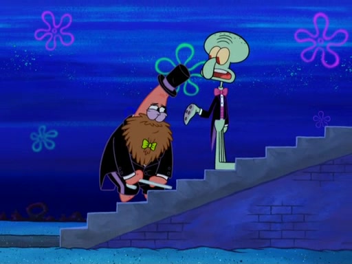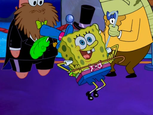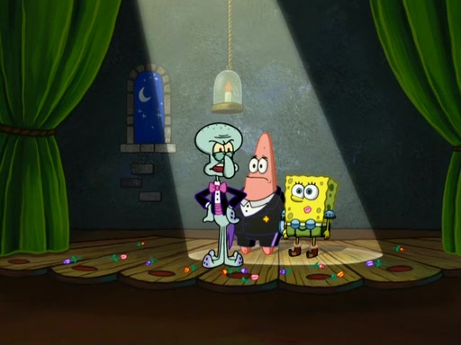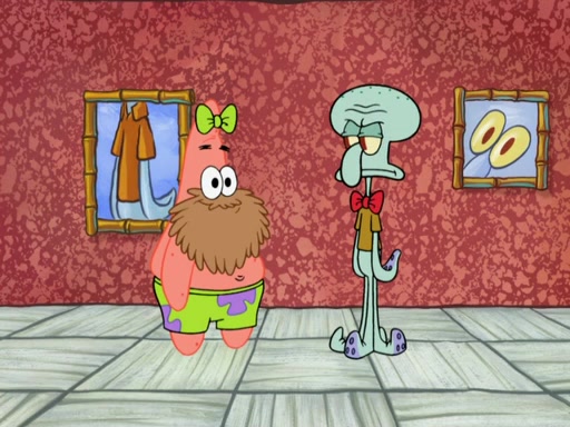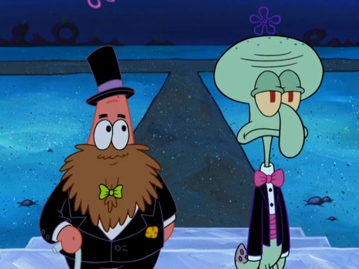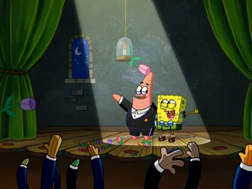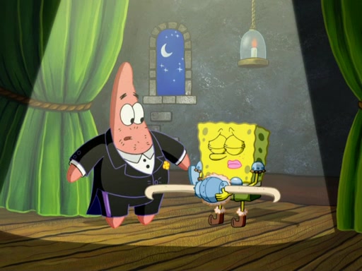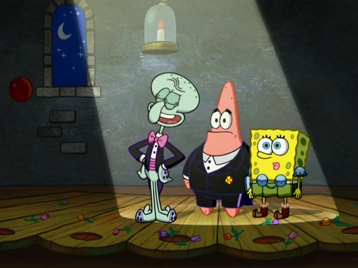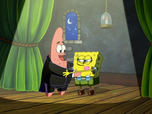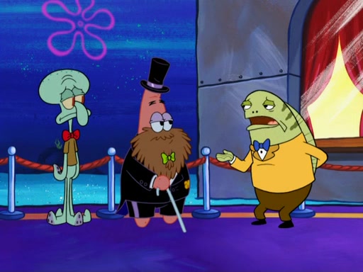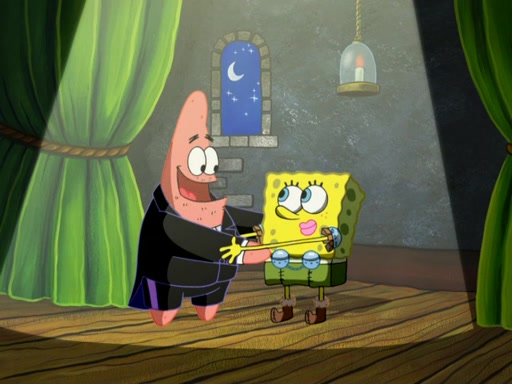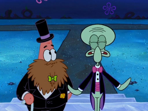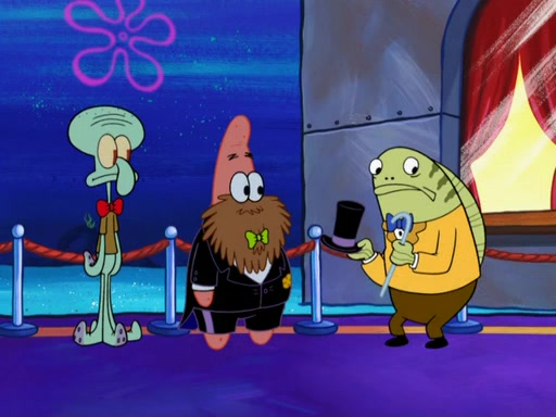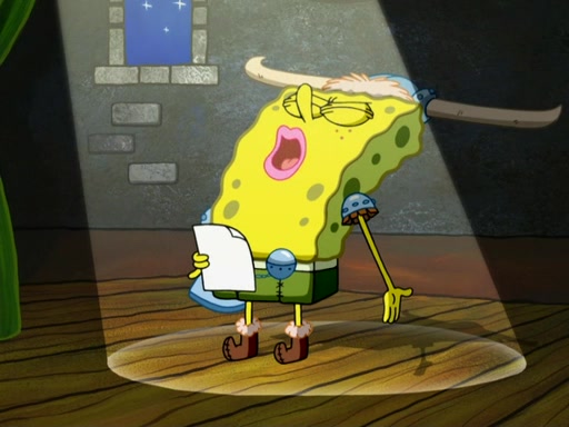 Then, Squidward and Patrick go to the Opera House and they see a lady which is really SpongeBob singing opera which Patrick says "she's beautiful."