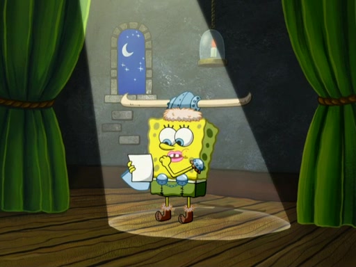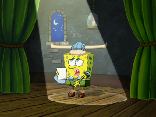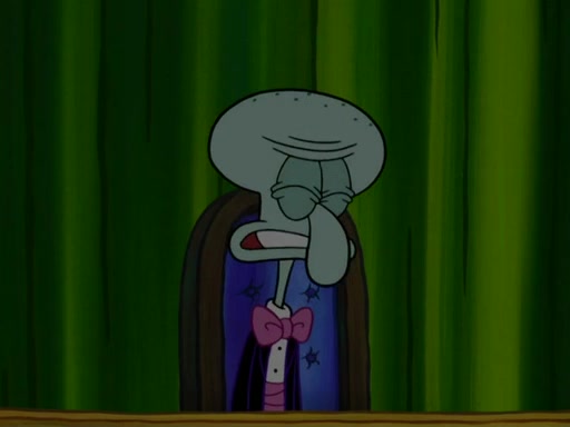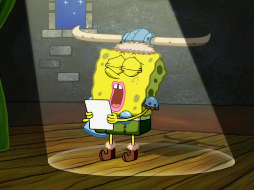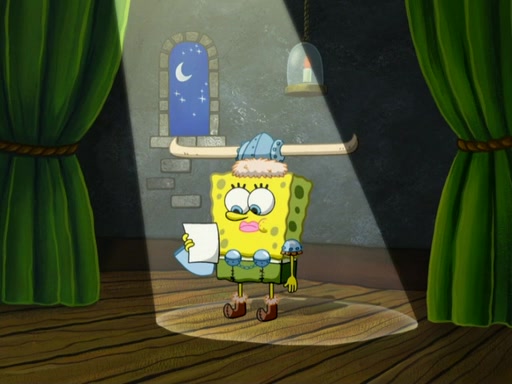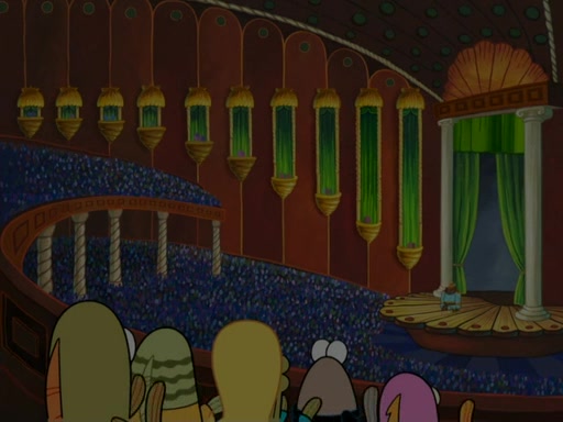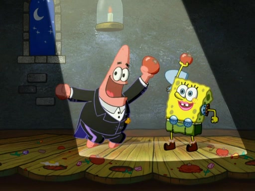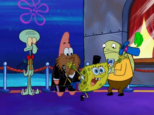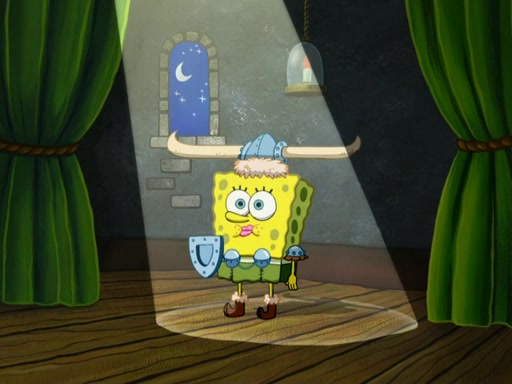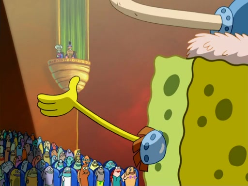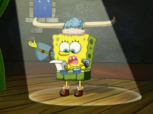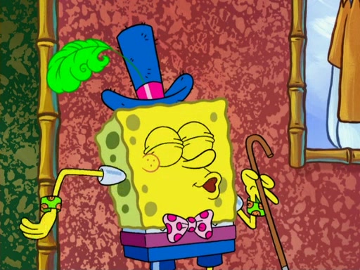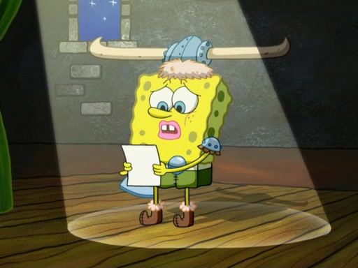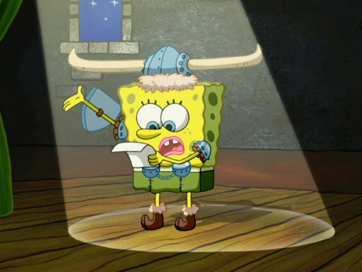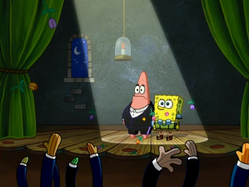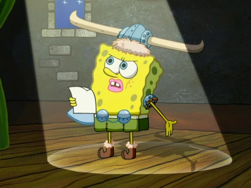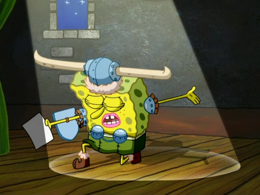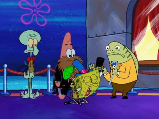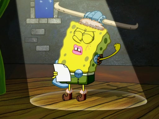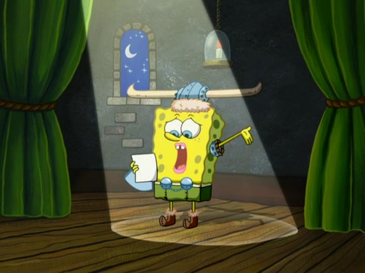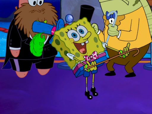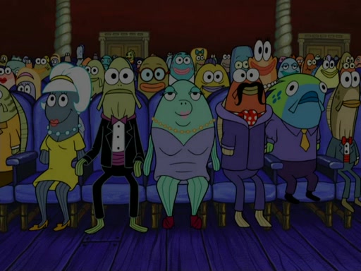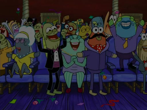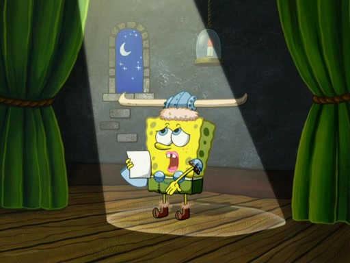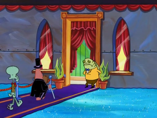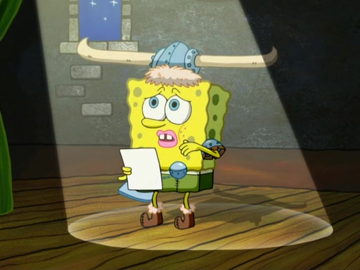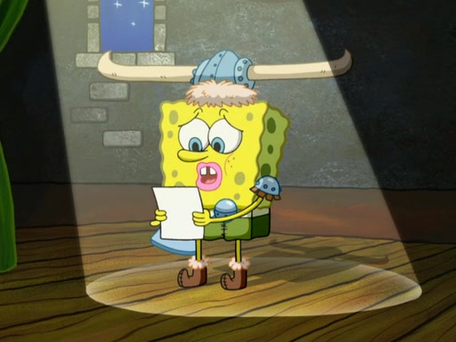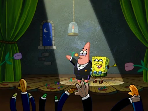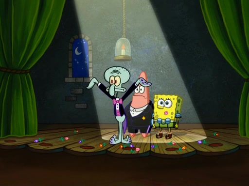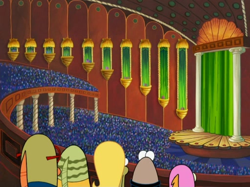 Then, Squidward and Patrick go to the Opera House and they see a lady which is really SpongeBob singing opera which Patrick says "she's beautiful."