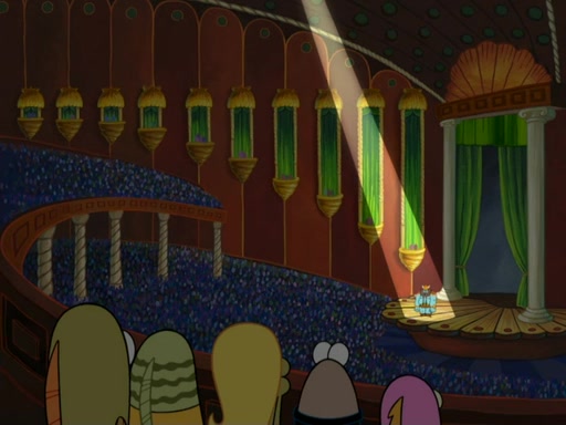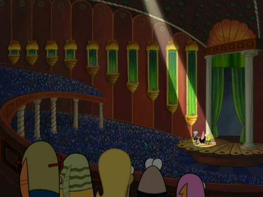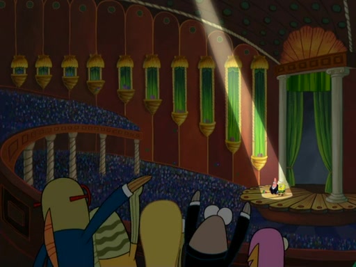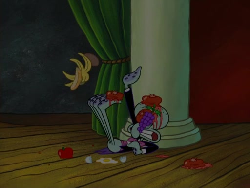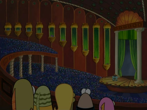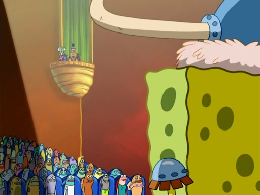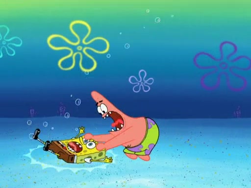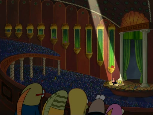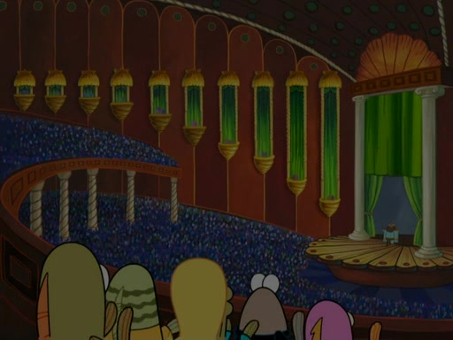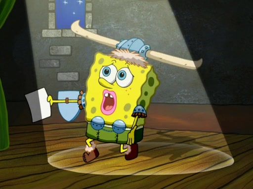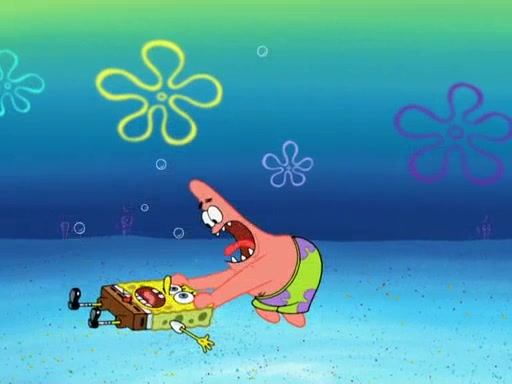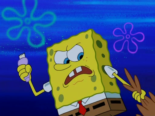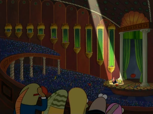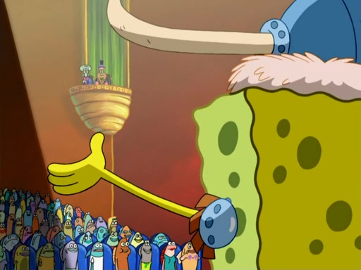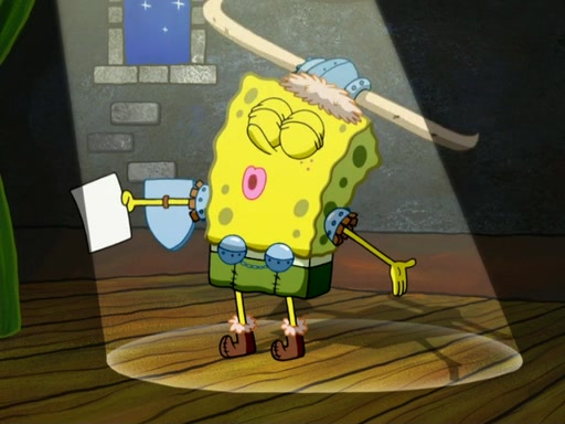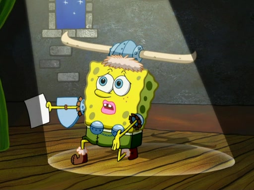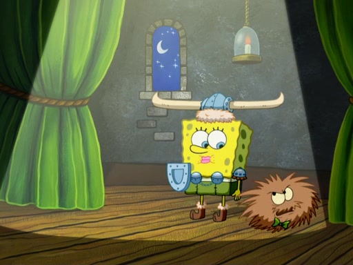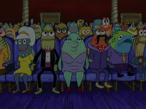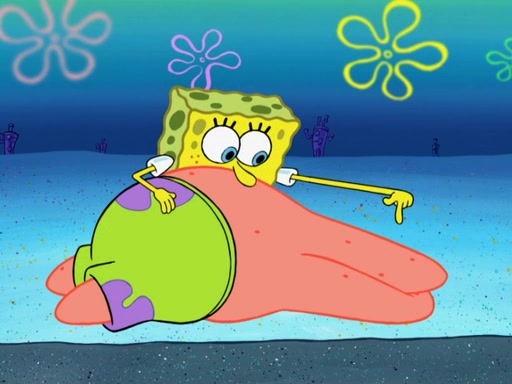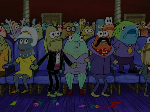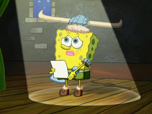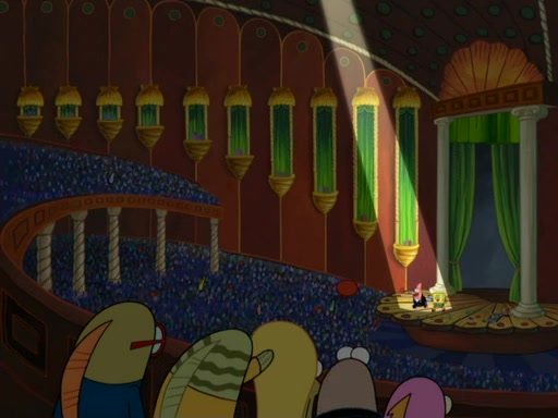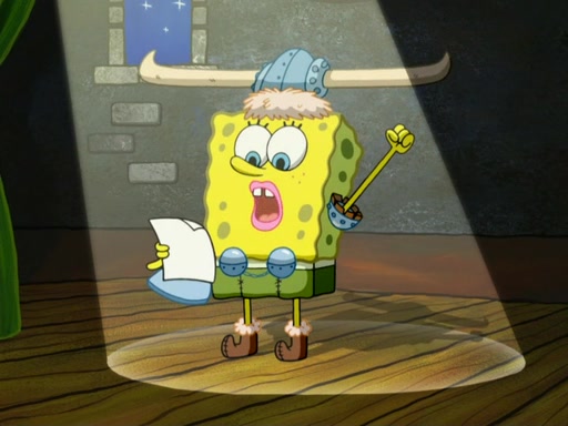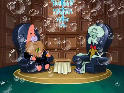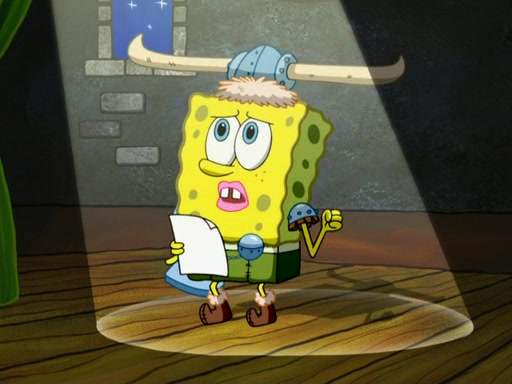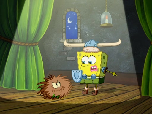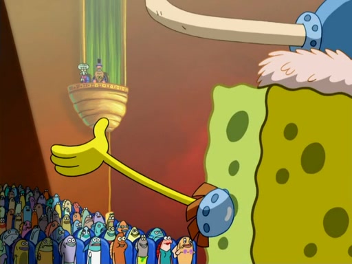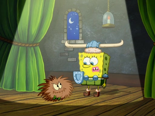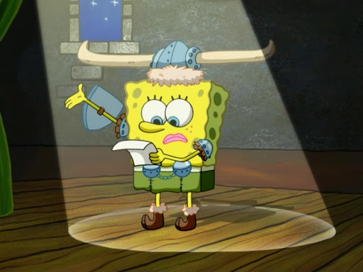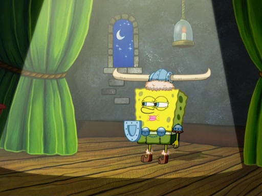 Then, Squidward and Patrick go to the Opera House and they see a lady which is really SpongeBob singing opera which Patrick says "she's beautiful."