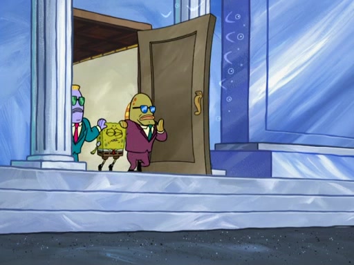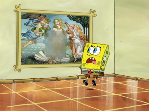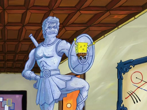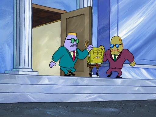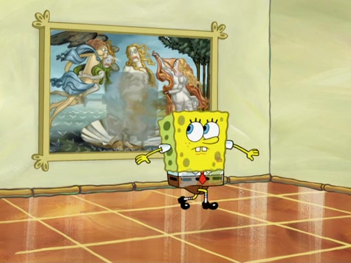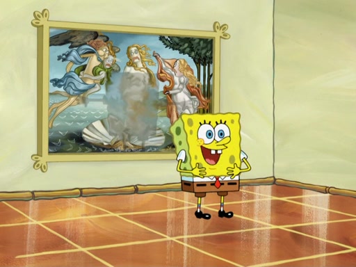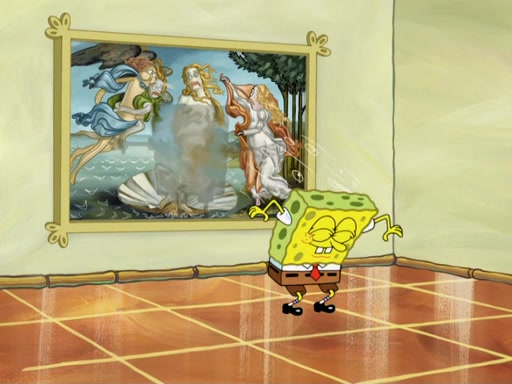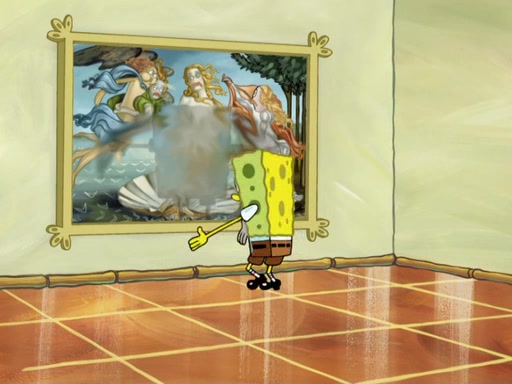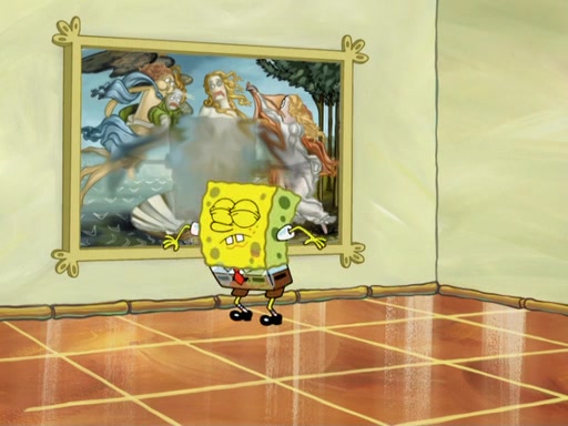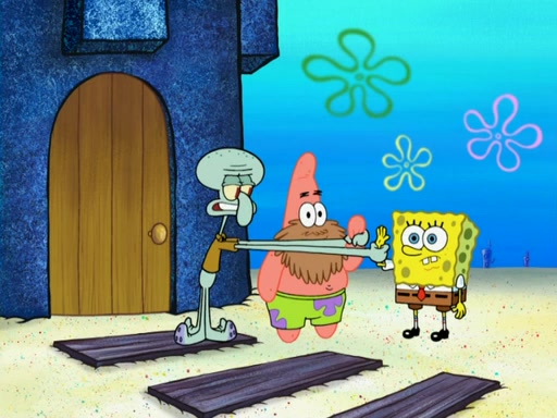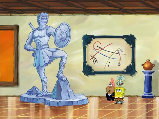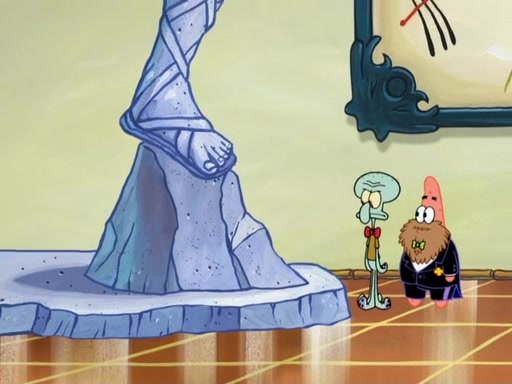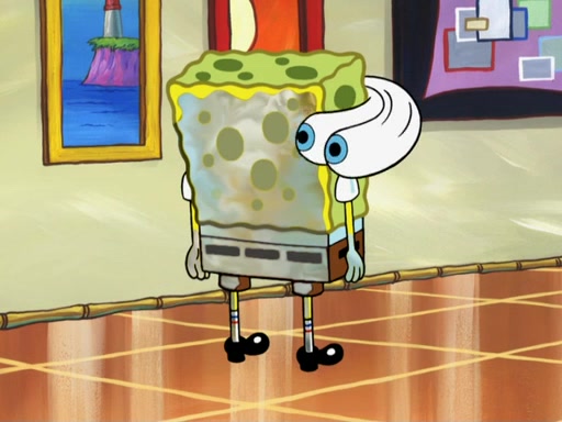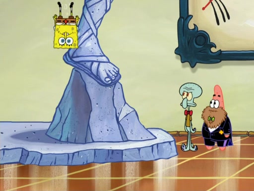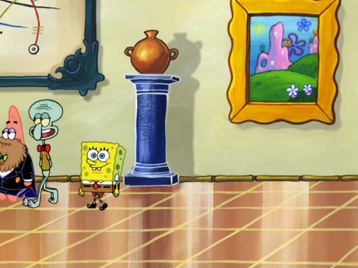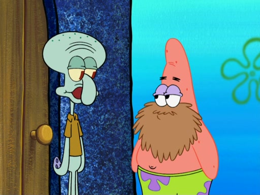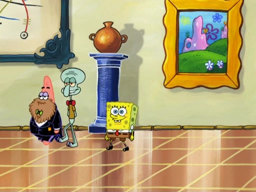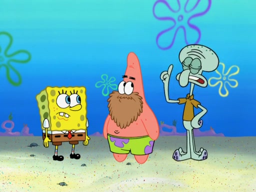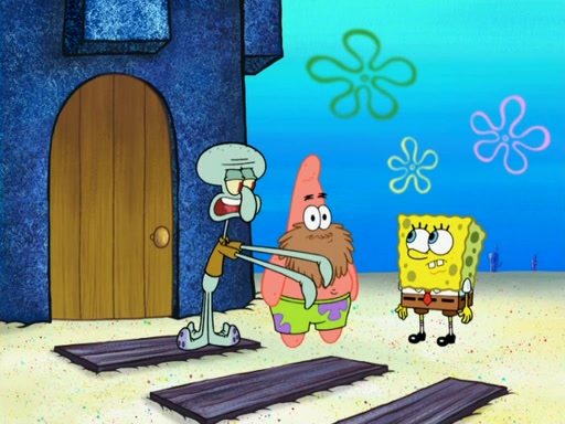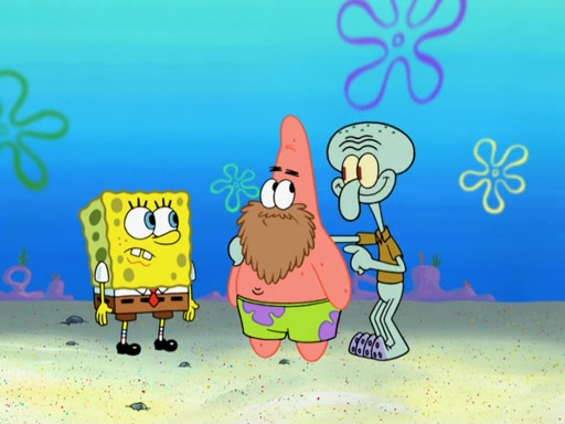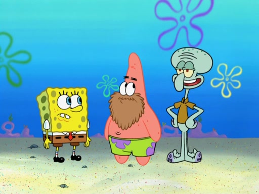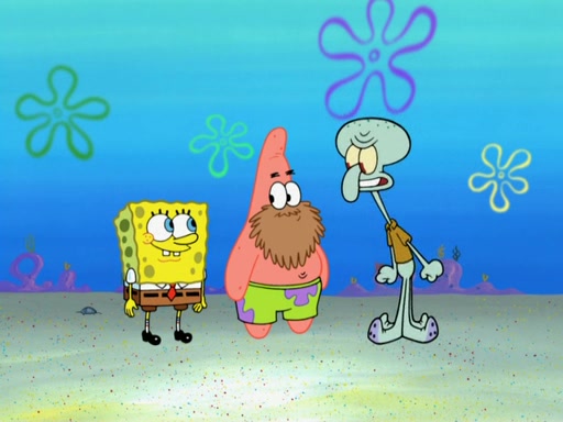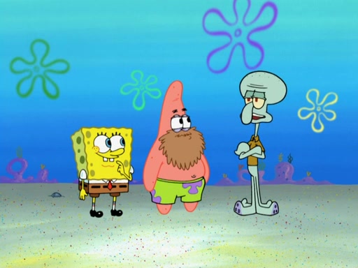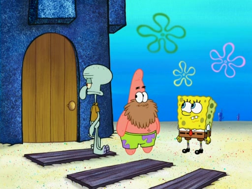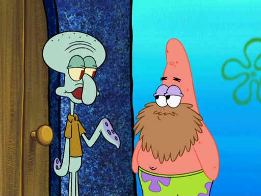 Then, they go to the art place and SpongeBob follows them around and Patrick and Squidward tell the security to kick him out and he first put him out softly, but he doesn't leave so he ends up kicking him. SpongeBob sees Squidward and Patrick walking and Squidward mentions that the beard was the best thing that ever happened to Patrick other than himself. SpongeBob tries to remove his beard to restore his friendship. Squidward stops him and says that they are through with him.