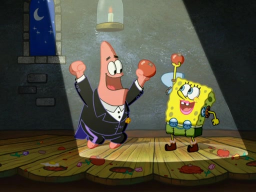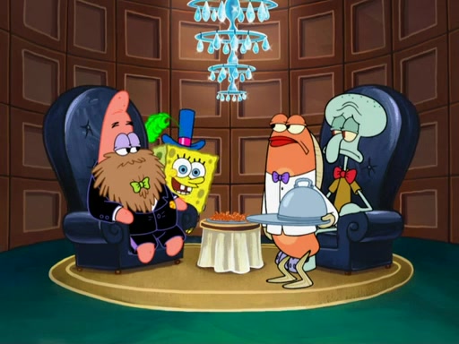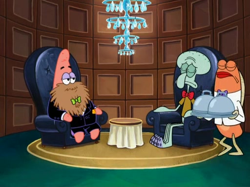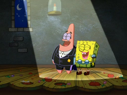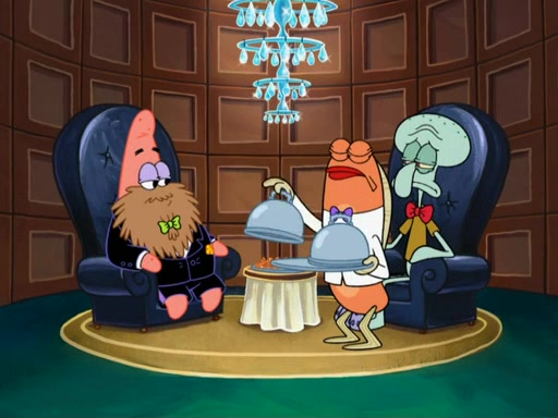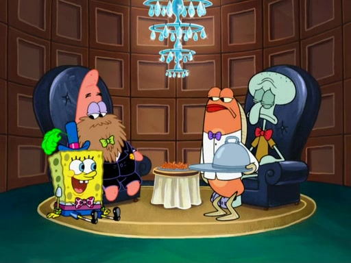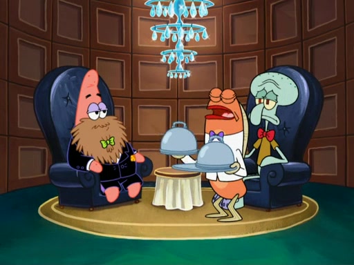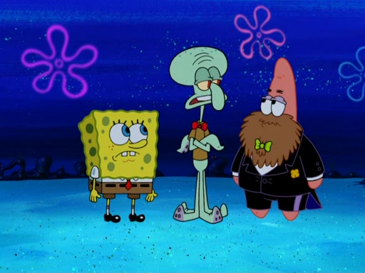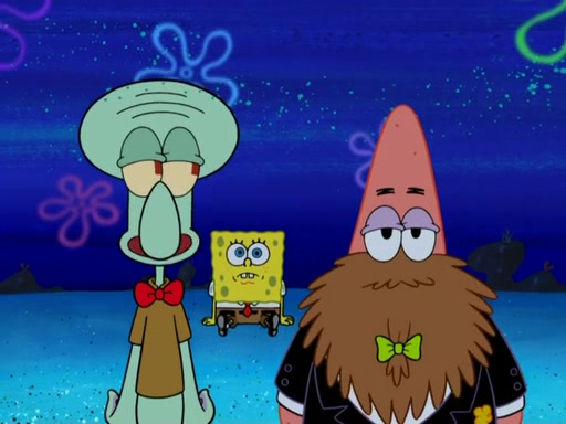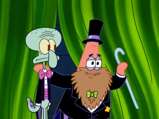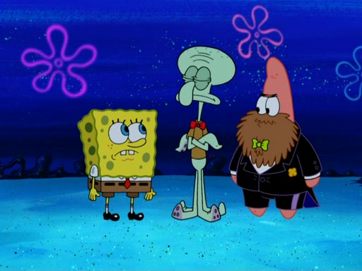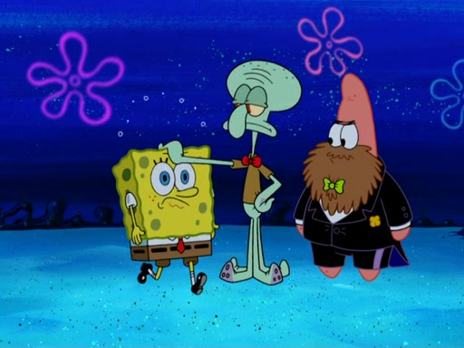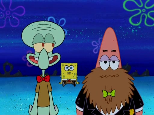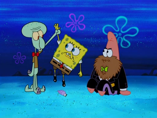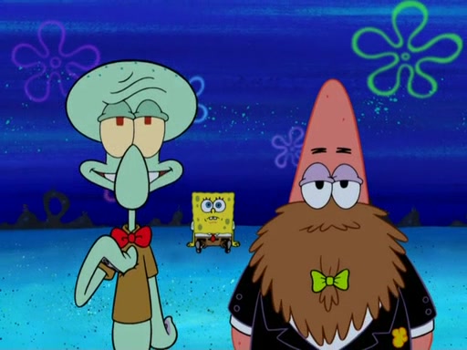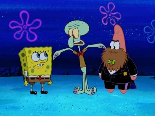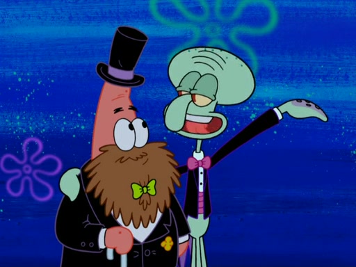 After SpongeBob sang opera to win Patrick back, Patrick begins to cry and sees the beard is really a sea urchin and the sea urchin woke up and ran away from Patrick. He chased it until SpongeBob says Patrick's name and he says "How do you know my name?" and he says that he is SpongeBob and they make up again then Squidward told all the guests that the show is horrible, but they disagree and threw food at him then the episode ends.