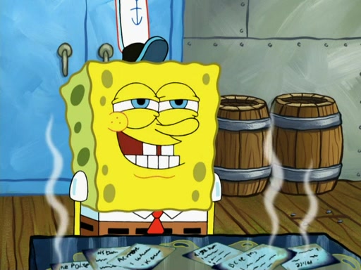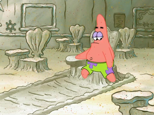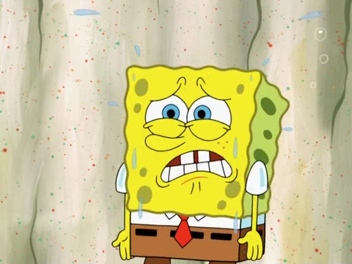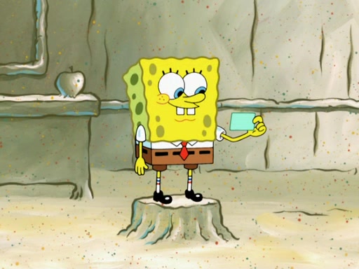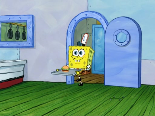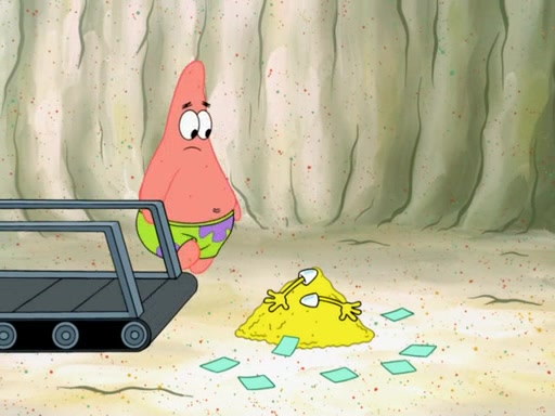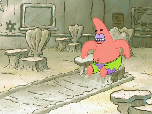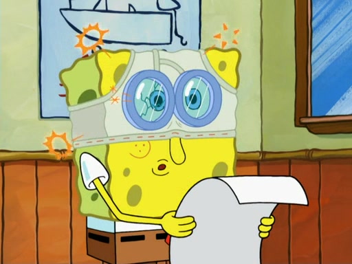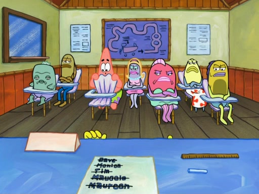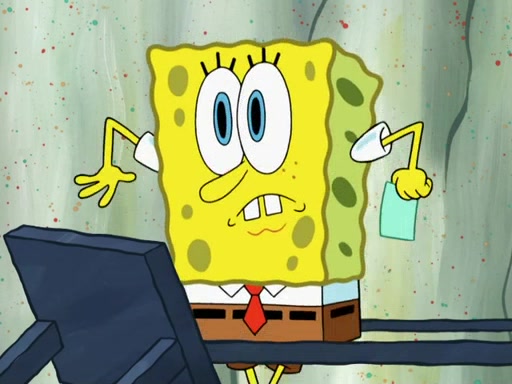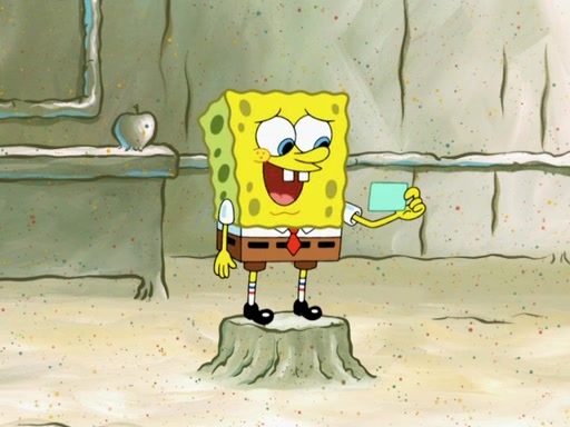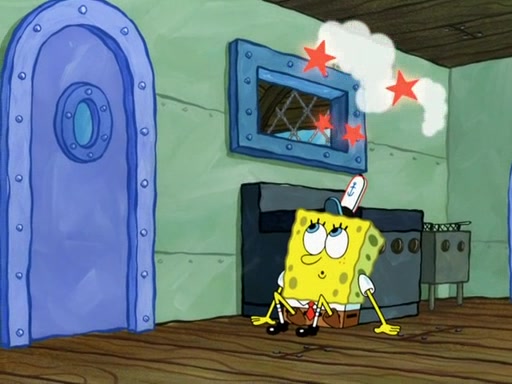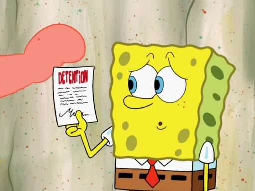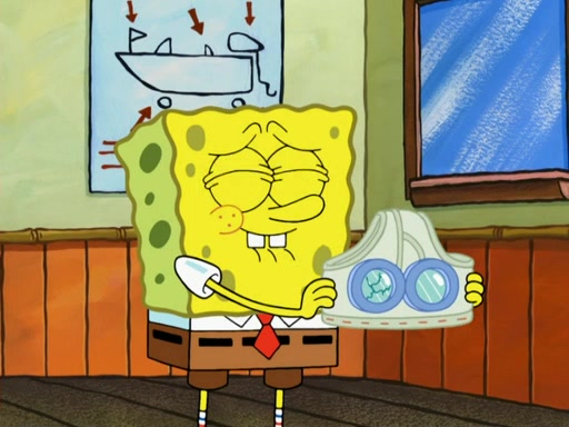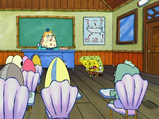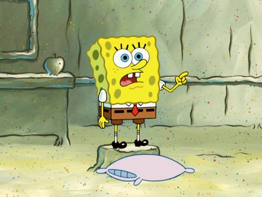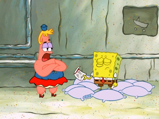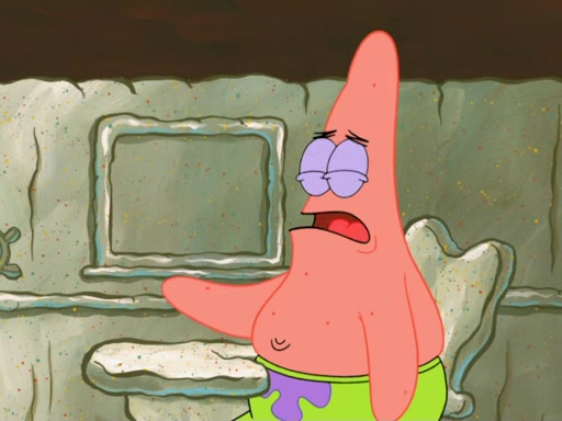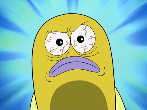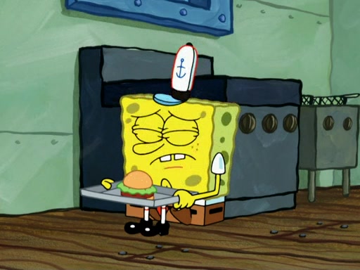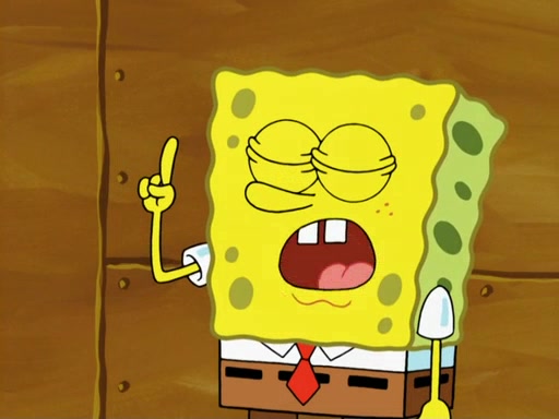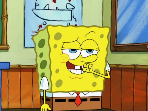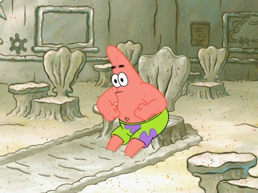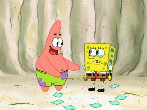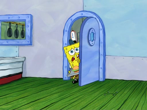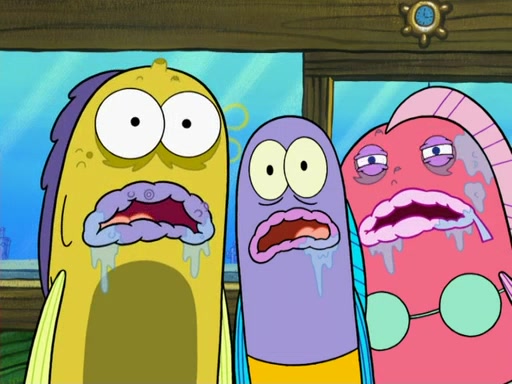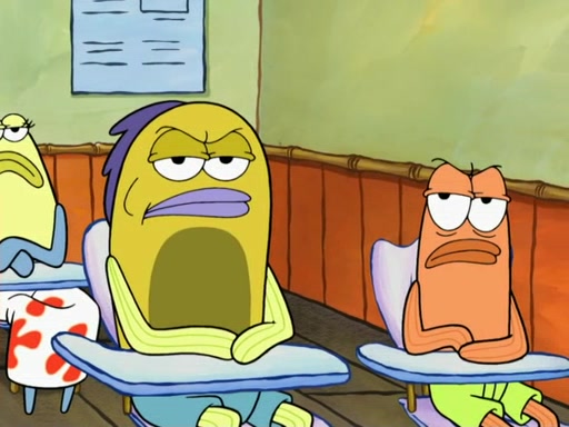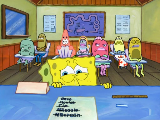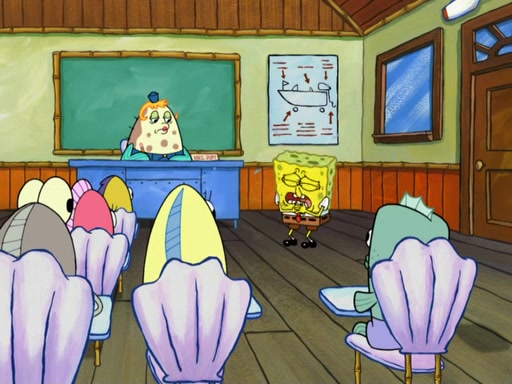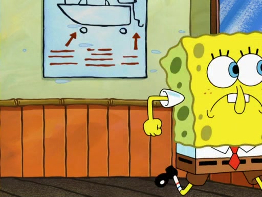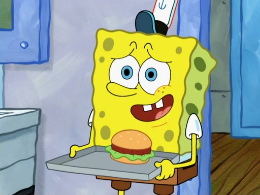 SpongeBob then realizes that he has stage fright. The customers start fighting for the single order as Squidward is beaten up after trying to give a customer his order, which makes SpongeBob even more frightened. It then cuts to Patrick's rock. Patrick opens it, only to realize he has the wrong rock, but SpongeBob pulls him in. SpongeBob asks Patrick to help him practice by listening to his speech. SpongeBob has to practice if he wants to pass then he has to give the report.