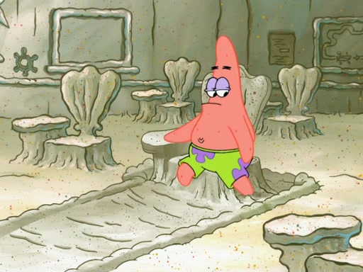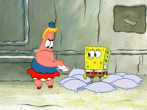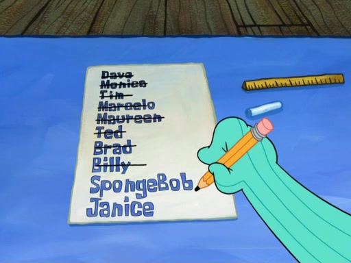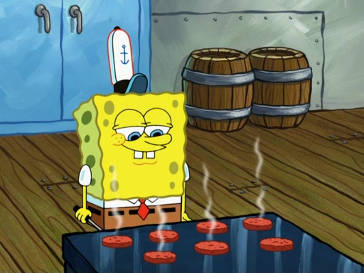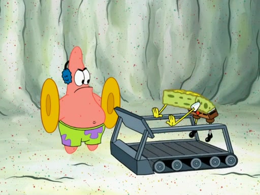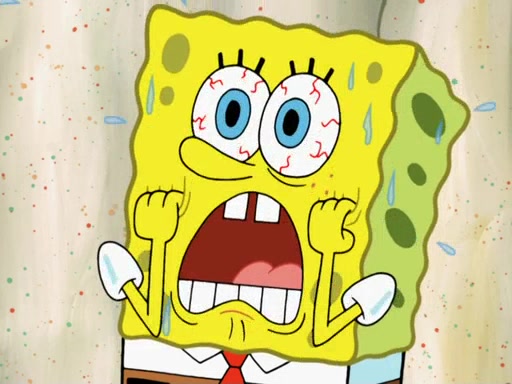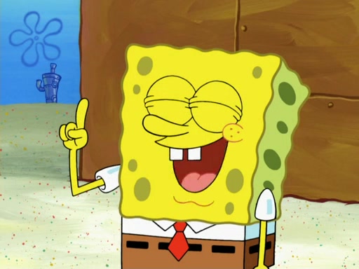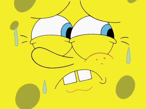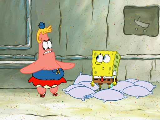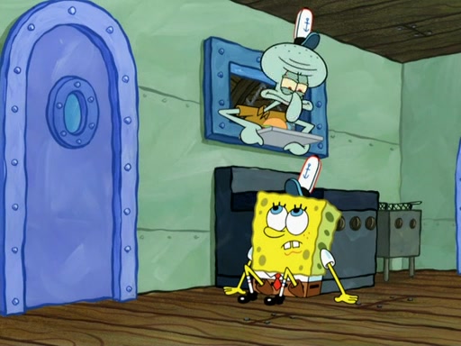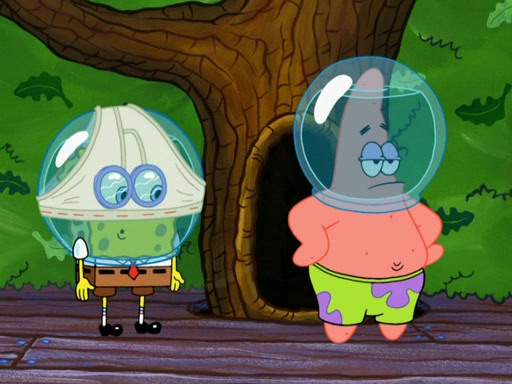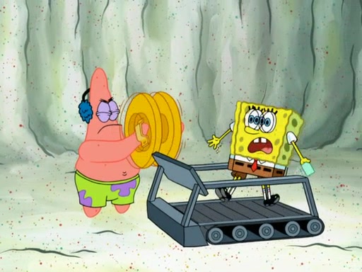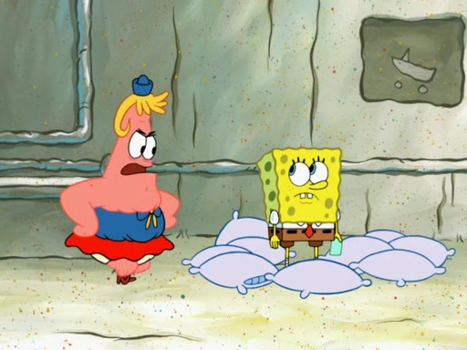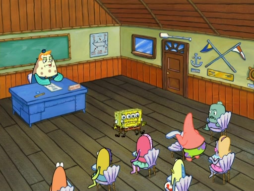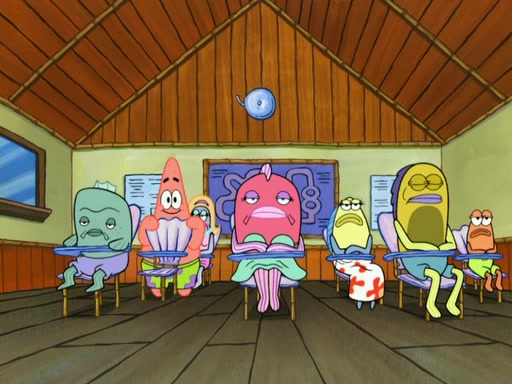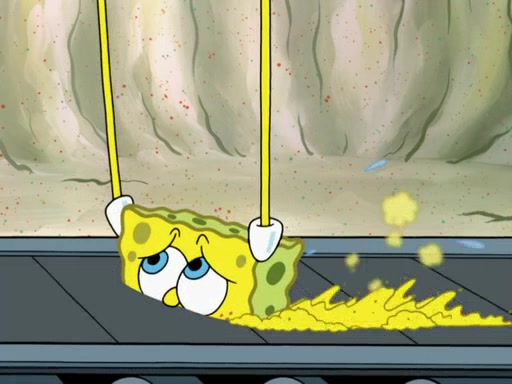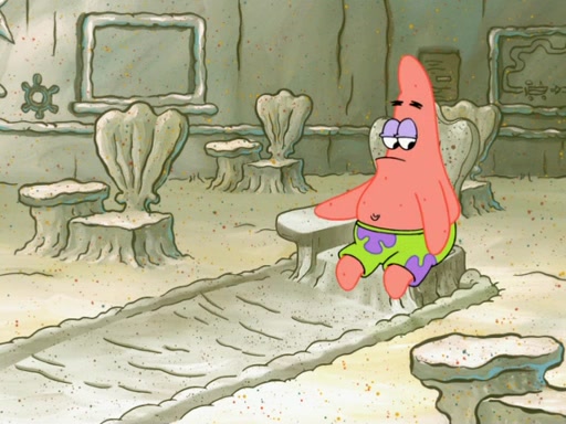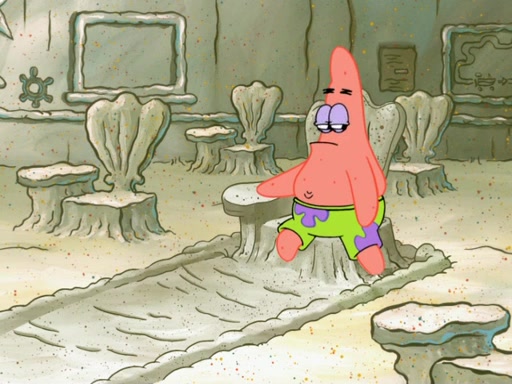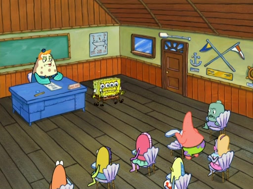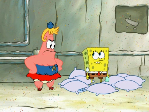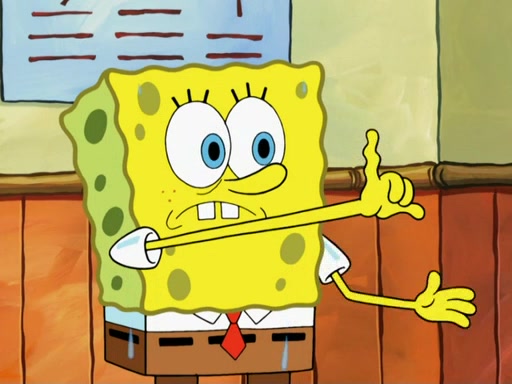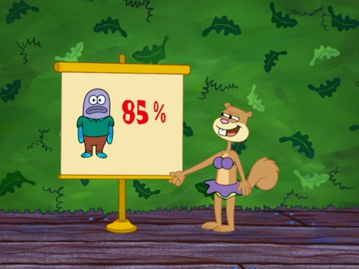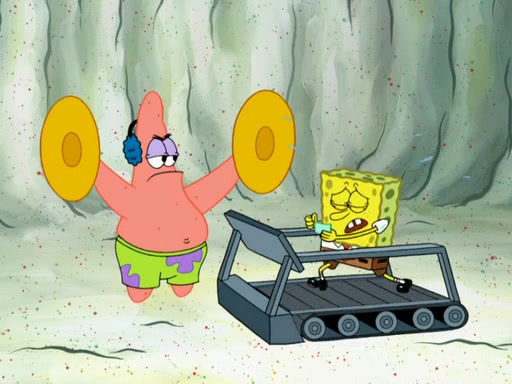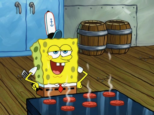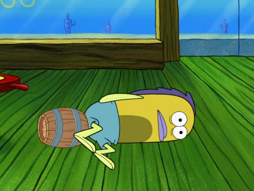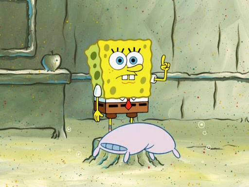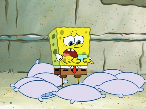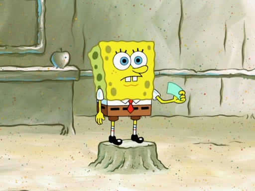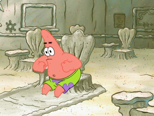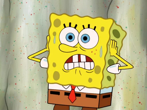 SpongeBob then realizes that he has stage fright. The customers start fighting for the single order as Squidward is beaten up after trying to give a customer his order, which makes SpongeBob even more frightened. It then cuts to Patrick's rock. Patrick opens it, only to realize he has the wrong rock, but SpongeBob pulls him in. SpongeBob asks Patrick to help him practice by listening to his speech. SpongeBob has to practice if he wants to pass then he has to give the report.