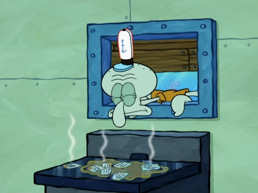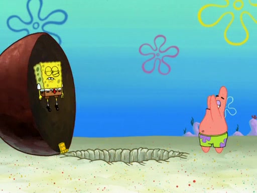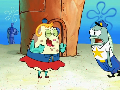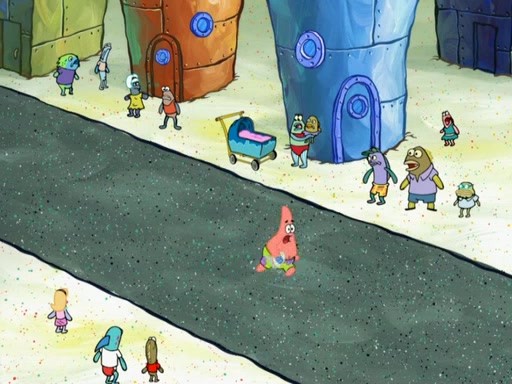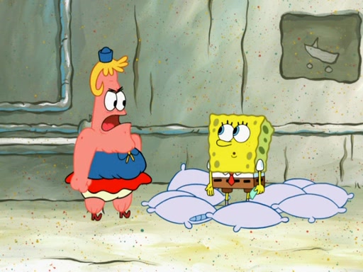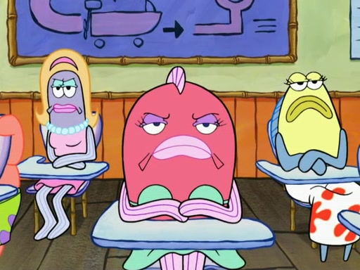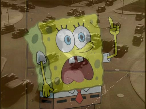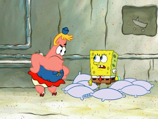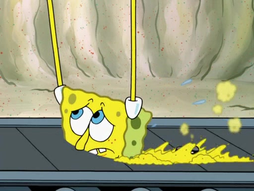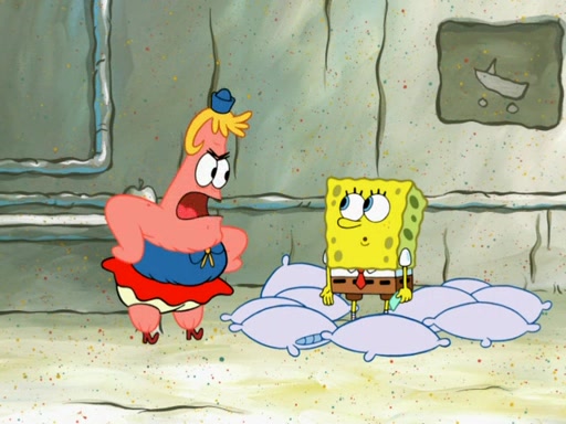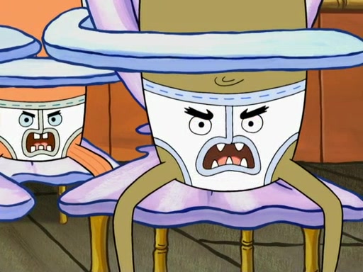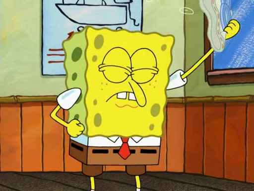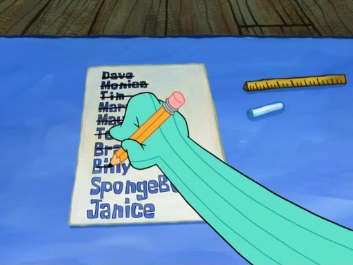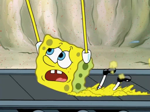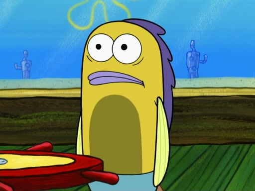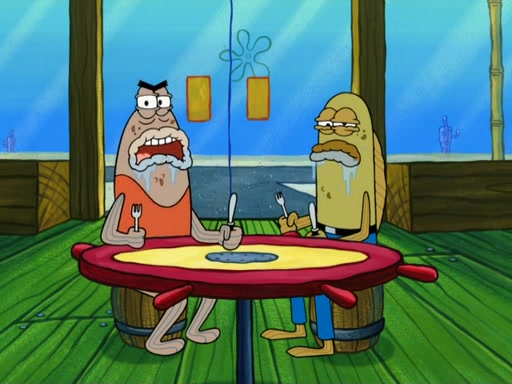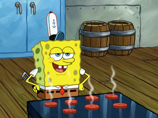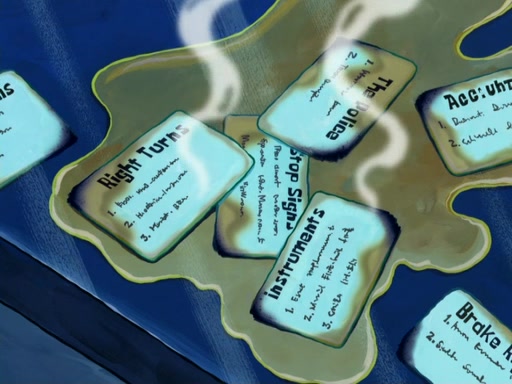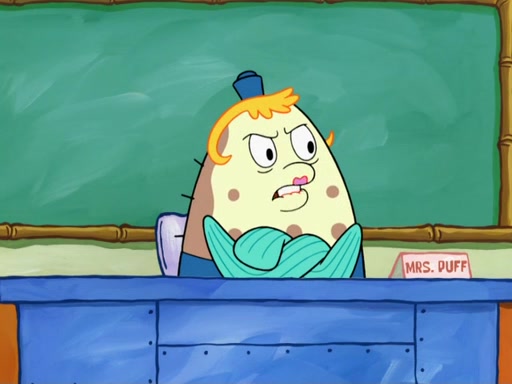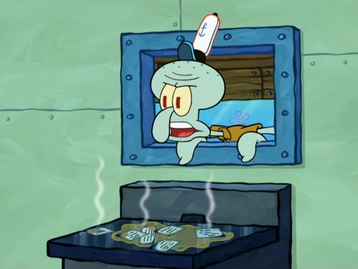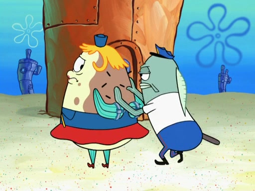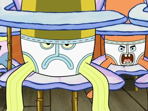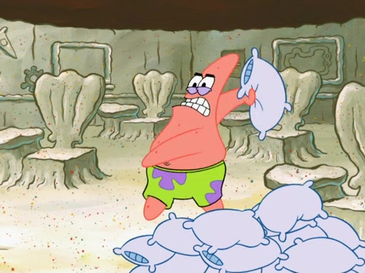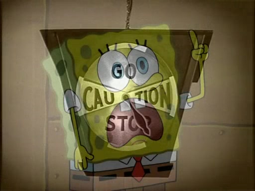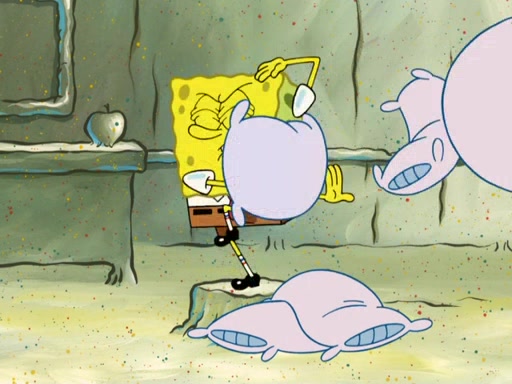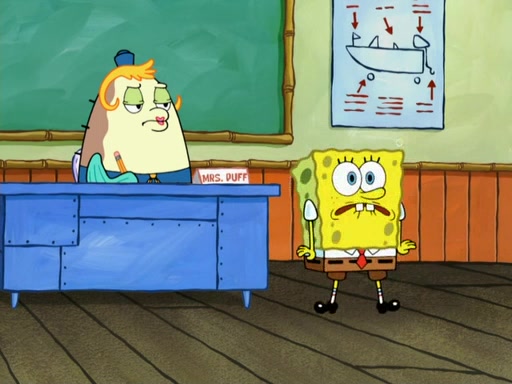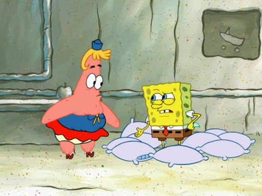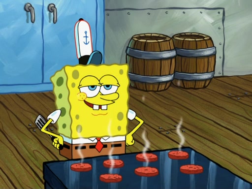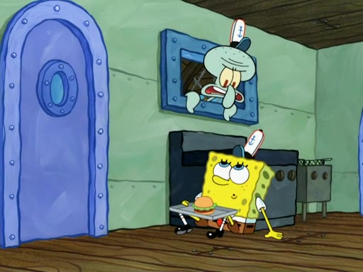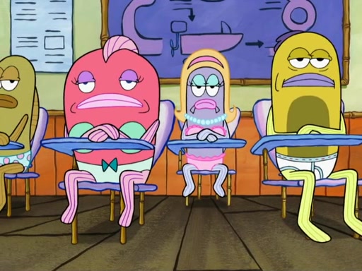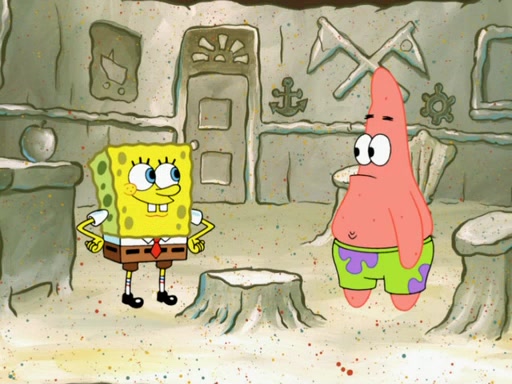 SpongeBob then realizes that he has stage fright. The customers start fighting for the single order as Squidward is beaten up after trying to give a customer his order, which makes SpongeBob even more frightened. It then cuts to Patrick's rock. Patrick opens it, only to realize he has the wrong rock, but SpongeBob pulls him in. SpongeBob asks Patrick to help him practice by listening to his speech. SpongeBob has to practice if he wants to pass then he has to give the report.