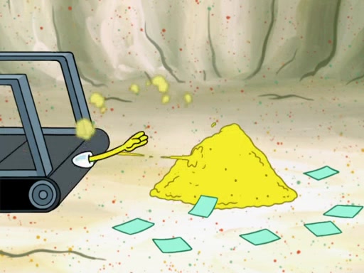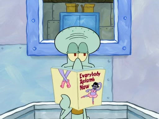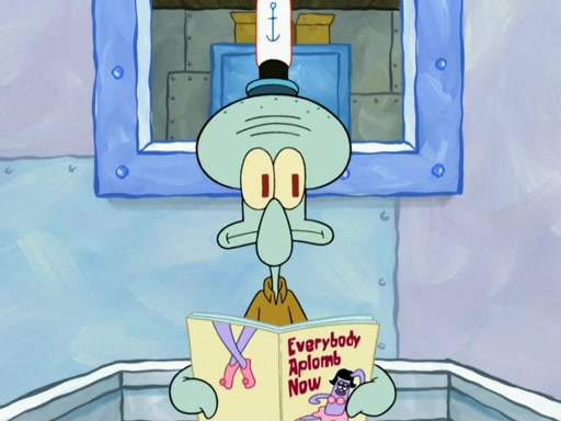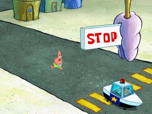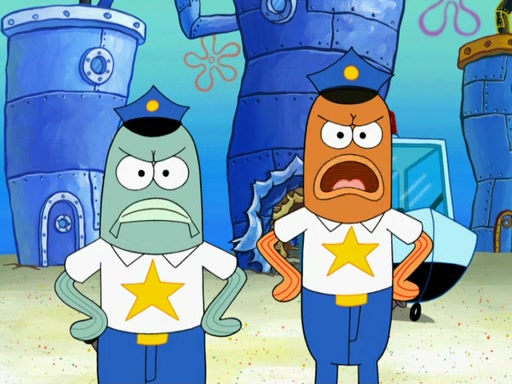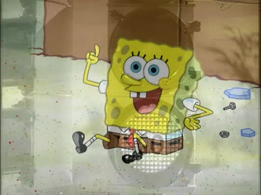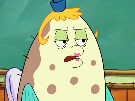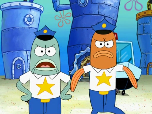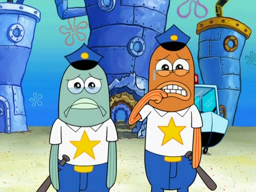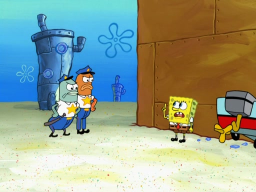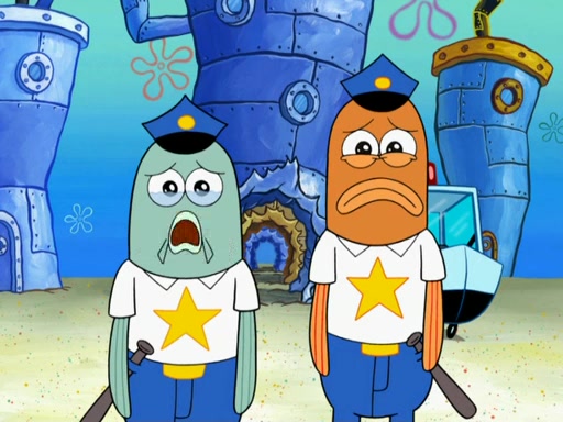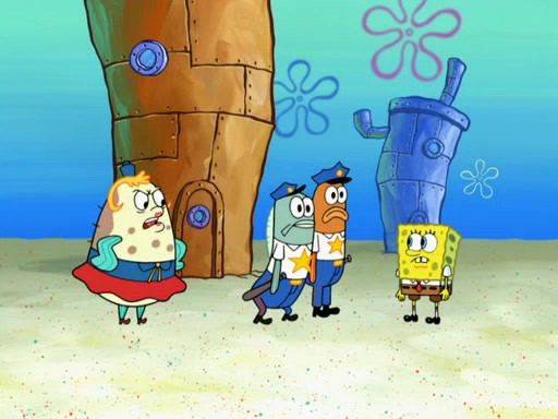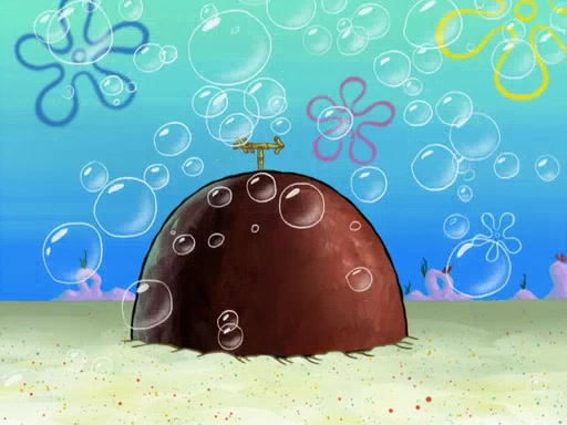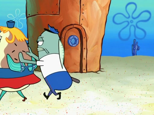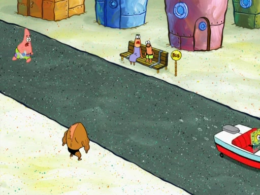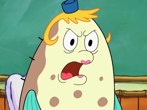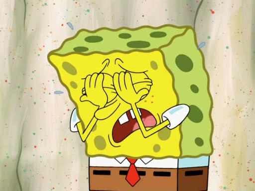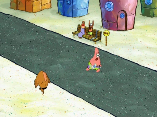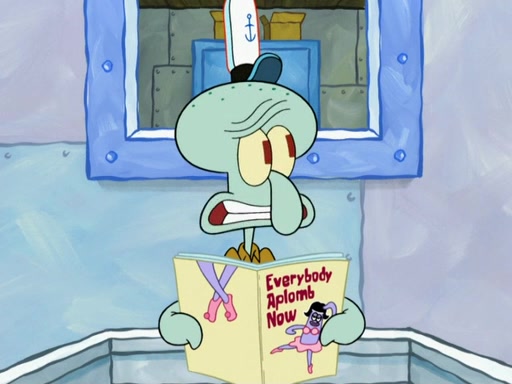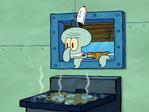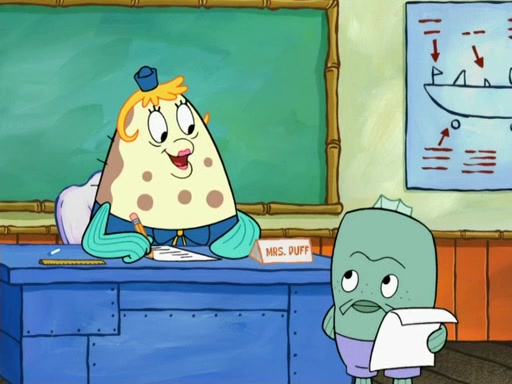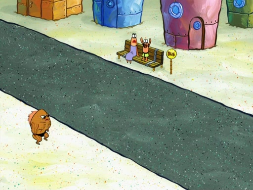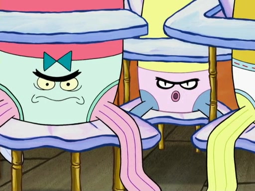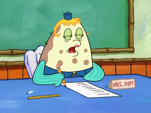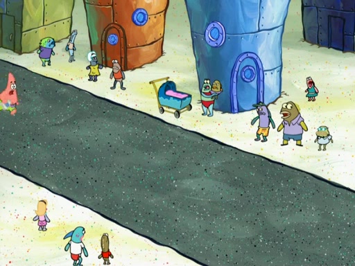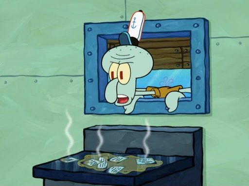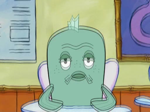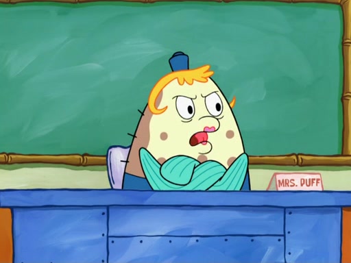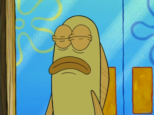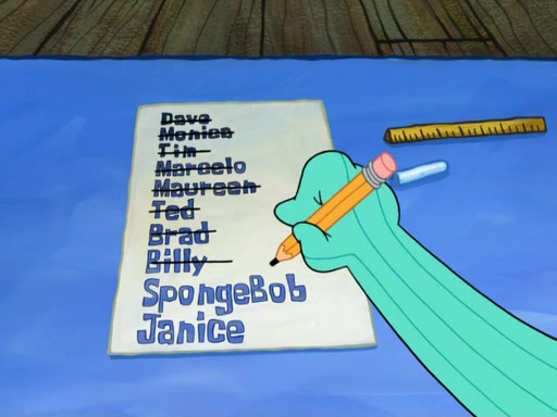 SpongeBob then realizes that he has stage fright. The customers start fighting for the single order as Squidward is beaten up after trying to give a customer his order, which makes SpongeBob even more frightened. It then cuts to Patrick's rock. Patrick opens it, only to realize he has the wrong rock, but SpongeBob pulls him in. SpongeBob asks Patrick to help him practice by listening to his speech. SpongeBob has to practice if he wants to pass then he has to give the report.