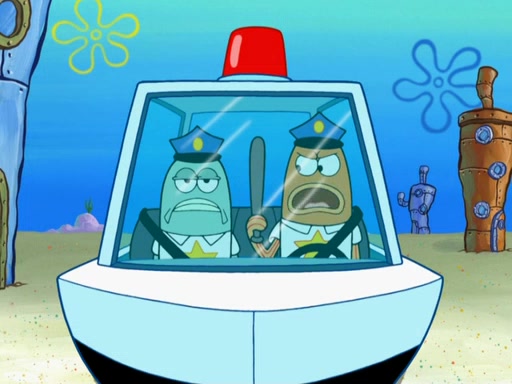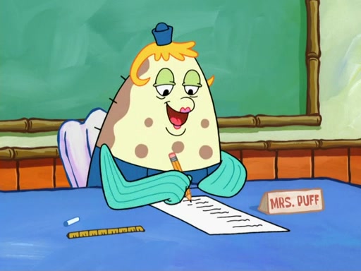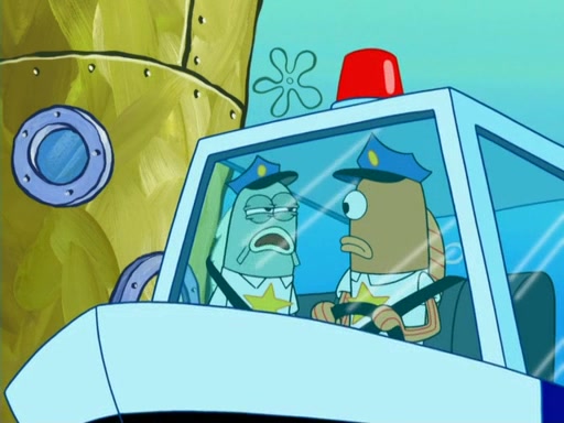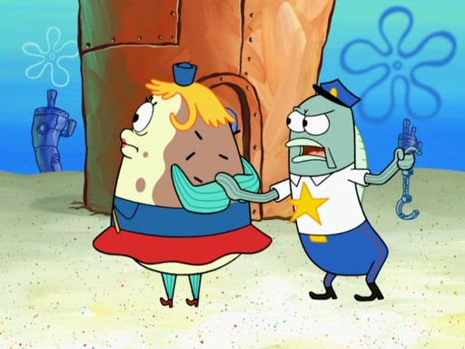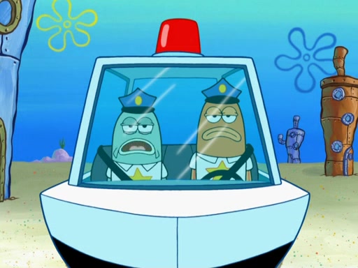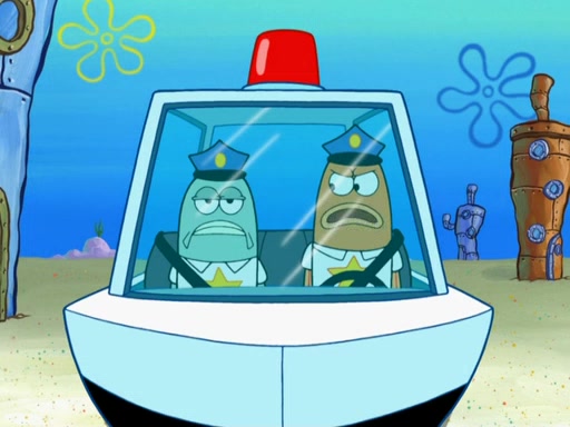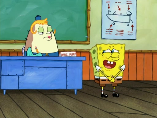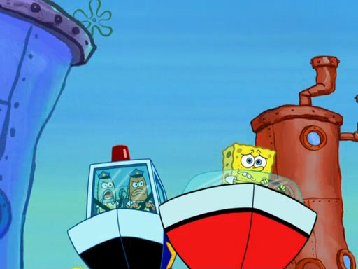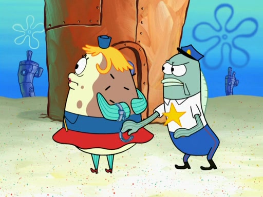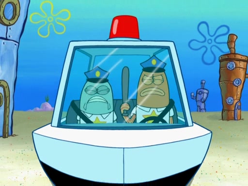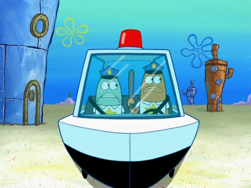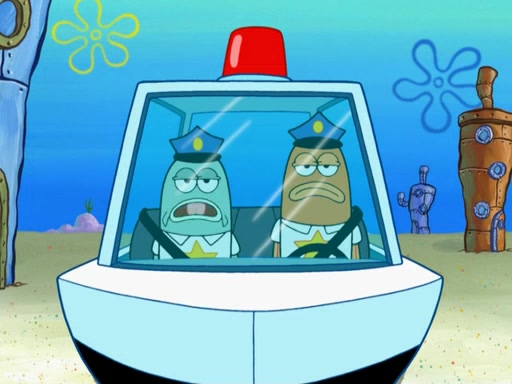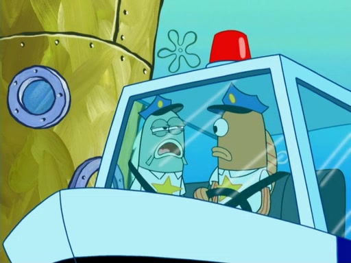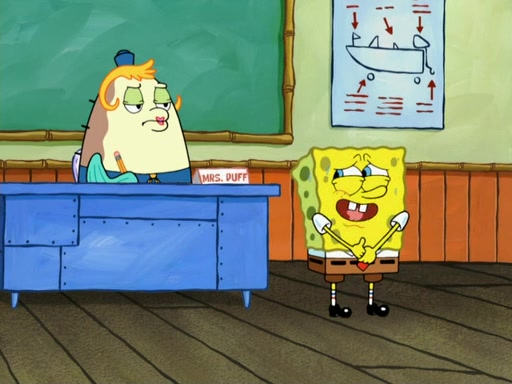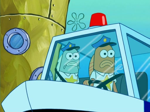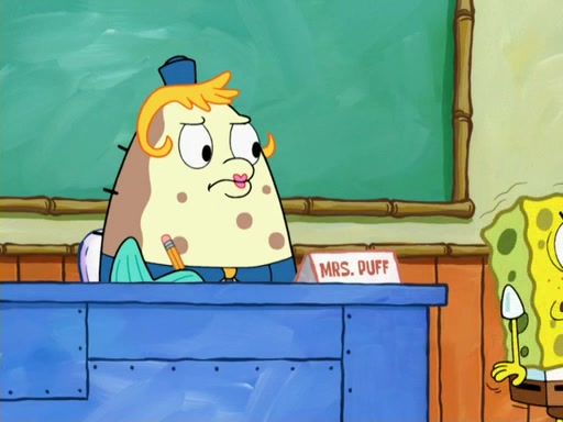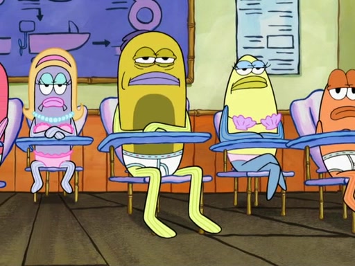 The next day, SpongeBob is next to do his oral report and then he gets nervous. SpongeBob asks Patrick for the googles, and he gives SpongeBob the goggles while accidentally breaking them in the process after polishing them. Billy tells him to hurry up, and SpongeBob sees him in his underwear, he is relieved. Then he sees the whole class in their underwear. SpongeBob begins laughing and Mrs. Puff asks him why. SpongeBob sees Mrs. Puff's underwear and starts laughing even harder. SpongeBob begins reading his report but the goggles malfunction and everybody's underwear start angrily telling him to get on with it. SpongeBob screams and runs away, he drives Mrs. Puff's boat, and Patrick and Mrs. Puff chase him. The police notice that SpongeBob ran a stop light and chase after him. SpongeBob then crashes through various buildings. The police question if he knows about "boating safety" and SpongeBob goes through a long explanation of "boating safety." The police start crying and say it is beautiful. Mrs. Puff says that SpongeBob will have to go to jail and she will not have to teach him anymore. The police explain how she was the one who taught him and they take her to jail, much to her dismay. After this, Patrick is happy that SpongeBob conquered his fear, and puts on the underwear glasses. He notices that SpongeBob's underwear starts talking angrily to him, so he runs away, ending the episode.
