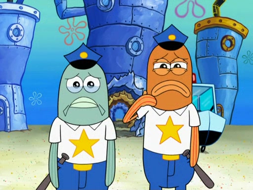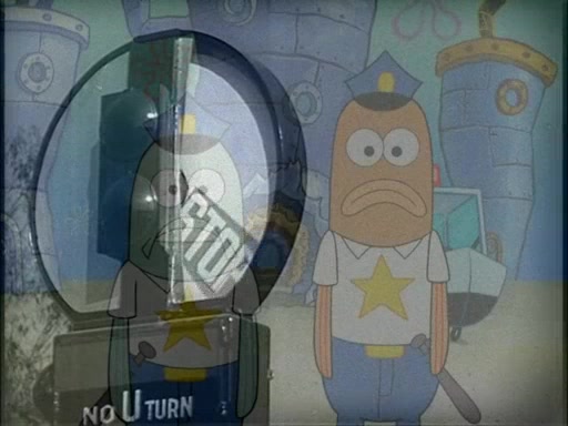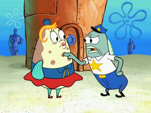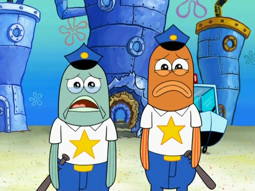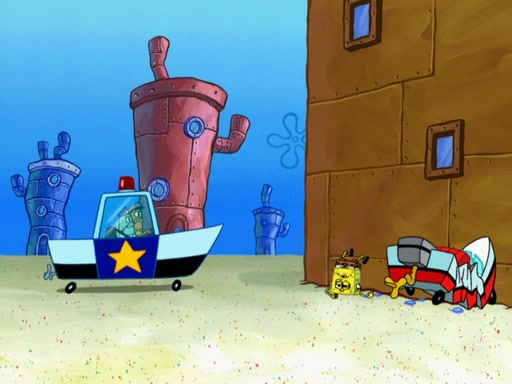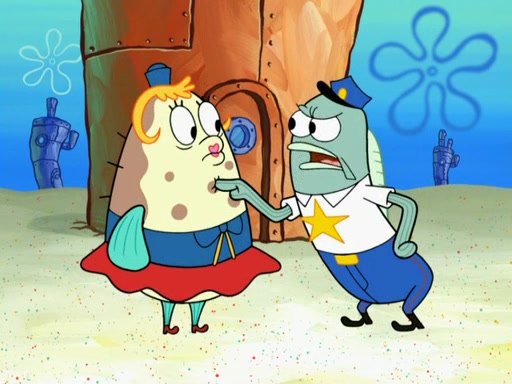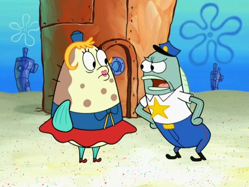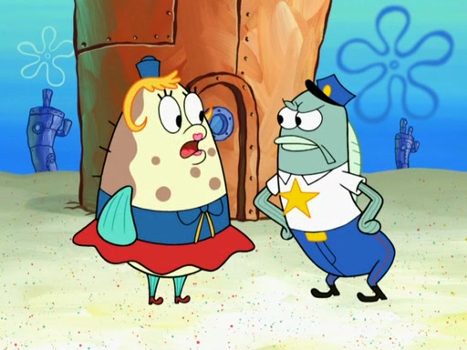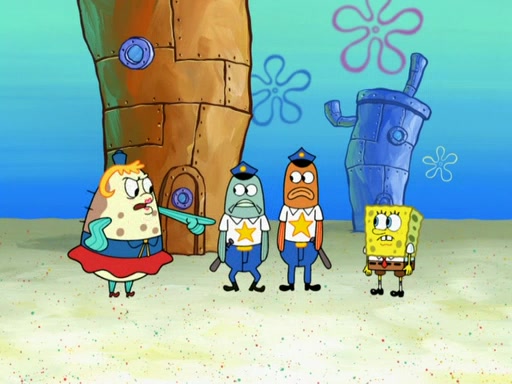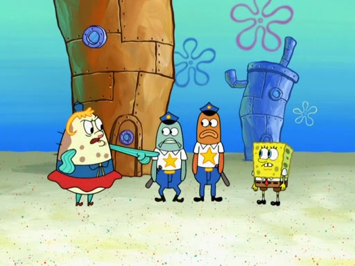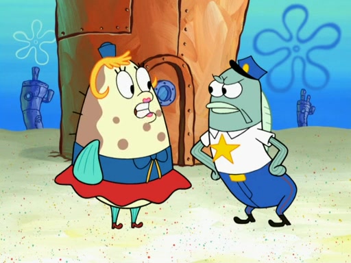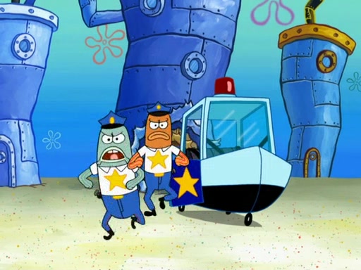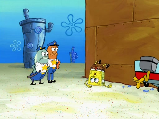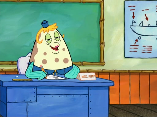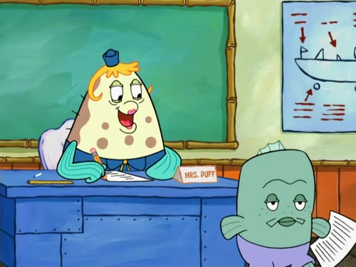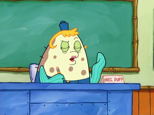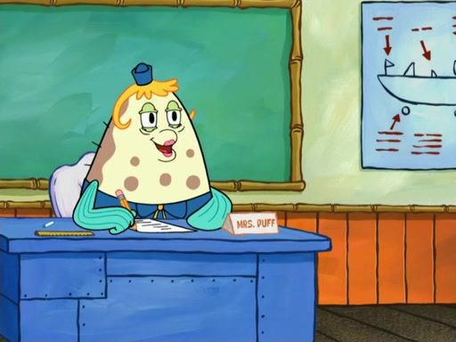The next day, SpongeBob is next to do his oral report and then he gets nervous. SpongeBob asks Patrick for the googles, and he gives SpongeBob the goggles while accidentally breaking them in the process after polishing them. Billy tells him to hurry up, and SpongeBob sees him in his underwear, he is relieved. Then he sees the whole class in their underwear. SpongeBob begins laughing and Mrs. Puff asks him why. SpongeBob sees Mrs. Puff's underwear and starts laughing even harder. SpongeBob begins reading his report but the goggles malfunction and everybody's underwear start angrily telling him to get on with it. SpongeBob screams and runs away, he drives Mrs. Puff's boat, and Patrick and Mrs. Puff chase him. The police notice that SpongeBob ran a stop light and chase after him. SpongeBob then crashes through various buildings. The police question if he knows about "boating safety" and SpongeBob goes through a long explanation of "boating safety." The police start crying and say it is beautiful. Mrs. Puff says that SpongeBob will have to go to jail and she will not have to teach him anymore. The police explain how she was the one who taught him and they take her to jail, much to her dismay. After this, Patrick is happy that SpongeBob conquered his fear, and puts on the underwear glasses. He notices that SpongeBob's underwear starts talking angrily to him, so he runs away, ending the episode.