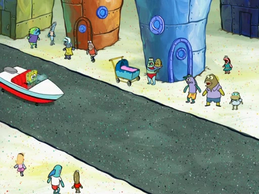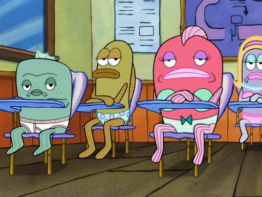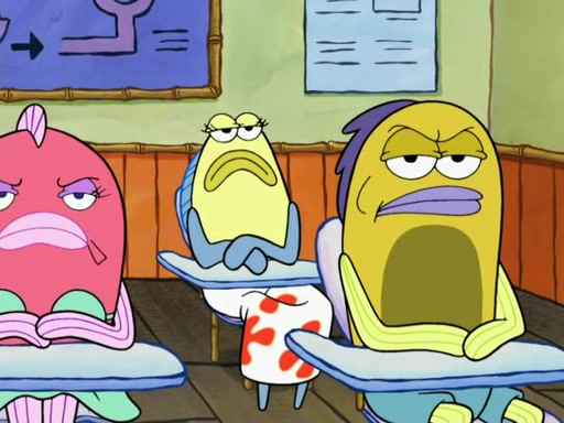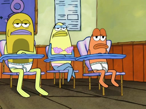At the Krusty Krab, the customers are very hungry. Squidward asks SpongeBob why the orders are not ready yet. SpongeBob explains that he is practicing for an oral report that he must do for boating school. Squidward says that "public speaking" causes stress, but then SpongeBob explains how he is good at "public speaking." SpongeBob then walks out, ready to give the customers their orders, and gets scared because they are acting zombie-like.