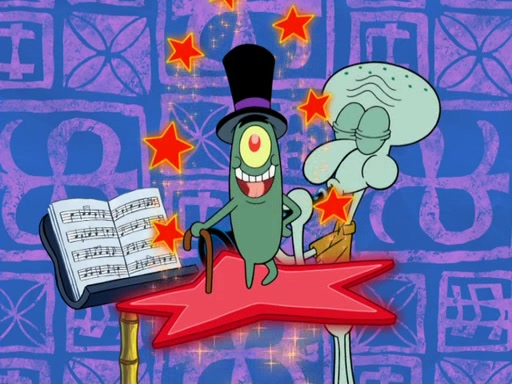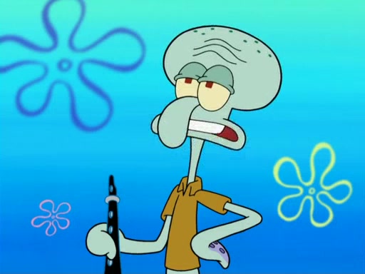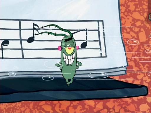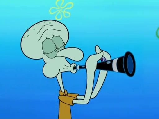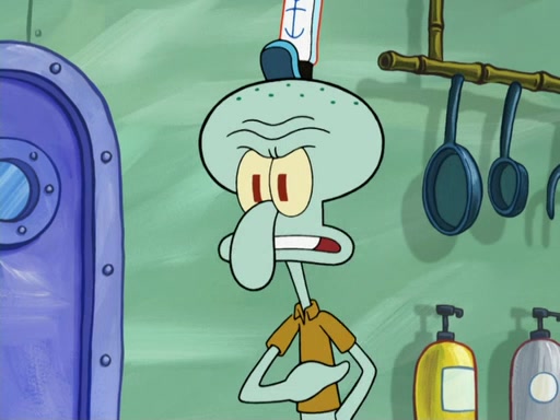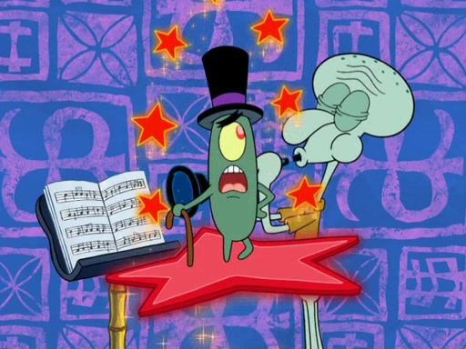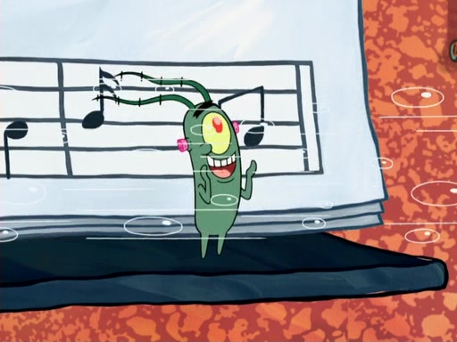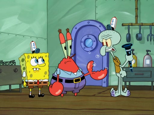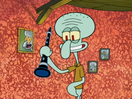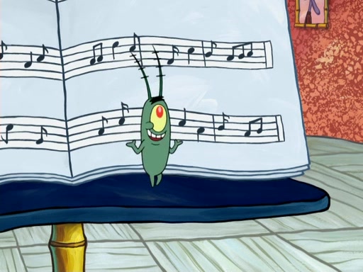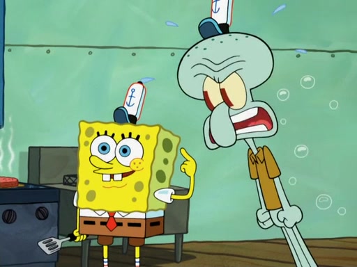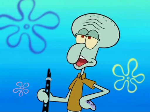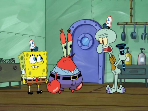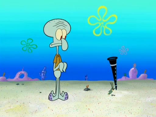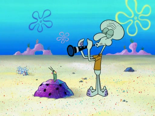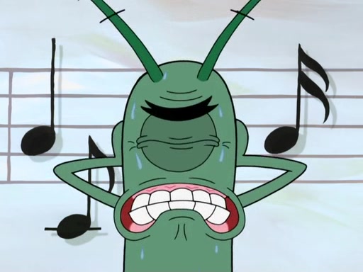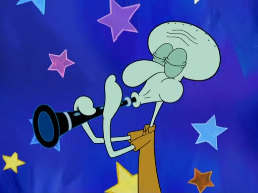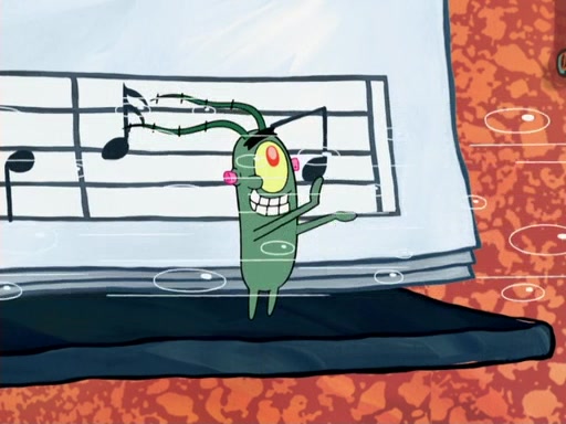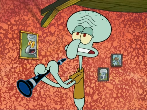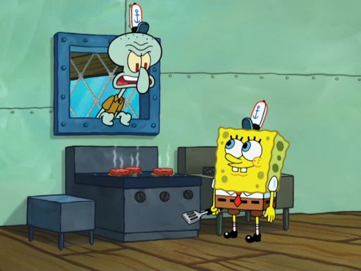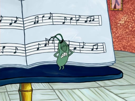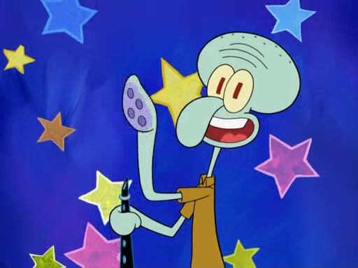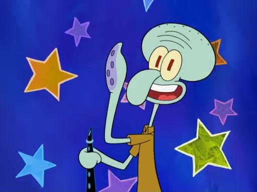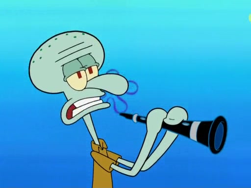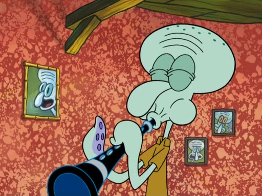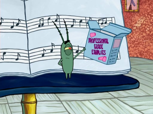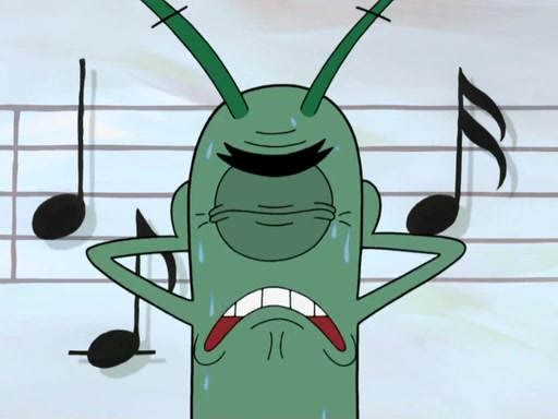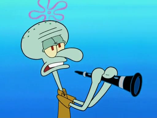 SpongeBob begins singing while cooking the patties. An annoyed Squidward tells him about real music and plays his clarinet, causing the customers to run away from the Krusty Krab. After being told to stop by Mr. Krabs, Squidward goes outside and throws a tantrum, complaining that no one appreciates music. Plankton, watching from the Chum Bucket, believes that Squidward may be the key to the formula.