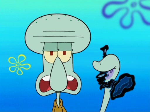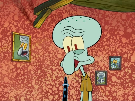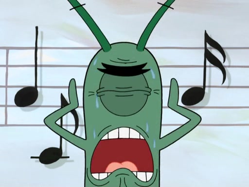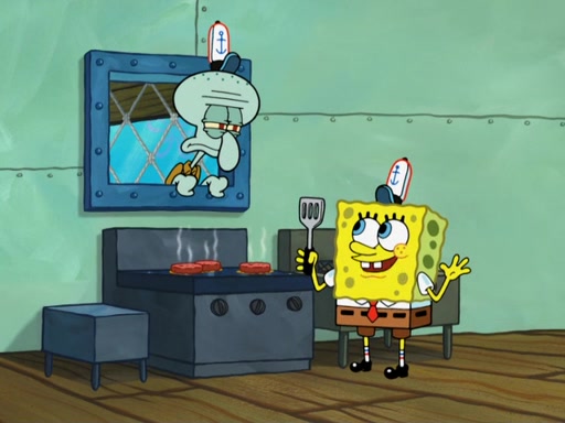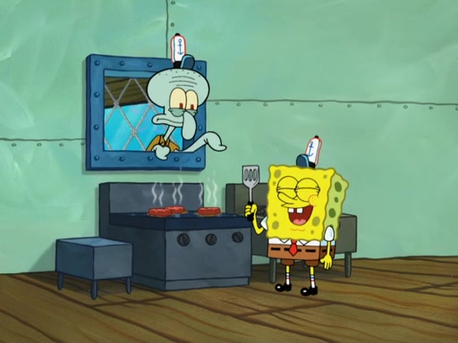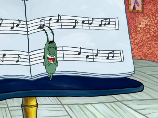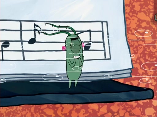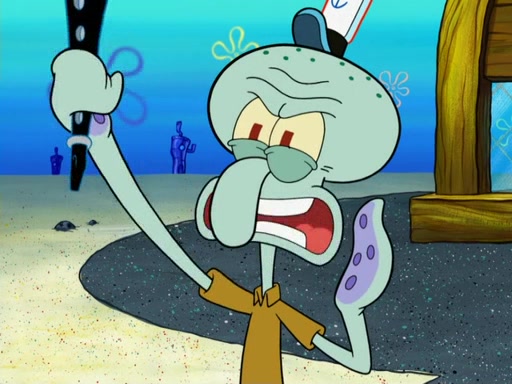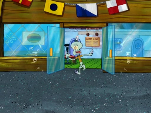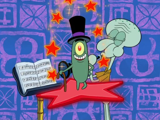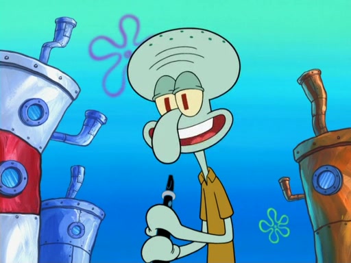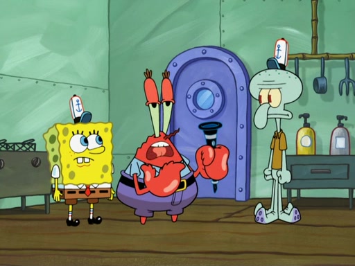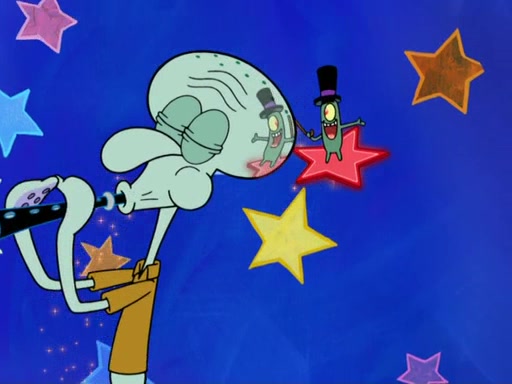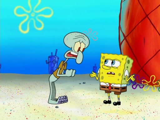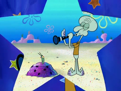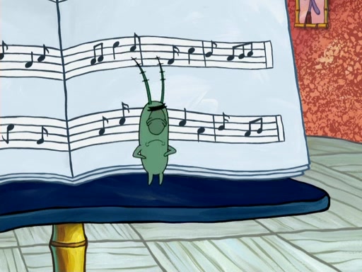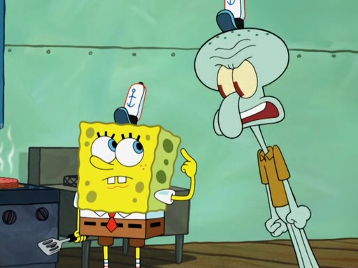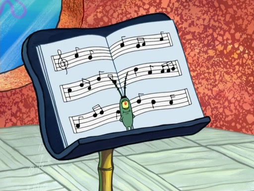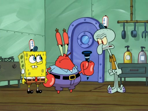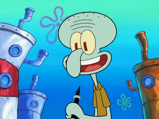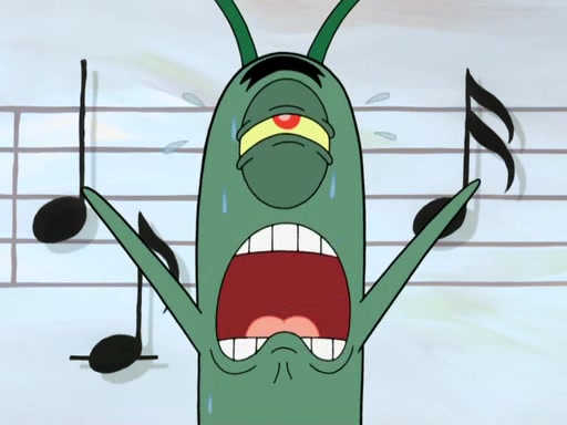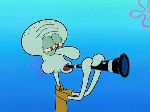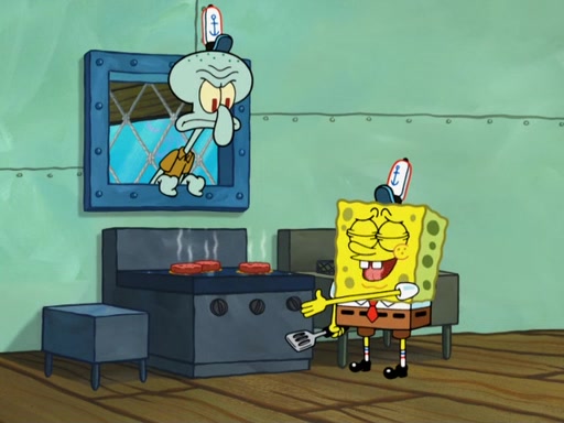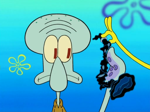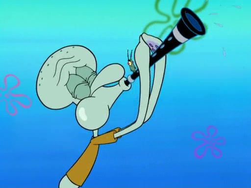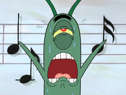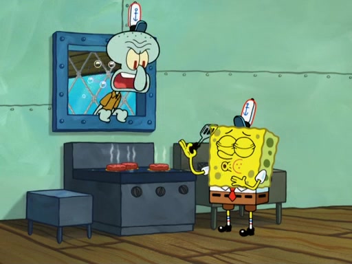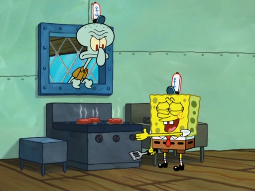 SpongeBob begins singing while cooking the patties. An annoyed Squidward tells him about real music and plays his clarinet, causing the customers to run away from the Krusty Krab. After being told to stop by Mr. Krabs, Squidward goes outside and throws a tantrum, complaining that no one appreciates music. Plankton, watching from the Chum Bucket, believes that Squidward may be the key to the formula.