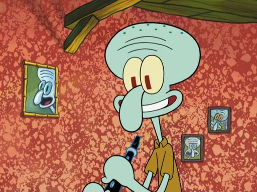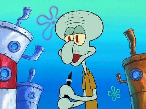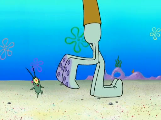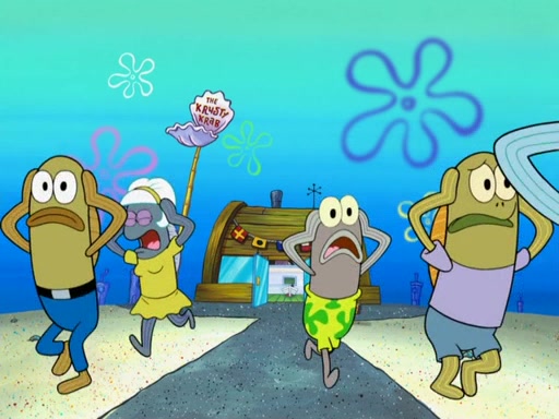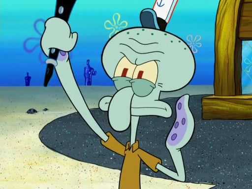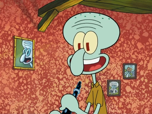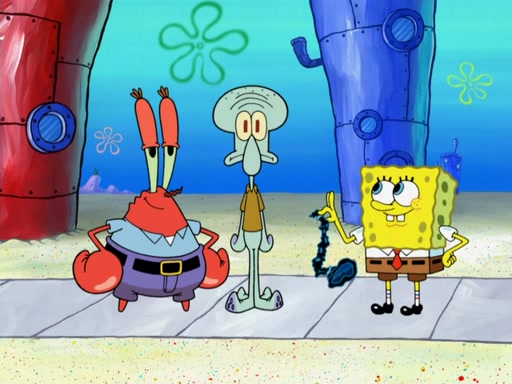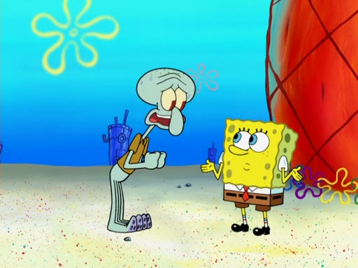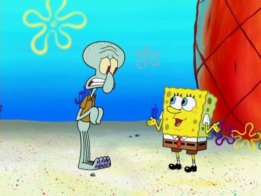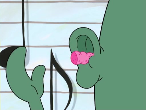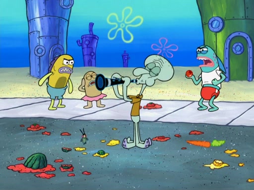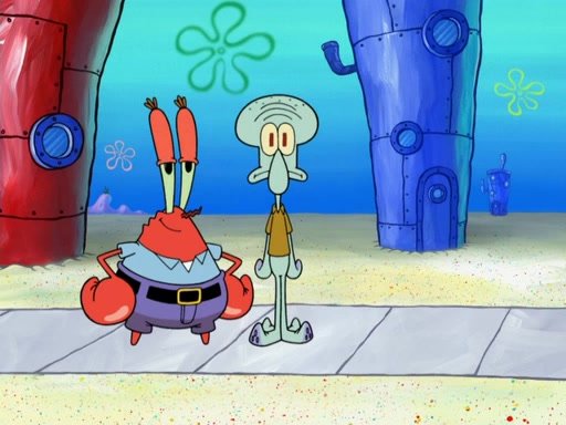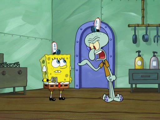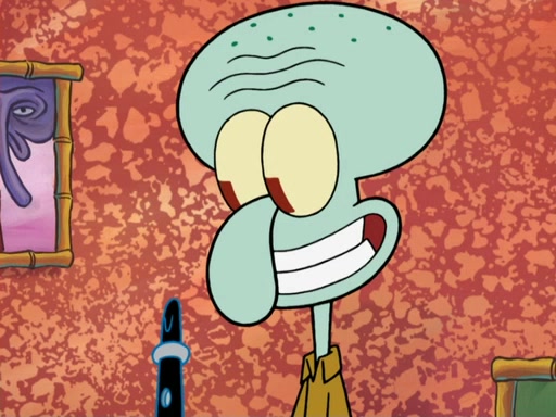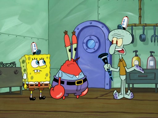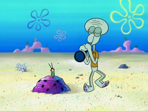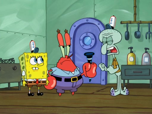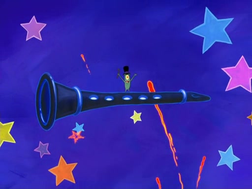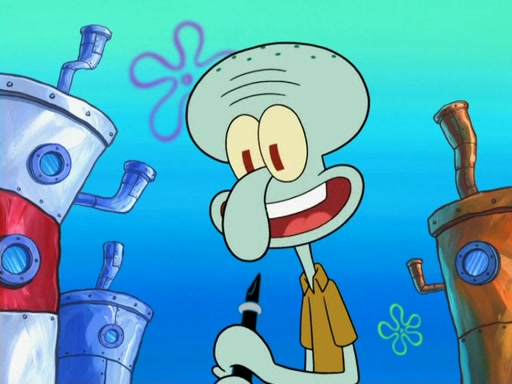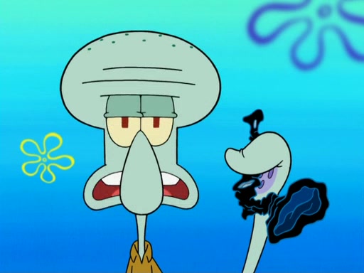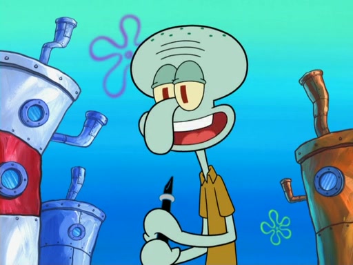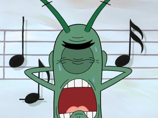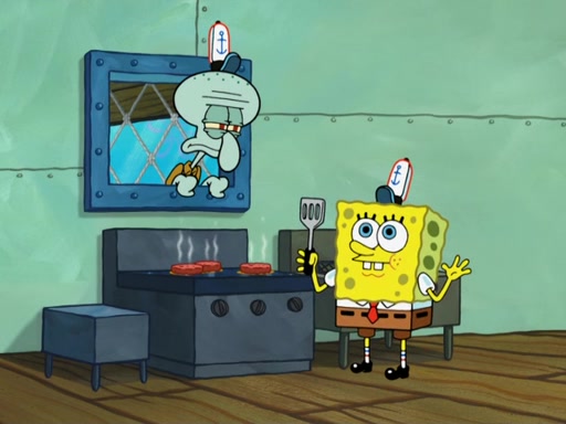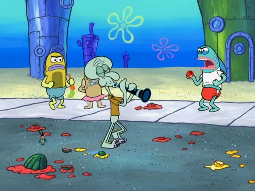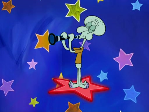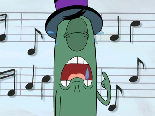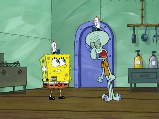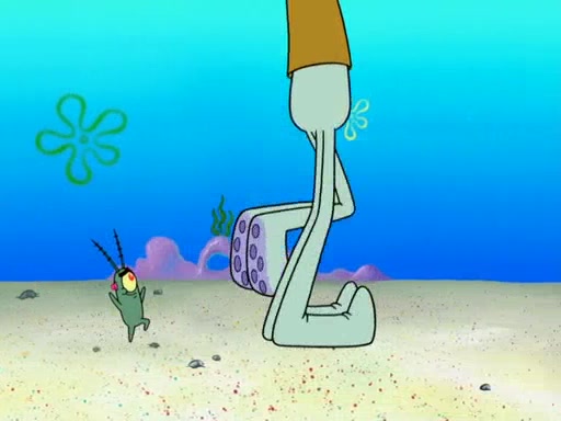 SpongeBob begins singing while cooking the patties. An annoyed Squidward tells him about real music and plays his clarinet, causing the customers to run away from the Krusty Krab. After being told to stop by Mr. Krabs, Squidward goes outside and throws a tantrum, complaining that no one appreciates music. Plankton, watching from the Chum Bucket, believes that Squidward may be the key to the formula.