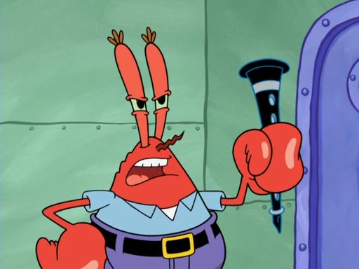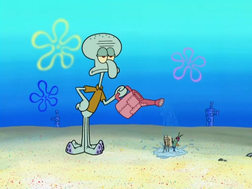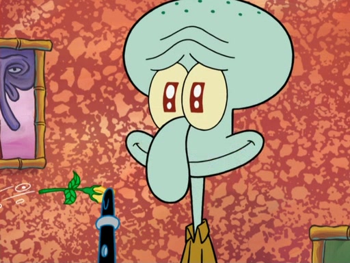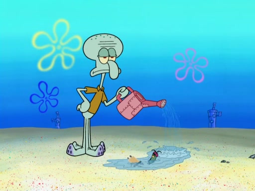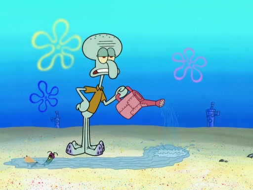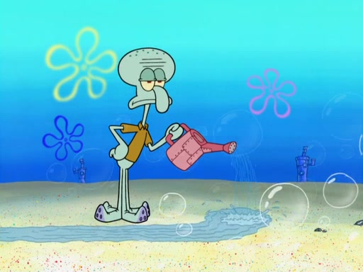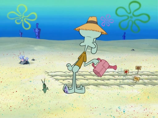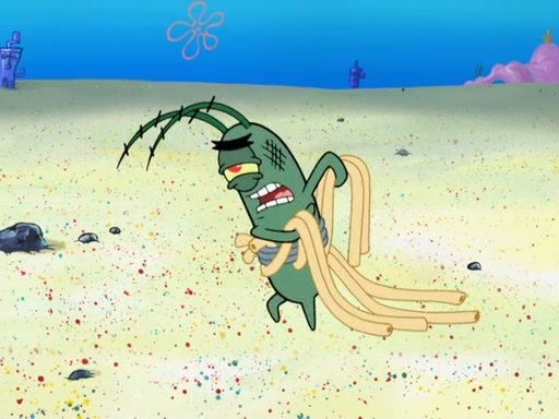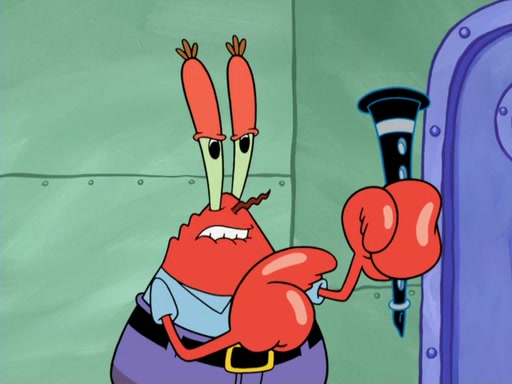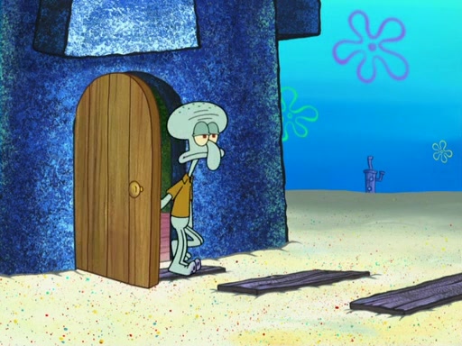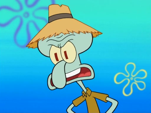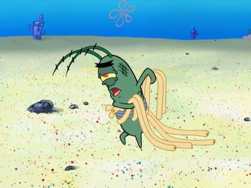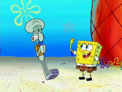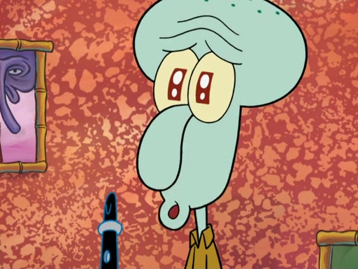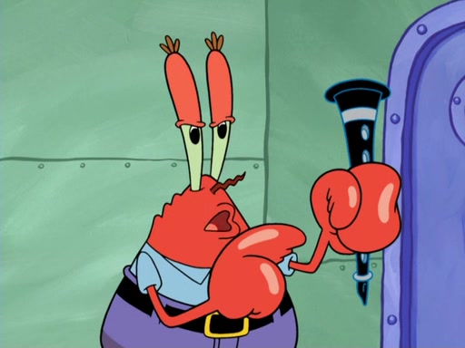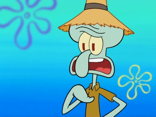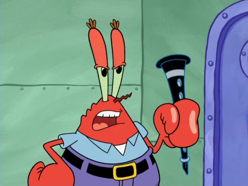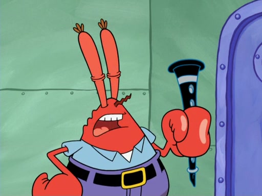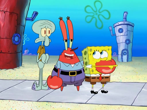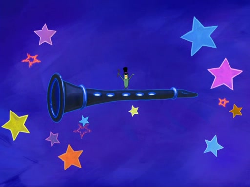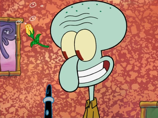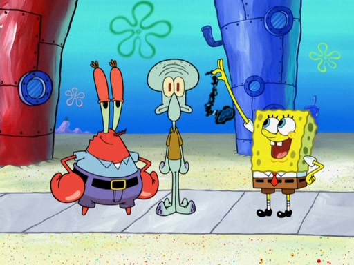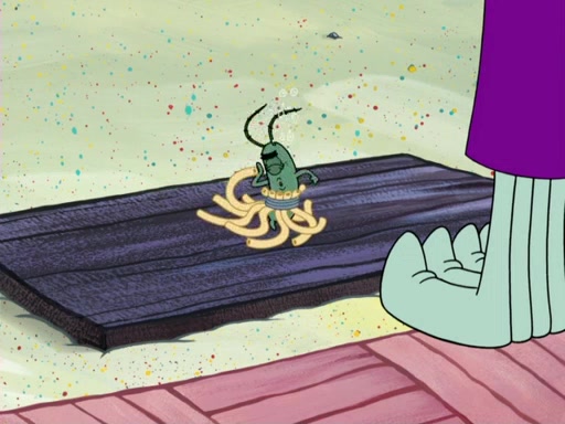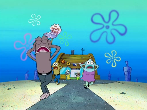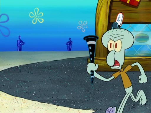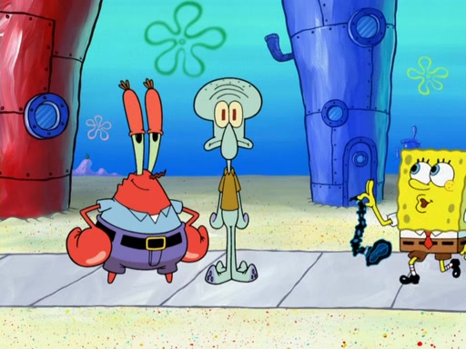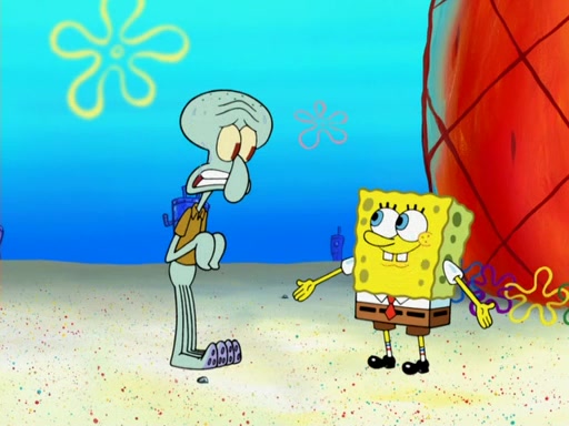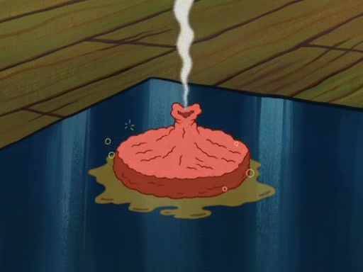SpongeBob begins singing while cooking the patties. An annoyed Squidward tells him about real music and plays his clarinet, causing the customers to run away from the Krusty Krab. After being told to stop by Mr. Krabs, Squidward goes outside and throws a tantrum, complaining that no one appreciates music. Plankton, watching from the Chum Bucket, believes that Squidward may be the key to the formula.