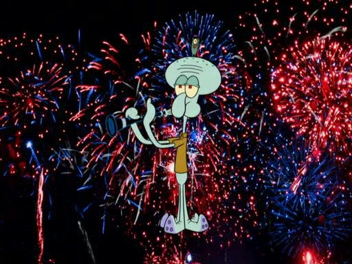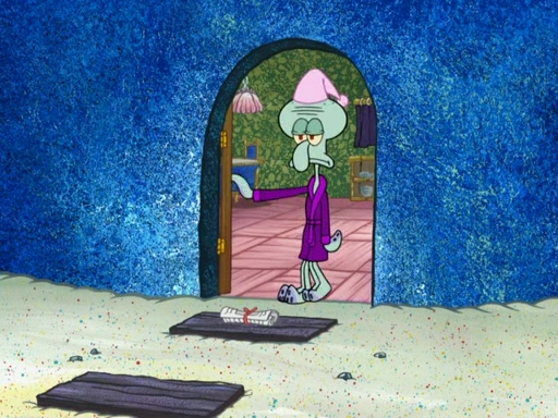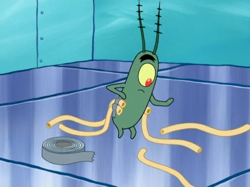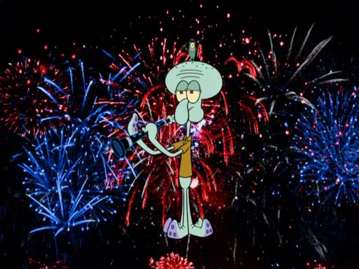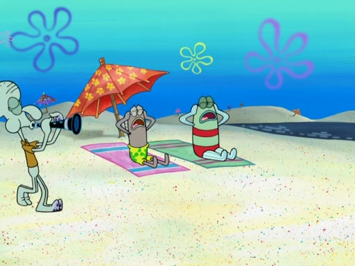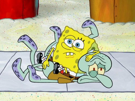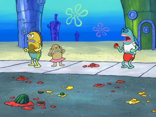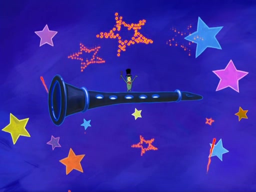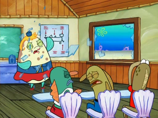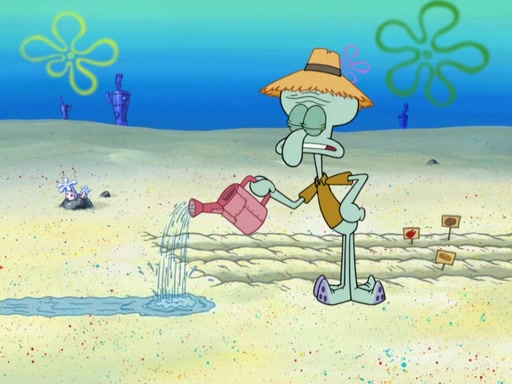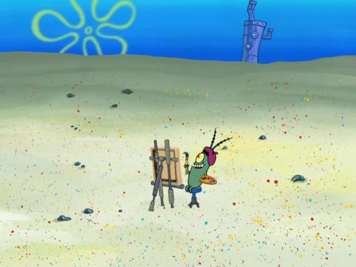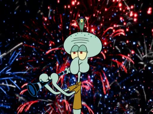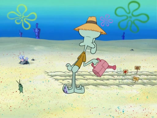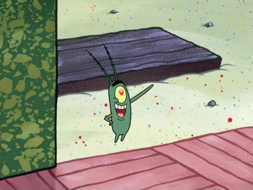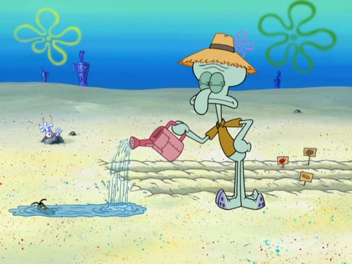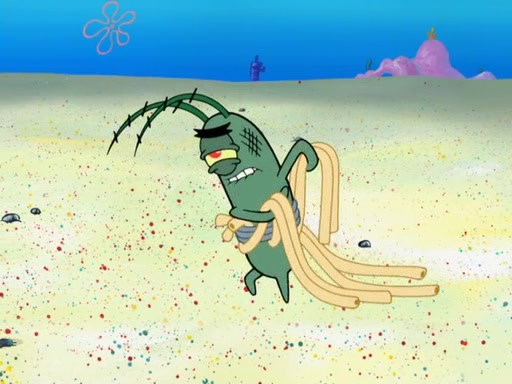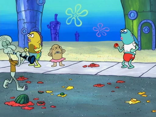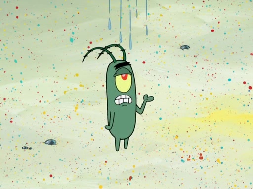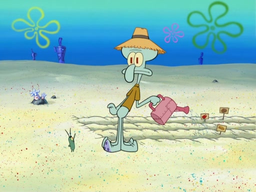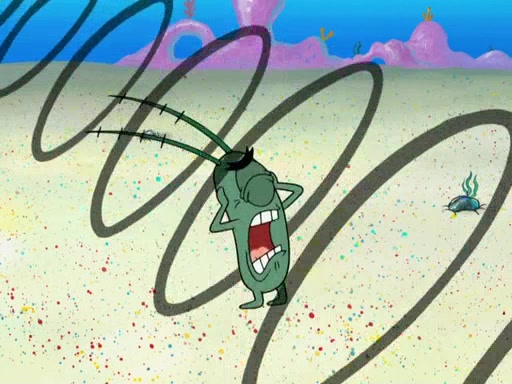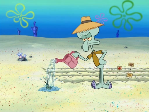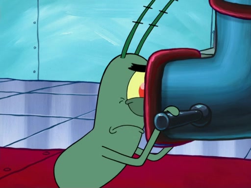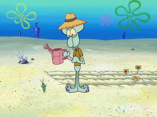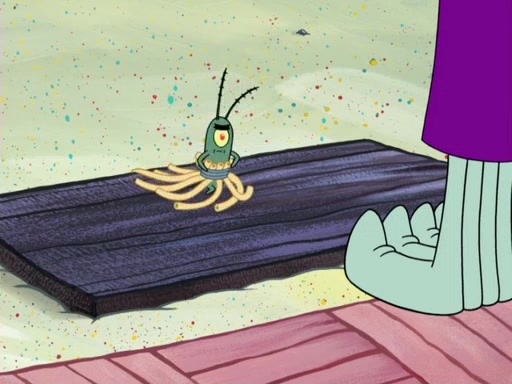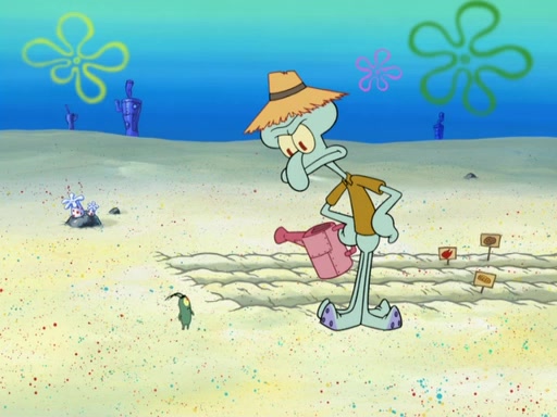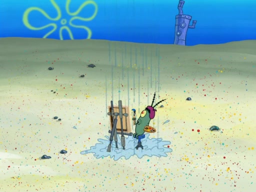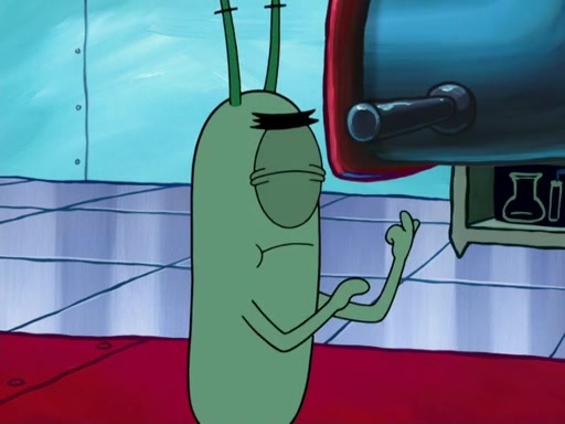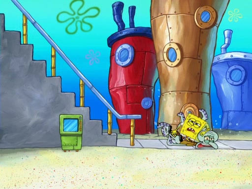 SpongeBob begins singing while cooking the patties. An annoyed Squidward tells him about real music and plays his clarinet, causing the customers to run away from the Krusty Krab. After being told to stop by Mr. Krabs, Squidward goes outside and throws a tantrum, complaining that no one appreciates music. Plankton, watching from the Chum Bucket, believes that Squidward may be the key to the formula.