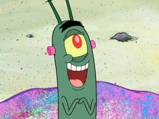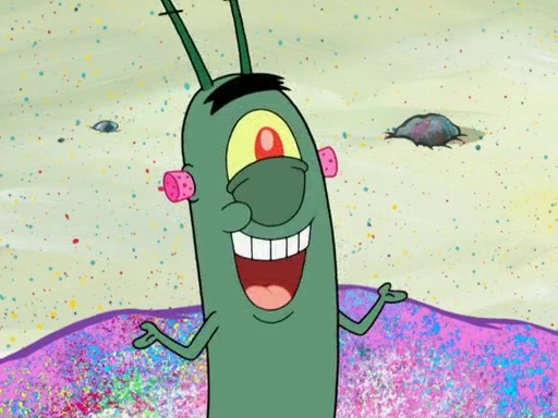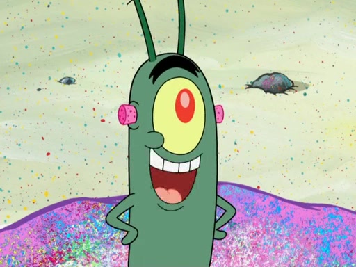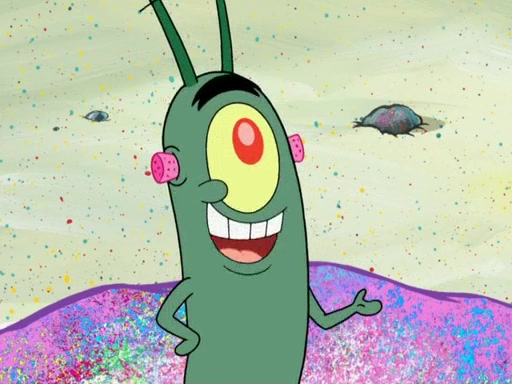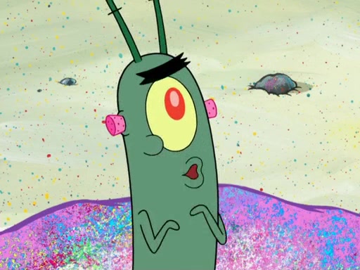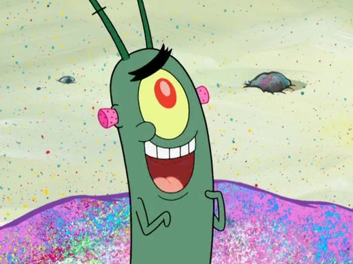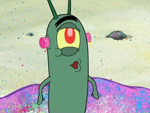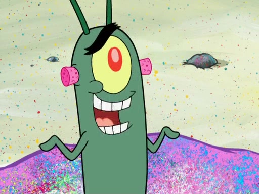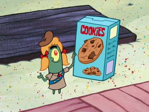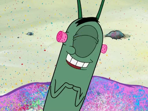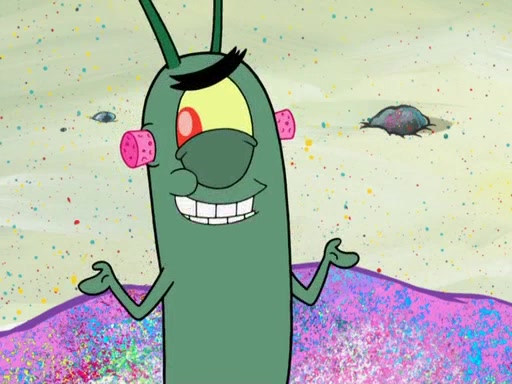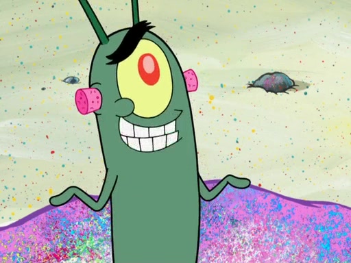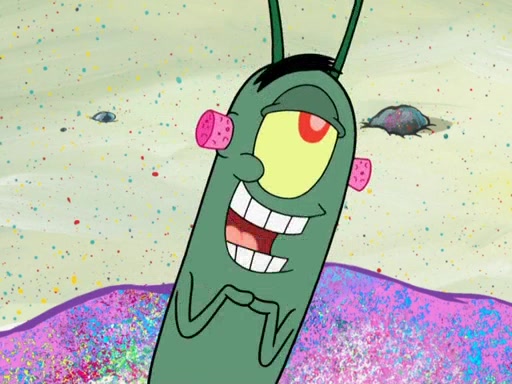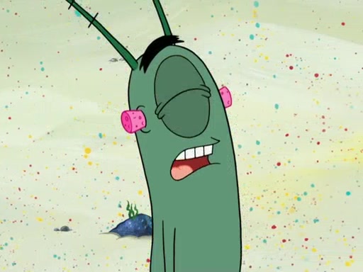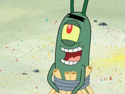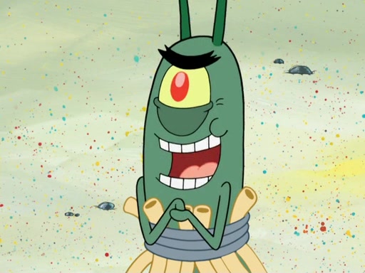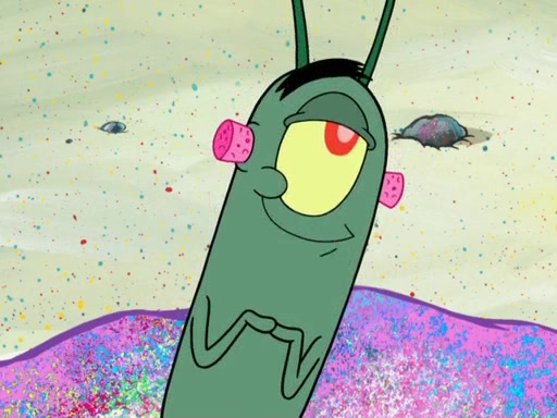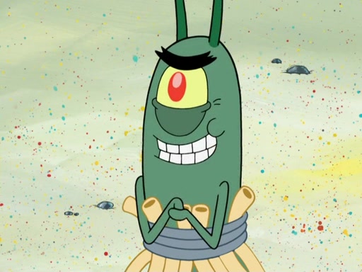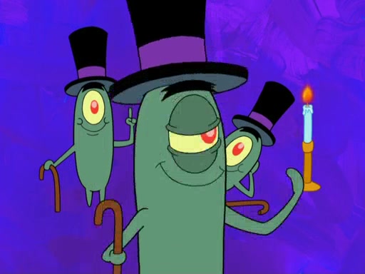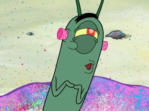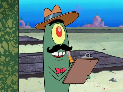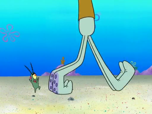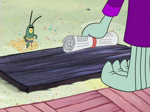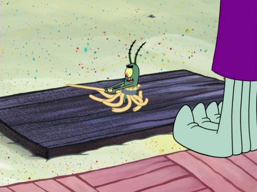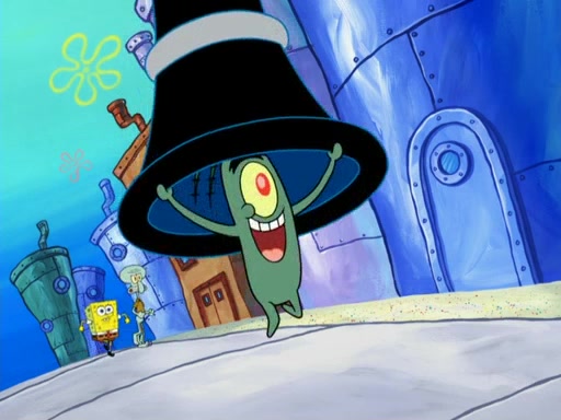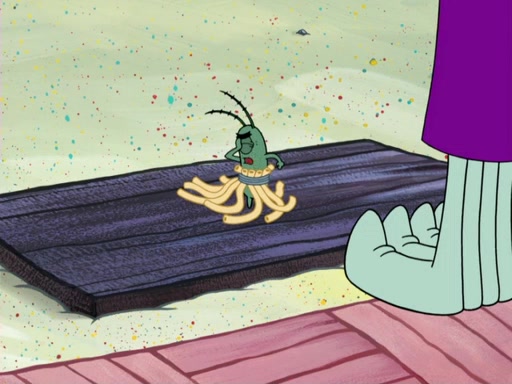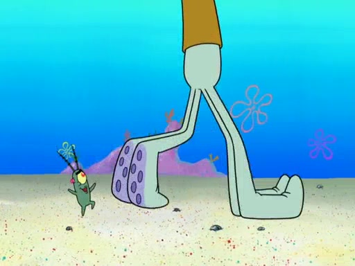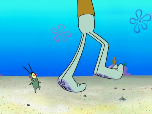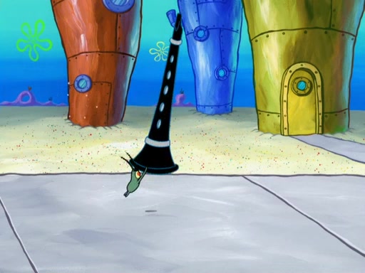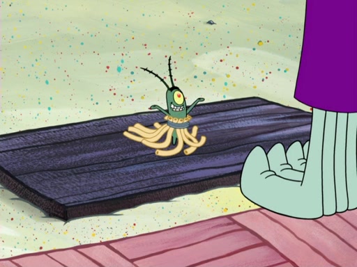 Later, Plankton tries talking to Squidward, but he fails to. Then, he makes several attempts to trick Squidward, among these were pretending to be a girl scout and pretending to be one of Squidward's species, all resulting in Plankton getting the door literally slammed in his face. SpongeBob tells Plankton that he might gain Squidward's friendship if he compliments him on his music. Plankton later meets with Squidward and persuades him to play his clarinet. At first, Plankton is tormented by the awful clarinet music, but then wears earplugs to block the noise and pretends to like the music. Squidward marches across Bikini Bottom, playing his clarinet, and Plankton follows along, while everyone else is tormented by the noise. Plankton also sings a song about Squidward's clarinet music as Squidward plays bad notes on his clarinet.