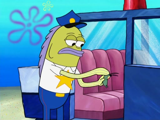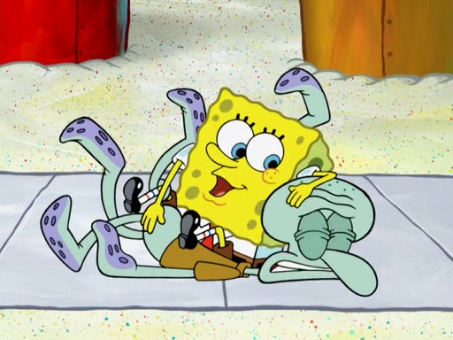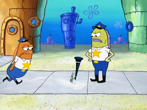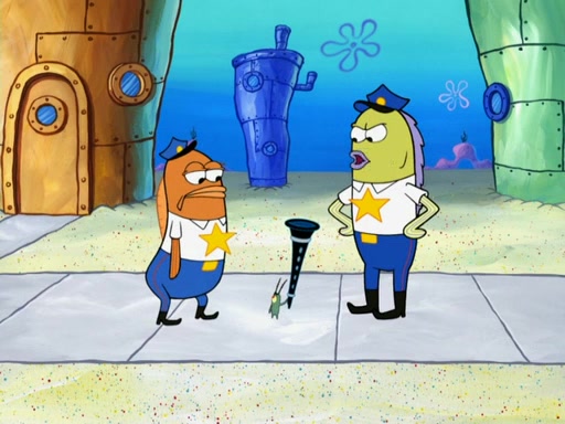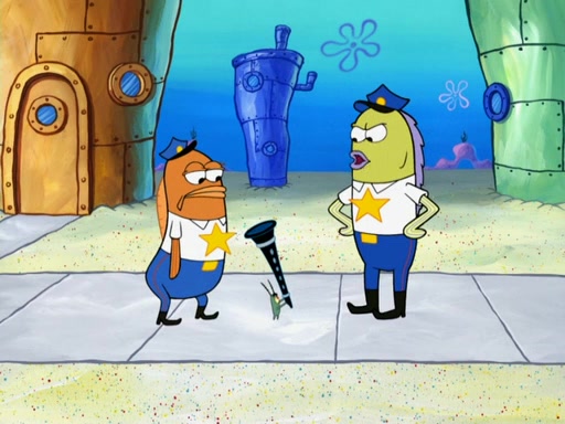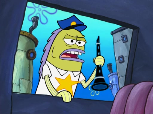 This friendship, however, wouldn't last as Plankton tells Squidward about the secret formula. Squidward tells Plankton that despite 20 years of working, he had never seen the making of a Krabby Patty. Squidward tells Plankton that his music is getting better and plays his clarinet, making windows and mirrors across Bikini Bottom crack and break. Squidward then says that he is going to quit his job and become a full-time musician. Plankton gets so angry that his earplugs come off, and he is once again tortured by the noise. Plankton steals the clarinet, causing Squidward and SpongeBob to chase after him. Plankton is shortly confronted by the police about a "bad music" crime, and is arrested from being the only one to hold the clarinet. As he is driven away, the police car runs over Squidward's clarinet. After SpongeBob retrieves the broken clarinet, Squidward once again "hates people."