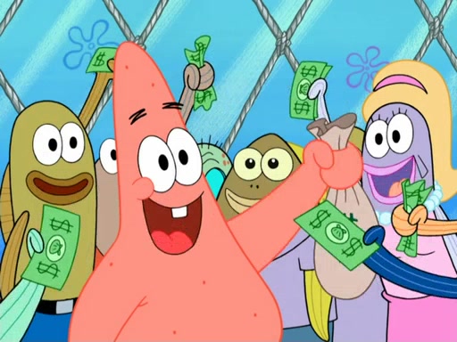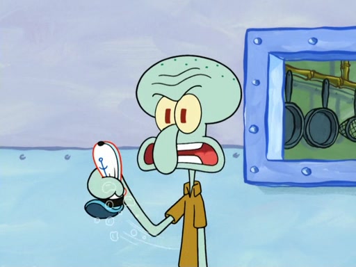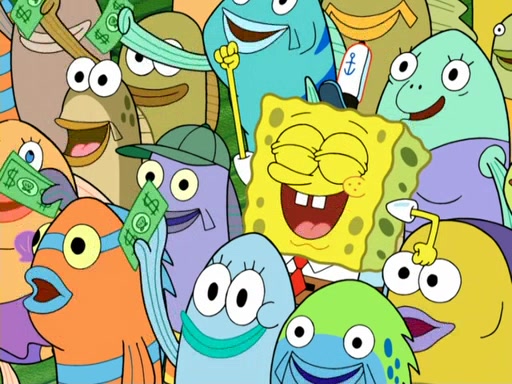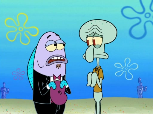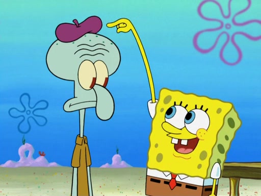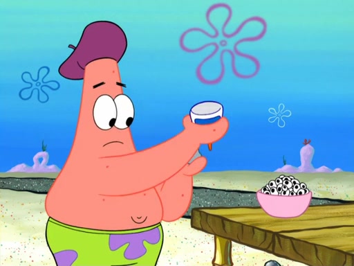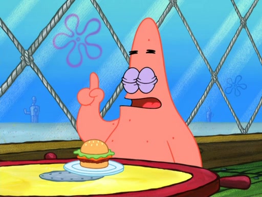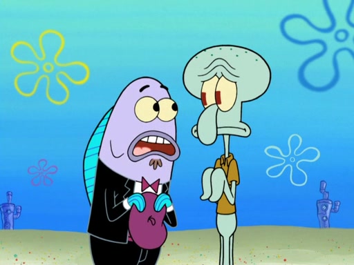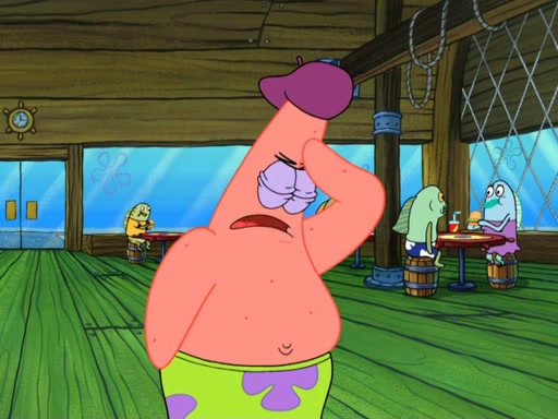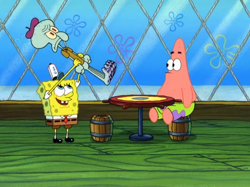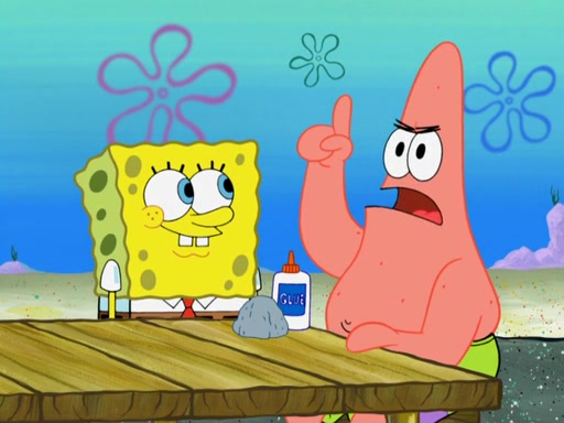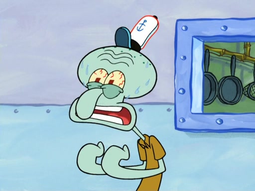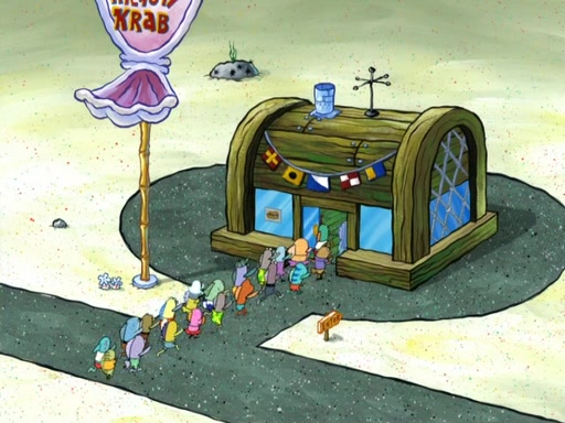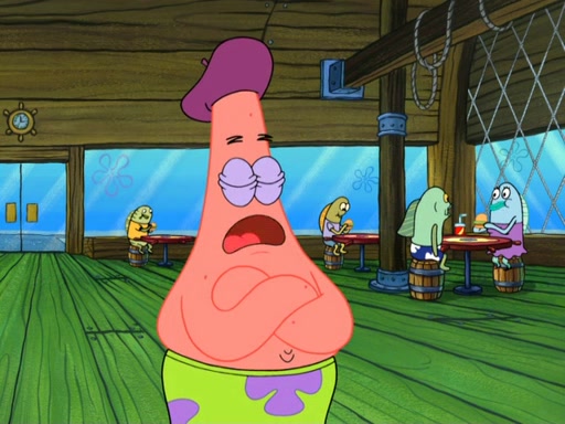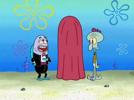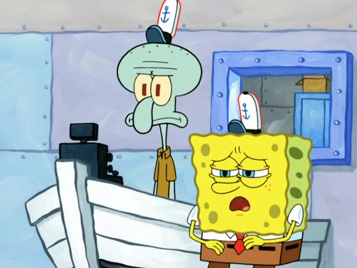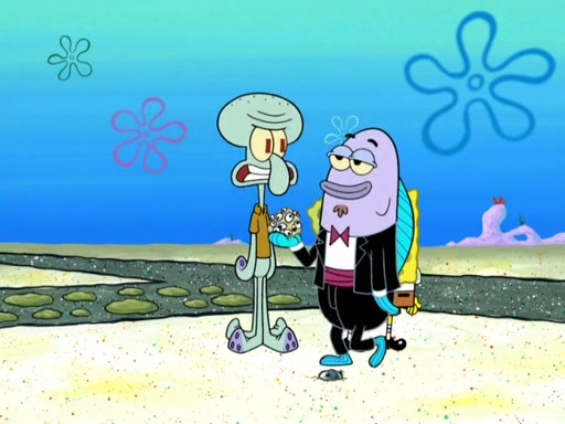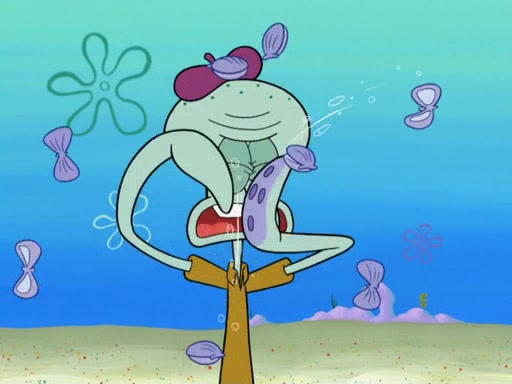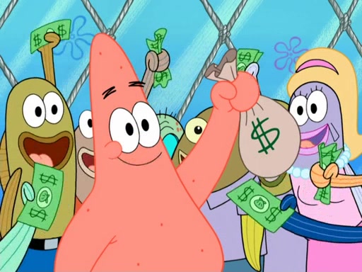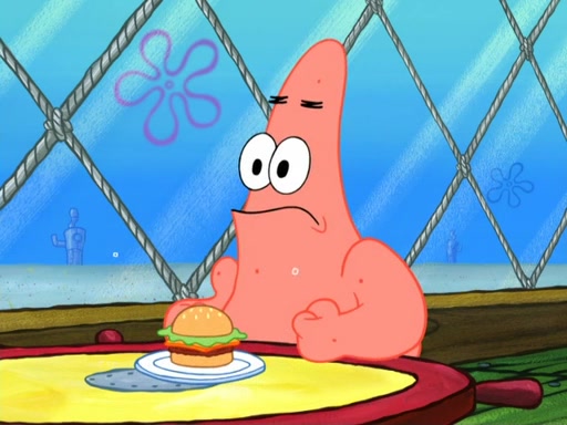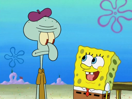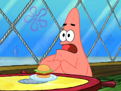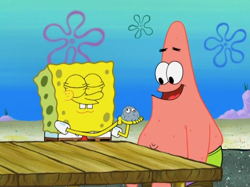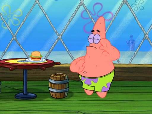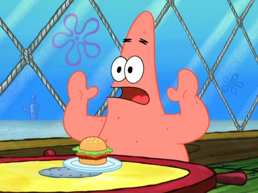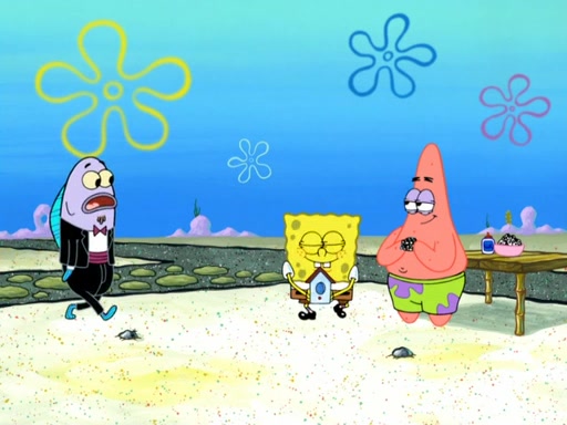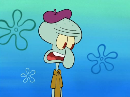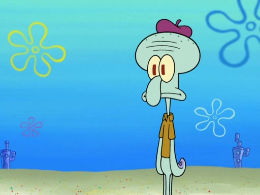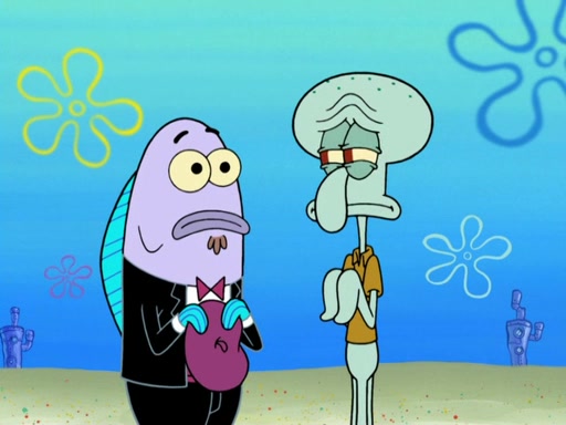 Now, Krabby Patties are sold at $50. The fish who buys the patty said it was not expensive. Then, the fish went to Patrick's stall. Patrick calls his apprentice, which is really Squidward. Squidward puts glue on the fish's patty. Patrick said that Squidward could be an artist one day. Squidward then bursts to tears.