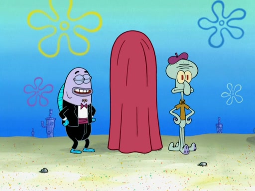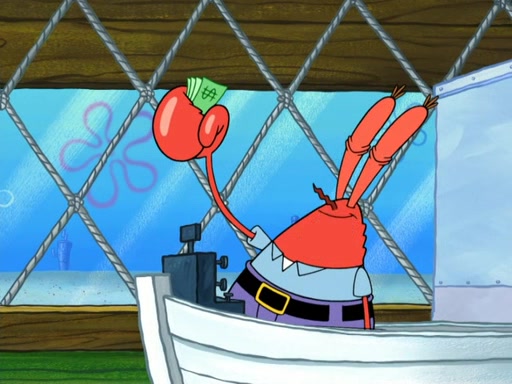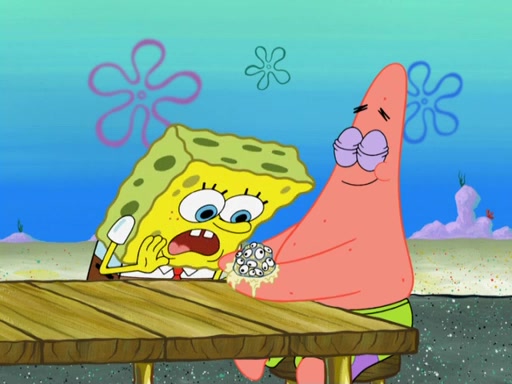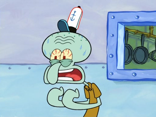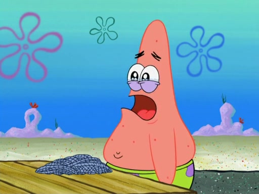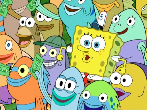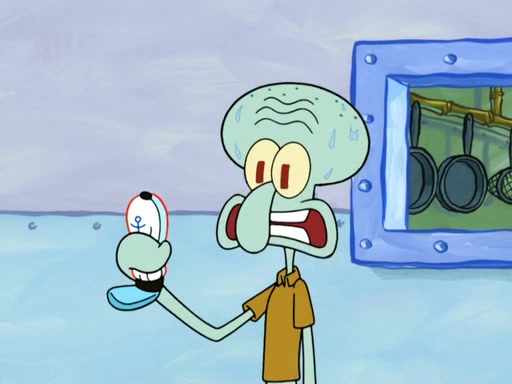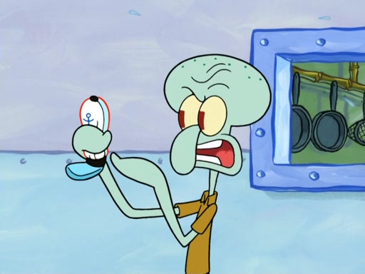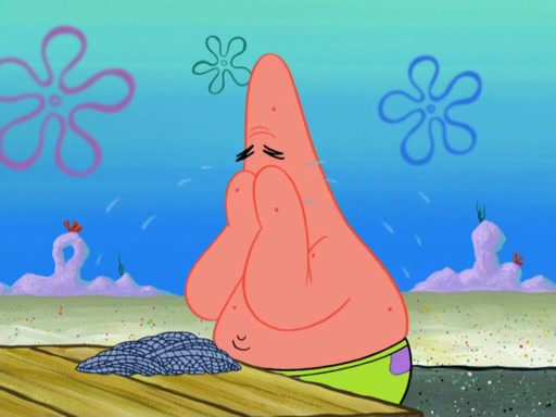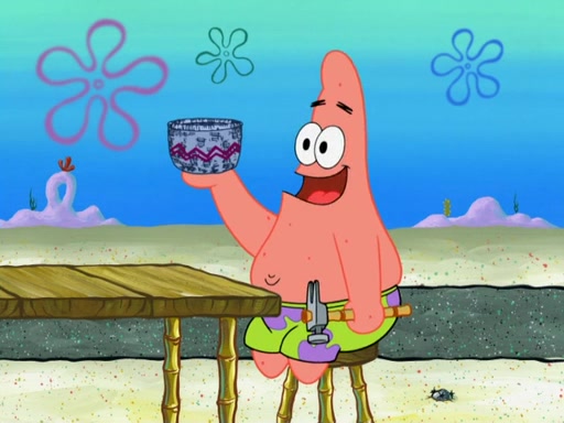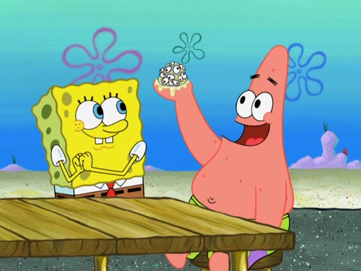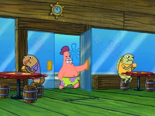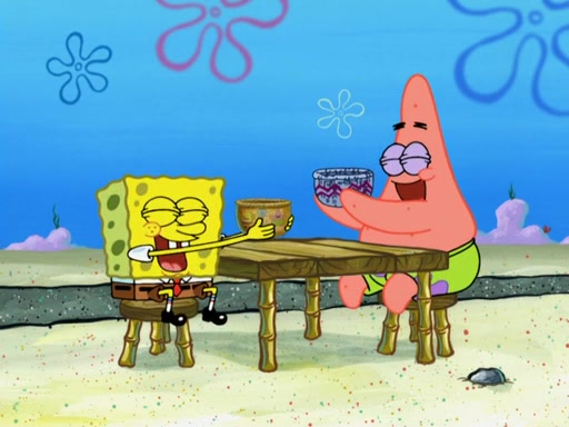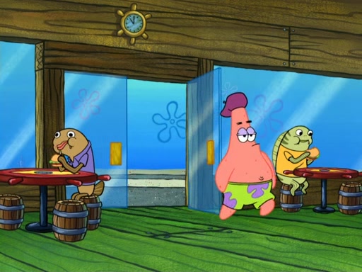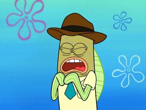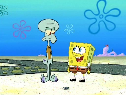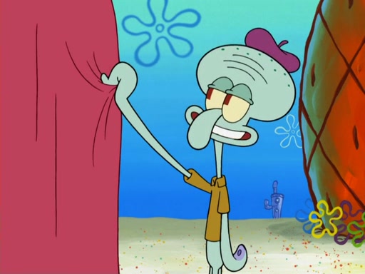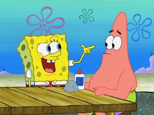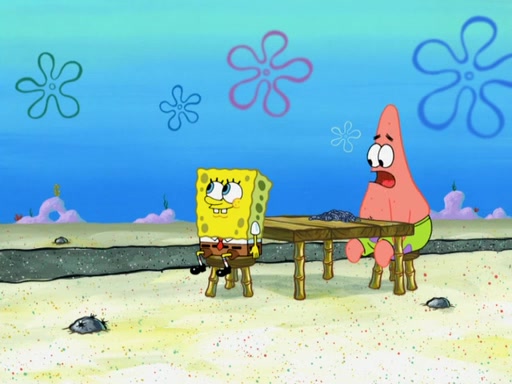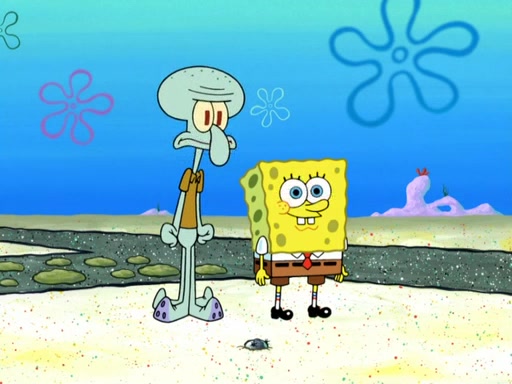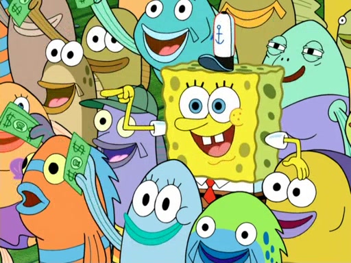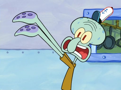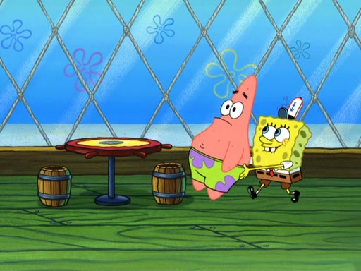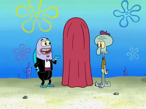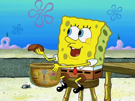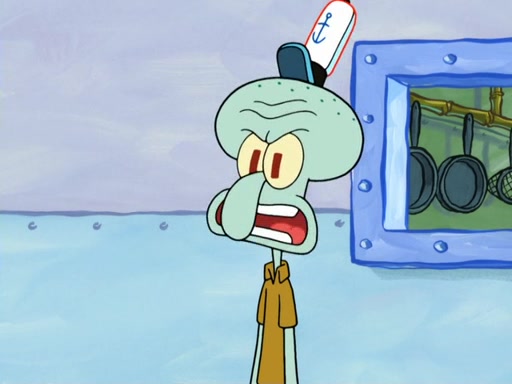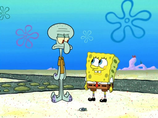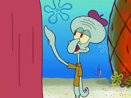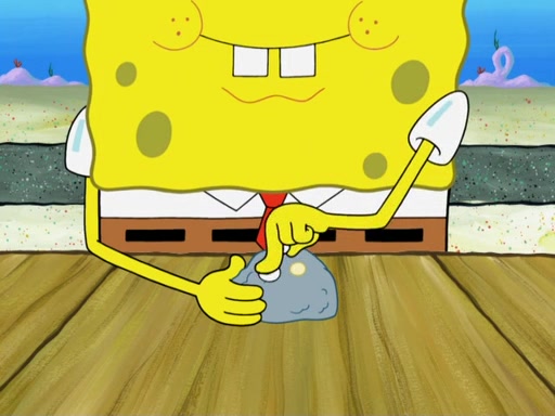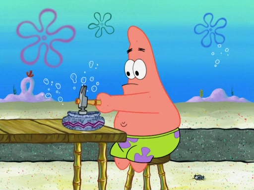 Now, Krabby Patties are sold at $50. The fish who buys the patty said it was not expensive. Then, the fish went to Patrick's stall. Patrick calls his apprentice, which is really Squidward. Squidward puts glue on the fish's patty. Patrick said that Squidward could be an artist one day. Squidward then bursts to tears.