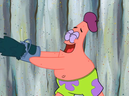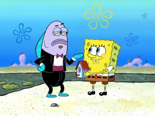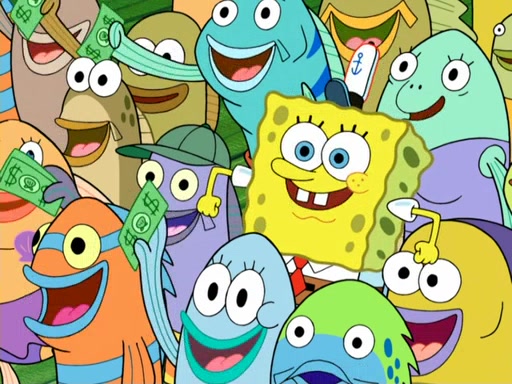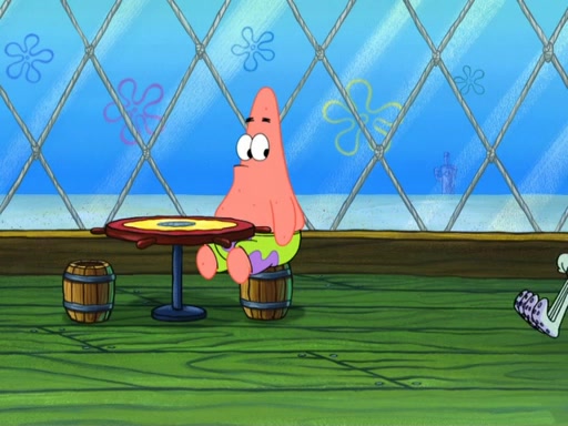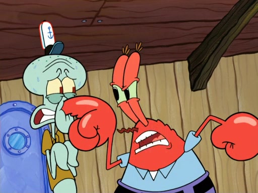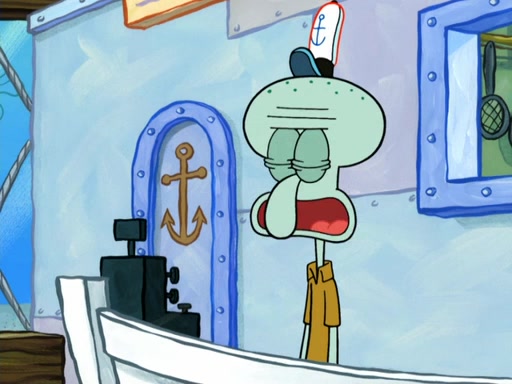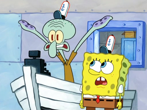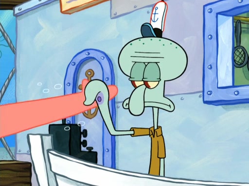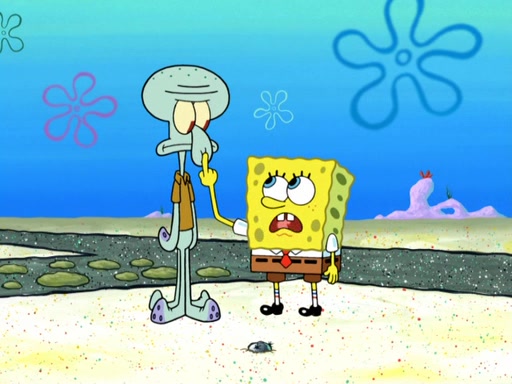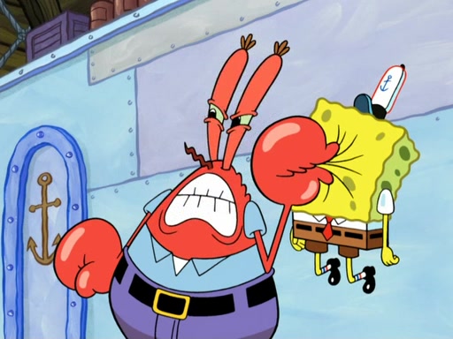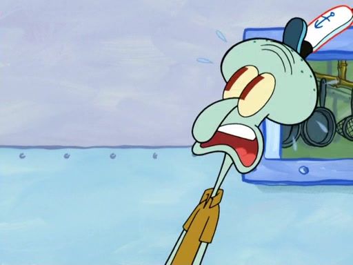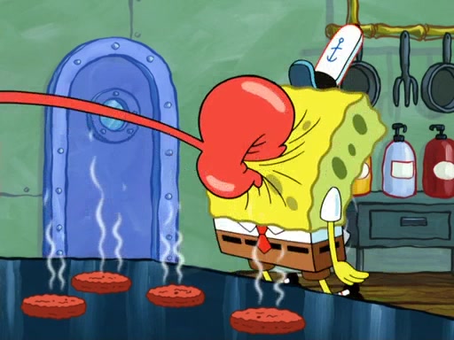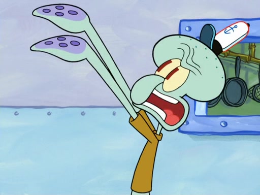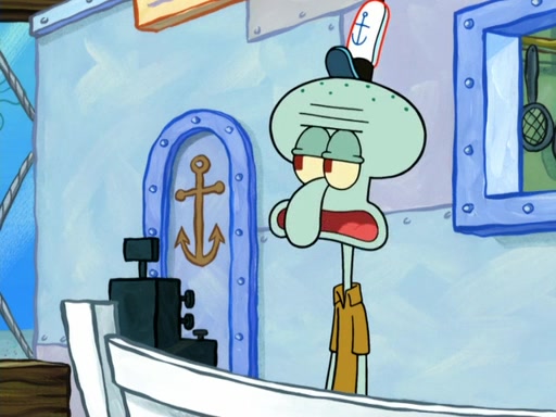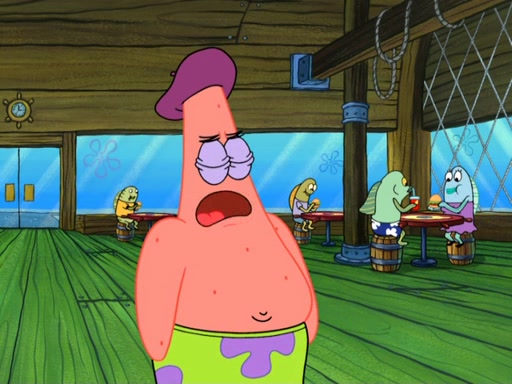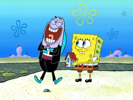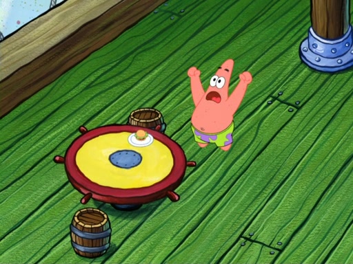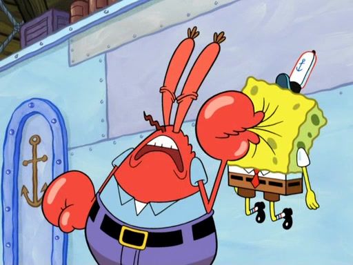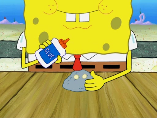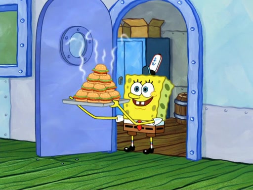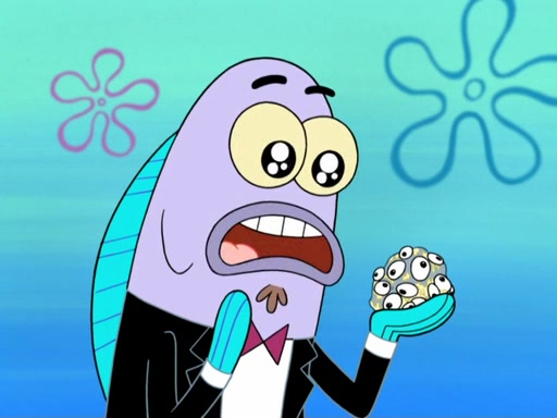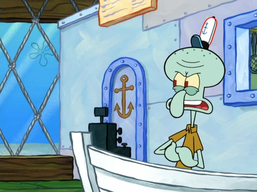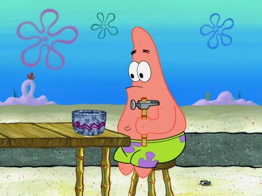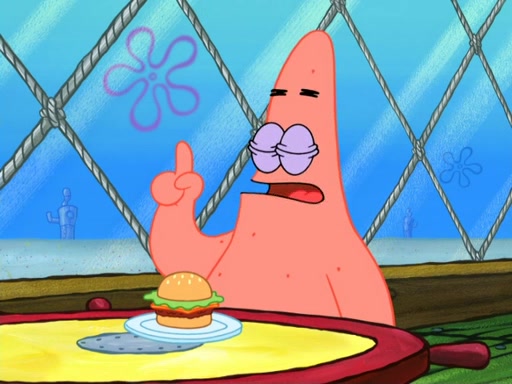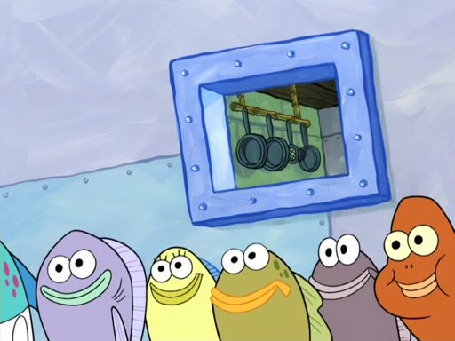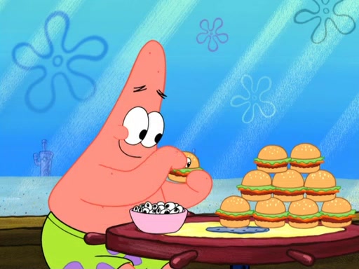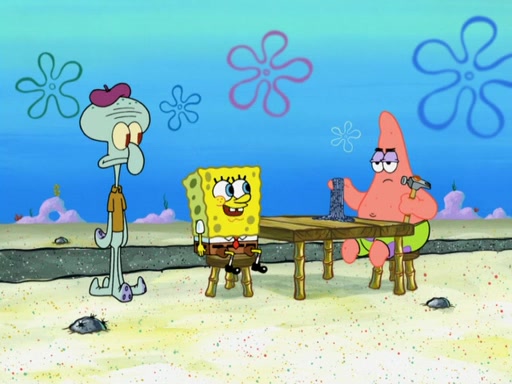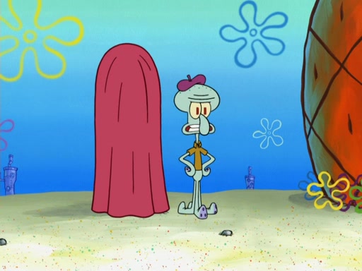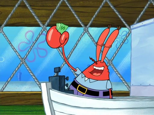 Now, Krabby Patties are sold at $50. The fish who buys the patty said it was not expensive. Then, the fish went to Patrick's stall. Patrick calls his apprentice, which is really Squidward. Squidward puts glue on the fish's patty. Patrick said that Squidward could be an artist one day. Squidward then bursts to tears.