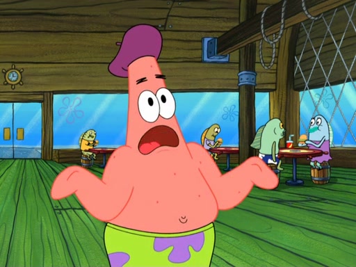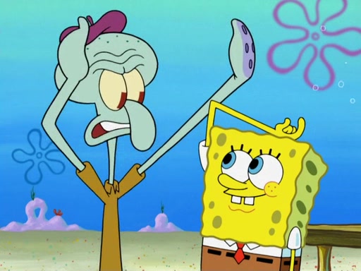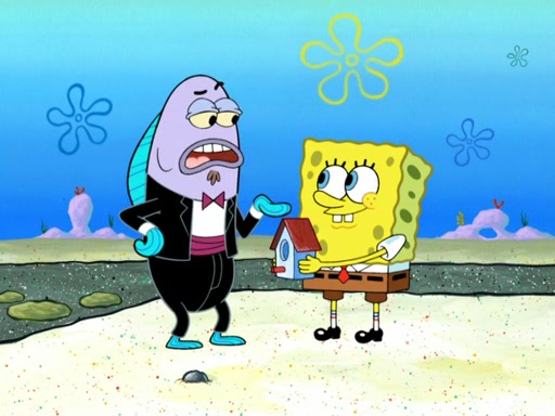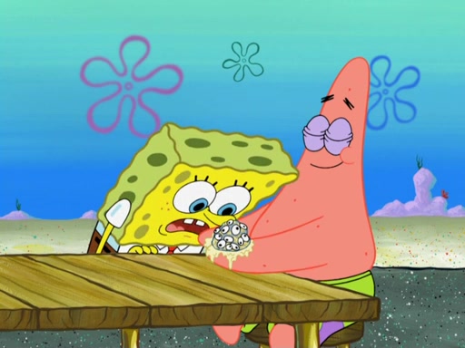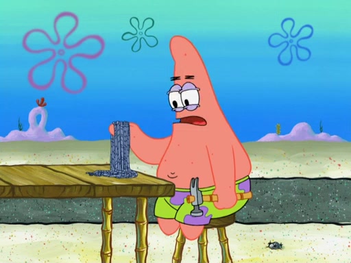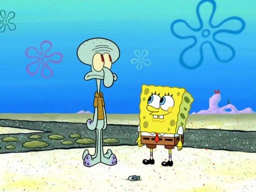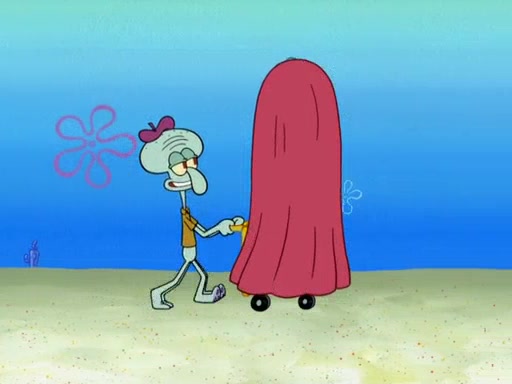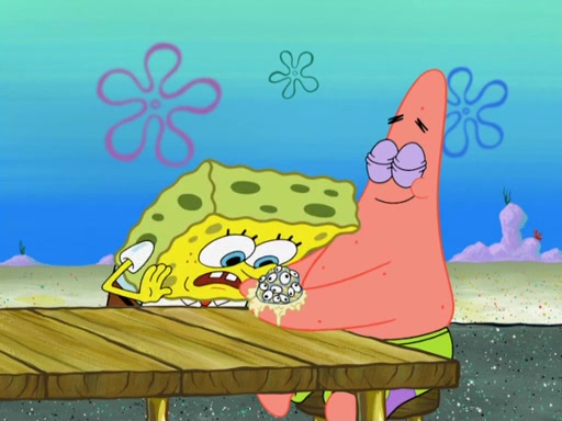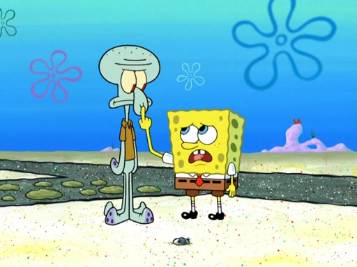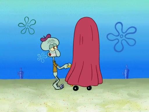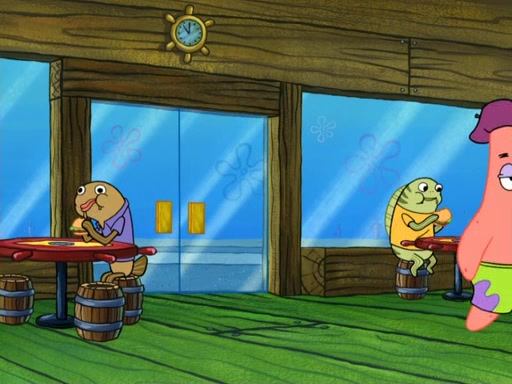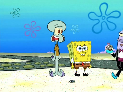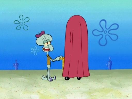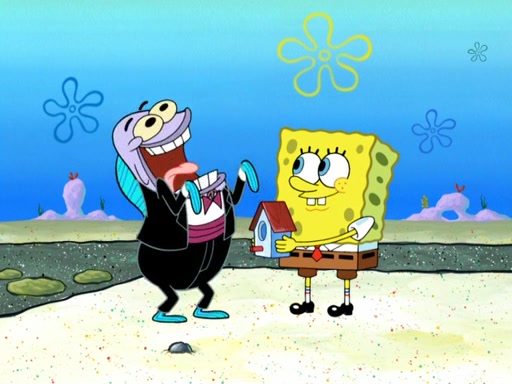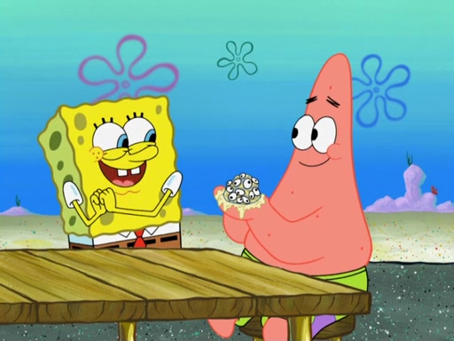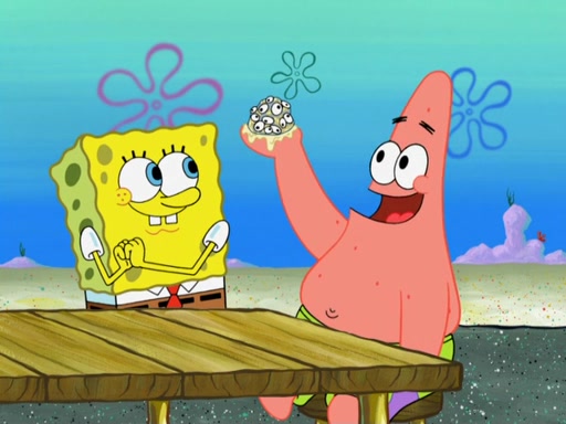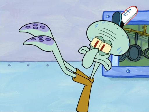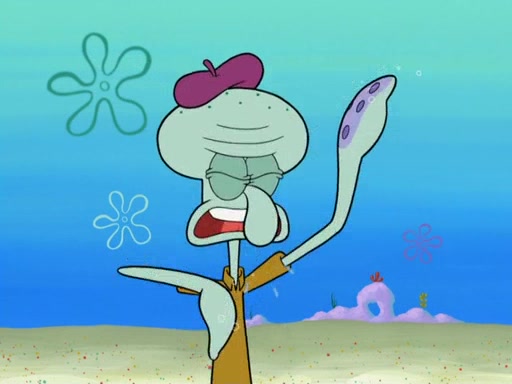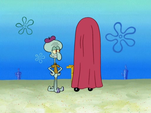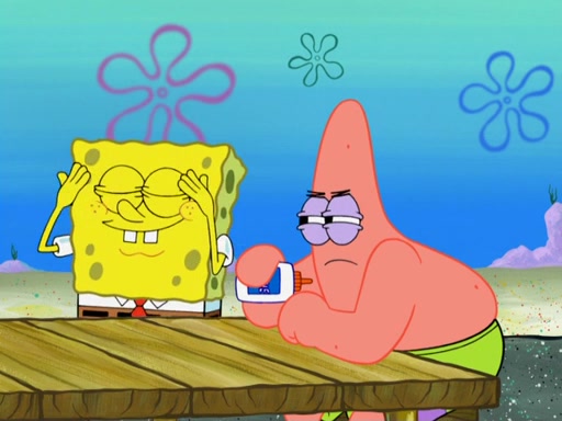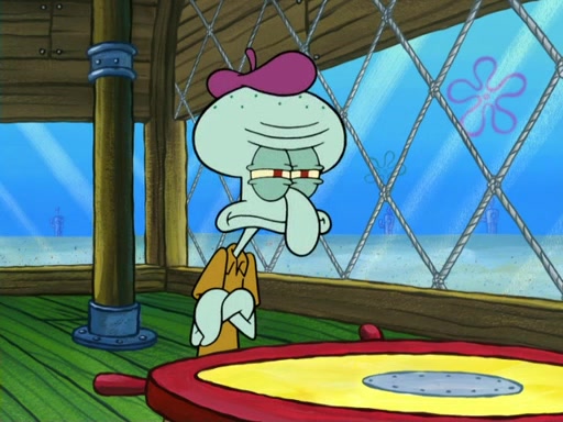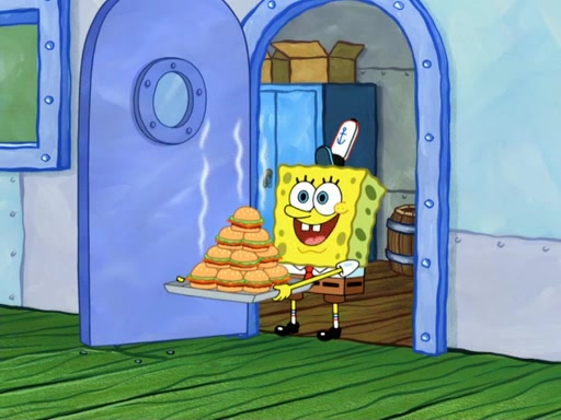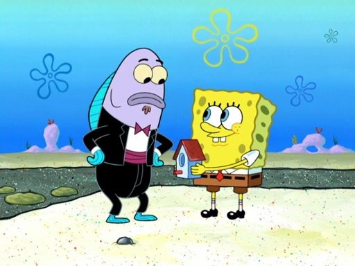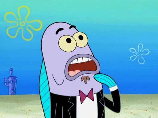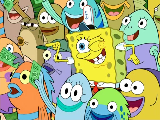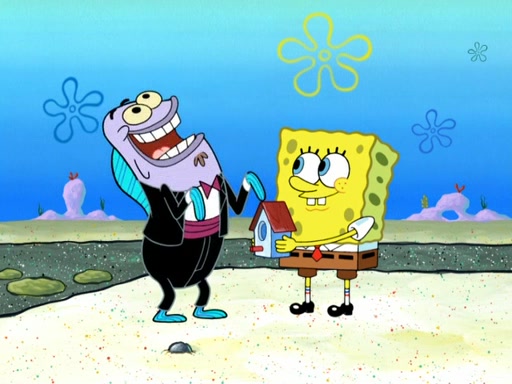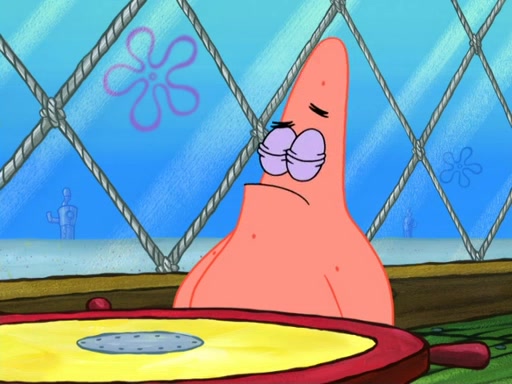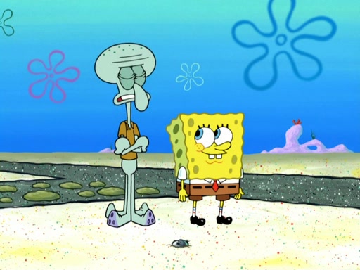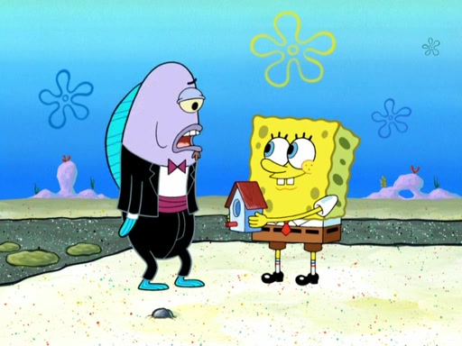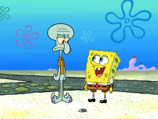 Now, Krabby Patties are sold at $50. The fish who buys the patty said it was not expensive. Then, the fish went to Patrick's stall. Patrick calls his apprentice, which is really Squidward. Squidward puts glue on the fish's patty. Patrick said that Squidward could be an artist one day. Squidward then bursts to tears.