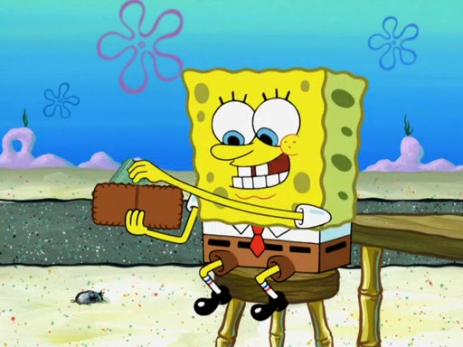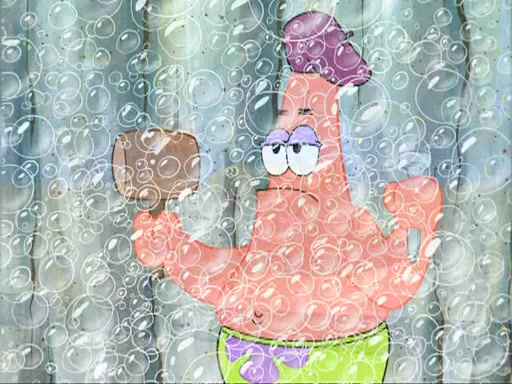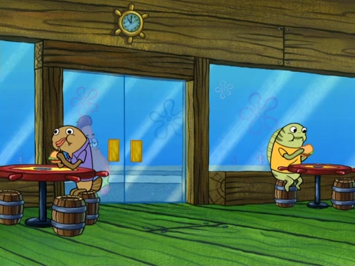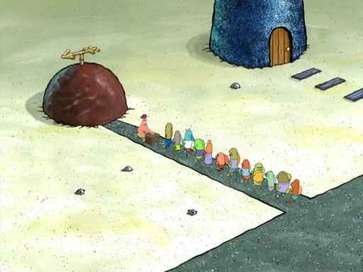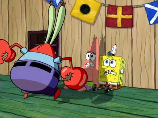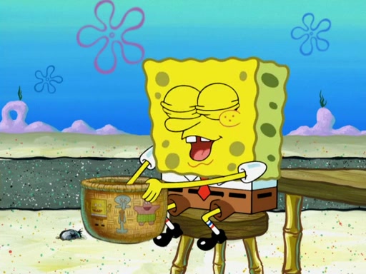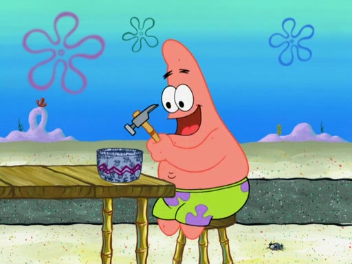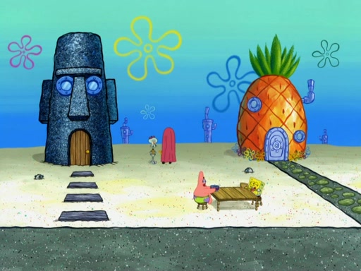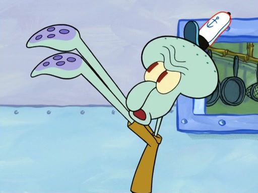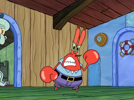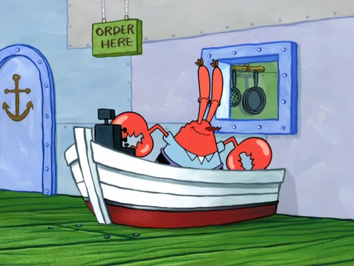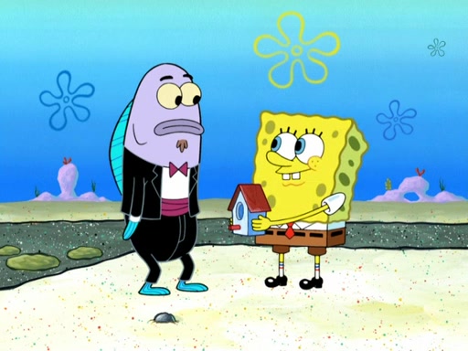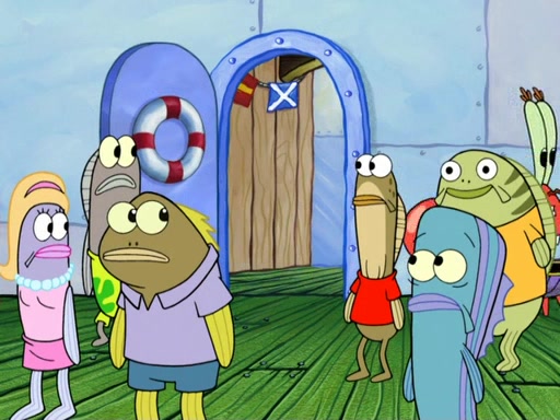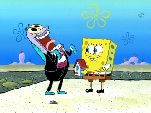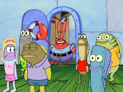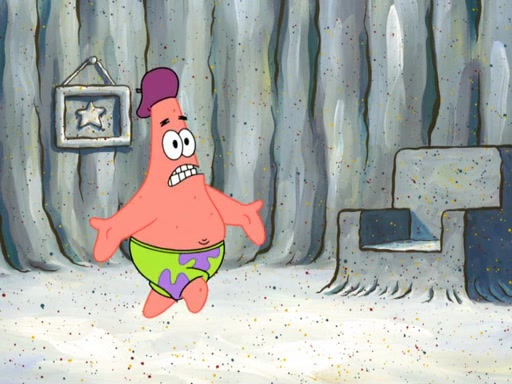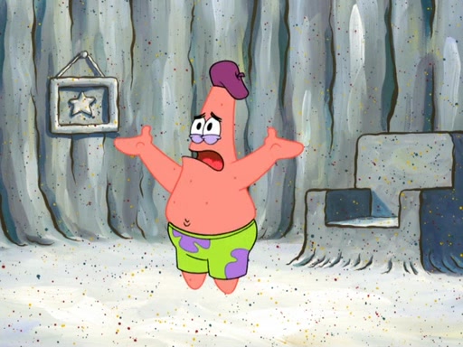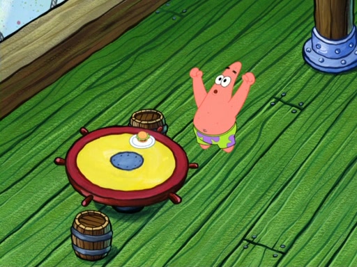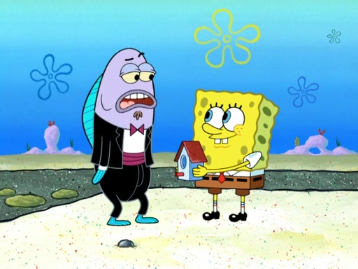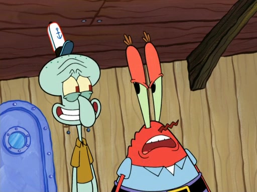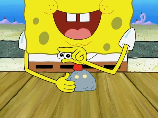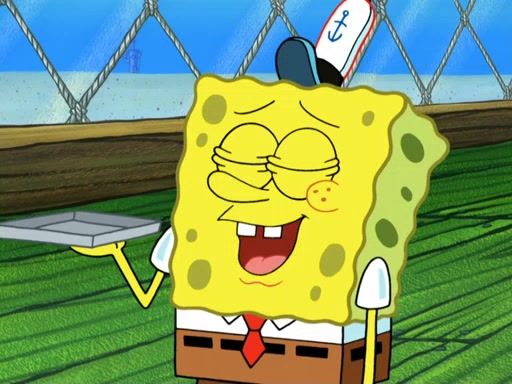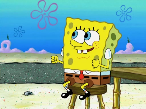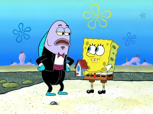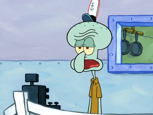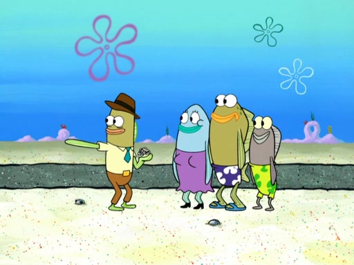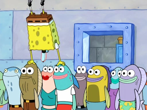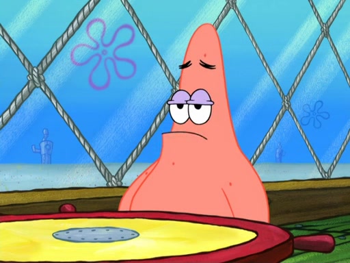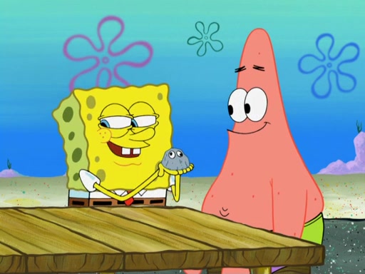 Now, Krabby Patties are sold at $50. The fish who buys the patty said it was not expensive. Then, the fish went to Patrick's stall. Patrick calls his apprentice, which is really Squidward. Squidward puts glue on the fish's patty. Patrick said that Squidward could be an artist one day. Squidward then bursts to tears.