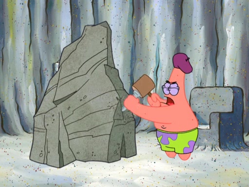 The episode starts at Squidward's house. Squidward is shown pushing what appears to be a sculpture with a sheet over it into his yard. Then, Patrick and SpongeBob call to him and ask if he wants to join them in making arts and crafts. He solemnly says, "No" and tells them that he is a true artist and has a hat to prove it. SpongeBob said he weaved a basket, a wallet and money. Patrick was trying to weave a basket but fails (due to the fact that he kept hammering his finished piece). Squidward walks away bitterly and Patrick becomes upset that he can't make art like SpongeBob and Squidward. SpongeBob shows Patrick how to make a rock with googly eyes on it. Patrick repeats this process and SpongeBob is very impressed (though his rock had googly eyes all over it instead of two normal eyes.) Squidward insults their artwork and then an art critic comes and judges Squidward's work (which was a statue of himself). The art critic says that it is hideous and confiscates Squidward's hat. Then, the art critic judges SpongeBob's art and says it is lame. He then judges Patrick's art and he said it was so wonderful and creative. He gives him $50 and Squidward's hat for it. Squidward is angry at this and repeatedly says over and over "I bet he won't sell another" until SpongeBob stops him. After Patrick sold 4 more rocks Squidward states that he actually wants to go to work today and both SpongeBob and Squidward leave to go to the Krusty Krab.