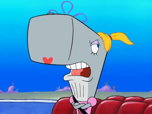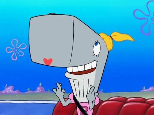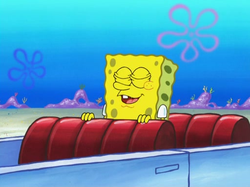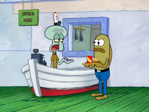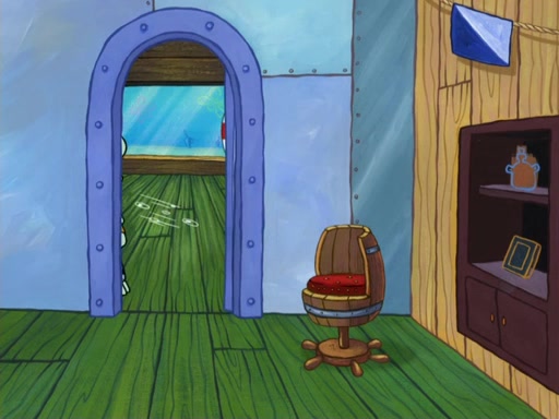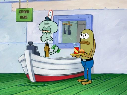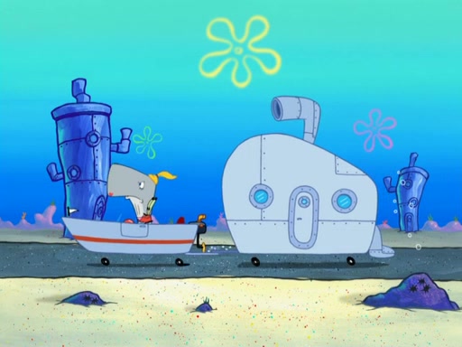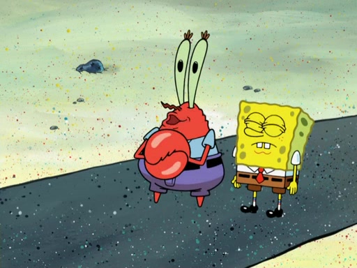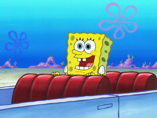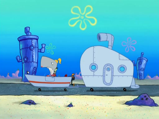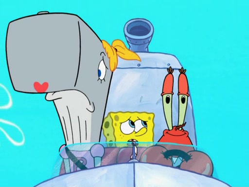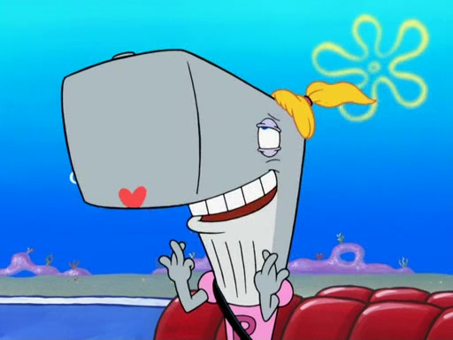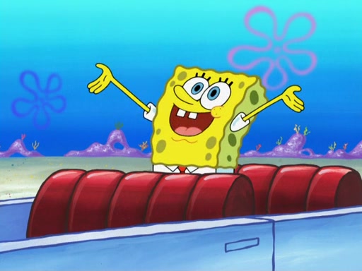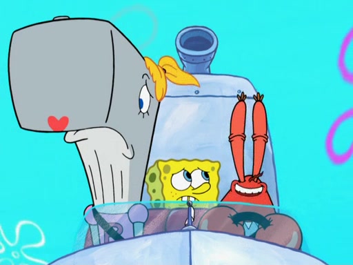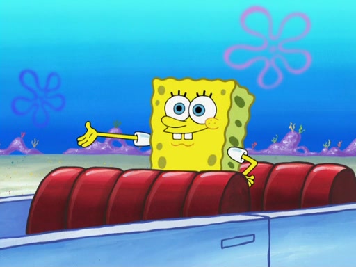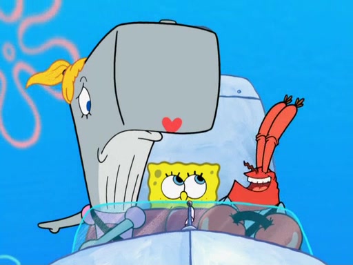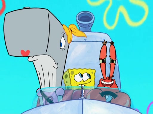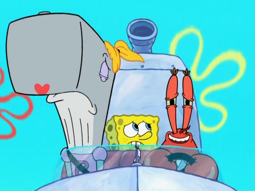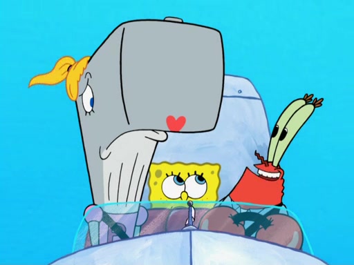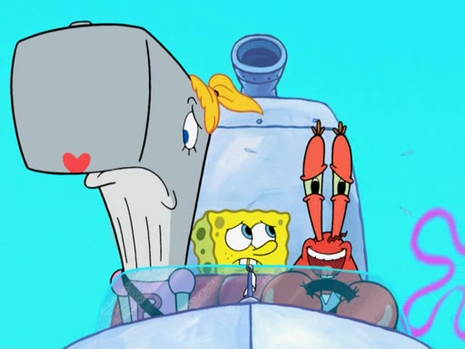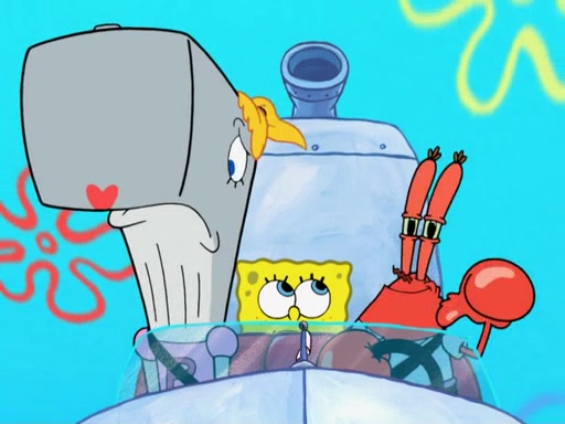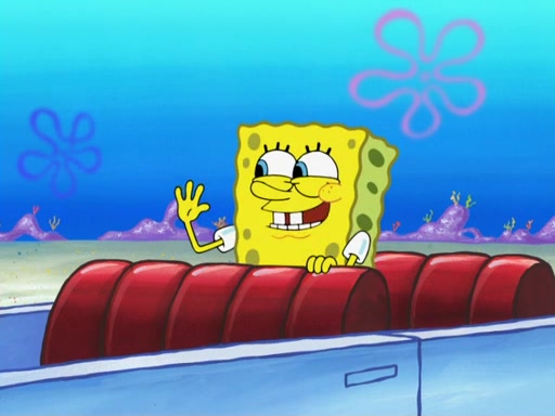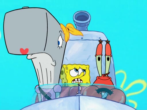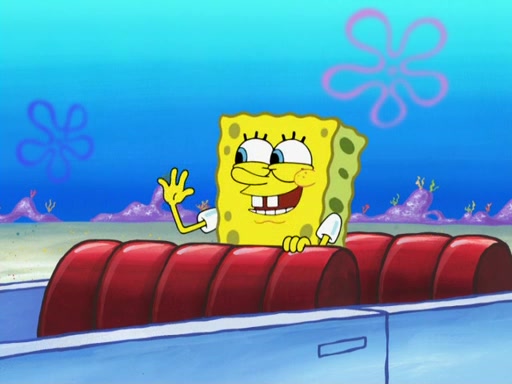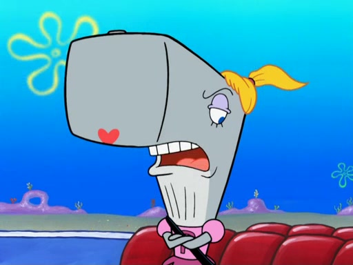 Cuts to flashback, Squidward is about to give out change to a customer but suddenly, Mr. Krabs calls all his employees into his office. In his office, Mr. Krabs says that he will take either Squidward or SpongeBob with him and Pearl on a roadtrip, but then Squidward gets up and leaves (glad that he's closing it down), leaving Mr. Krabs to choose SpongeBob for the trip. Pearl isn't happy, throwing a suitcase on to SpongeBob, telling him not to get up until they leave town. After they leave, SpongeBob asks if he can get up and Pearl says "sure." They pass Super Mega Mall World and Pearl thinks that they are going there, but Mr. Krabs promises where they are going is way better. They then pass Planet Rollercoaster and once again, Pearl thinks that they are going there and Mr. Krabs says where they are going is a hundred times better.