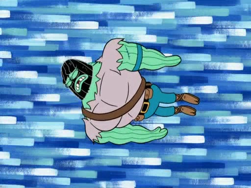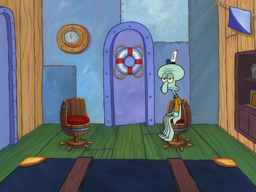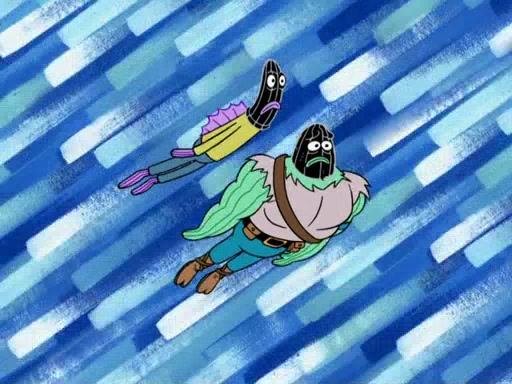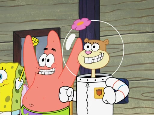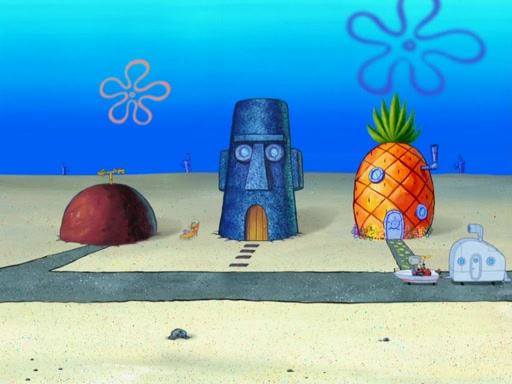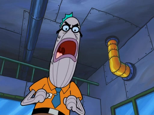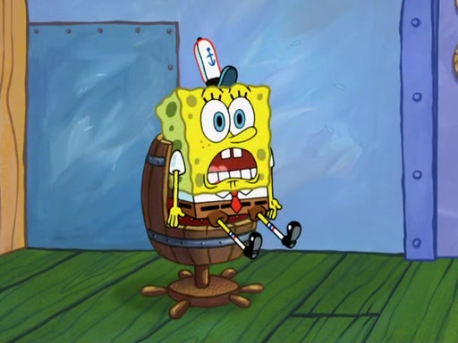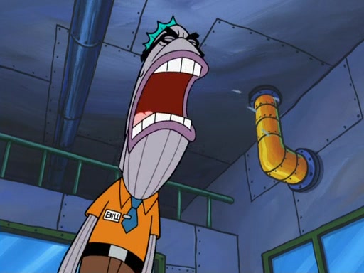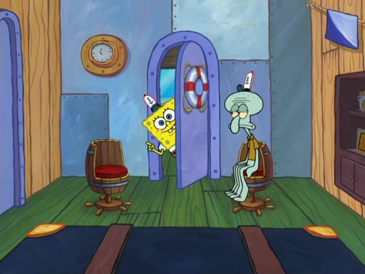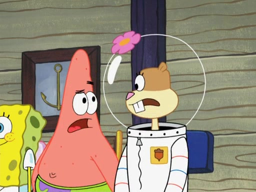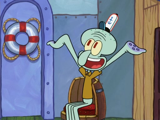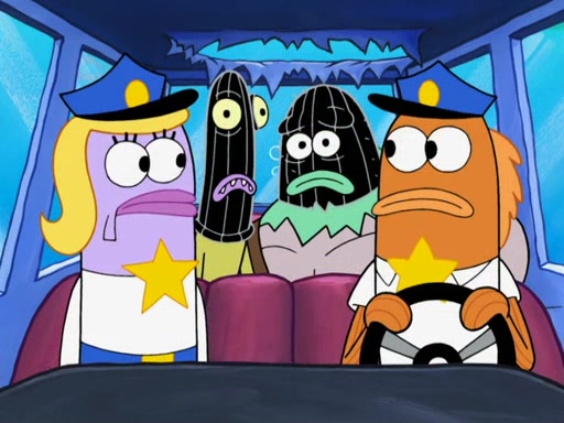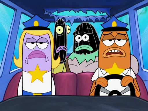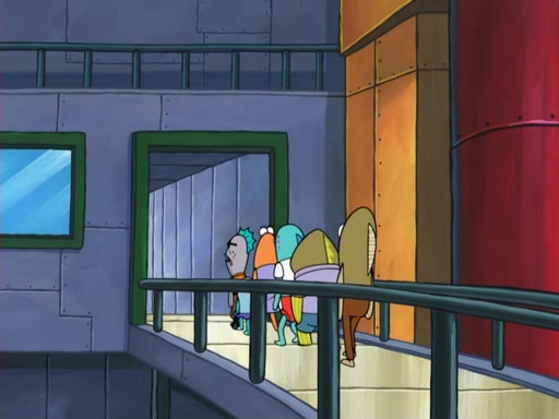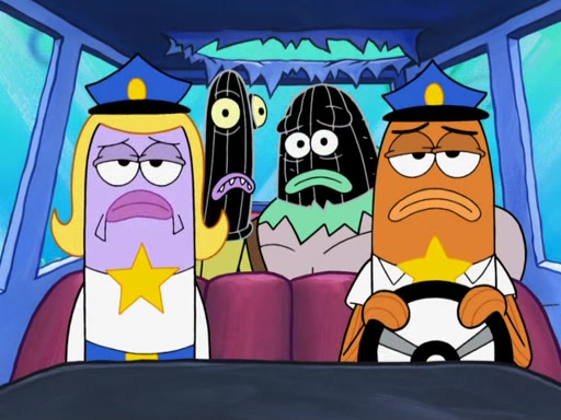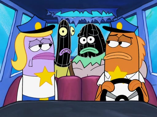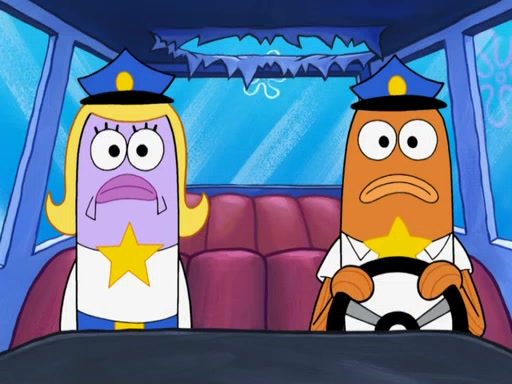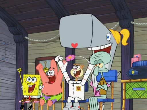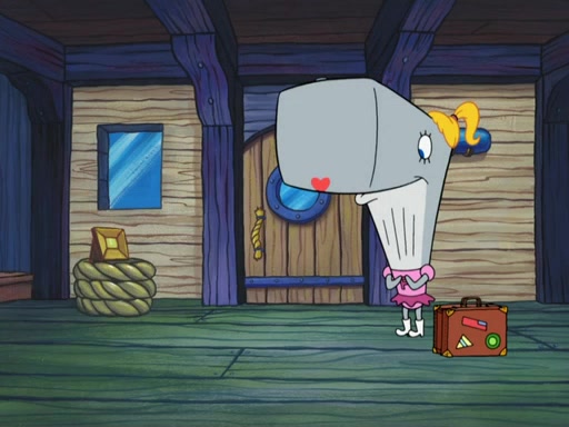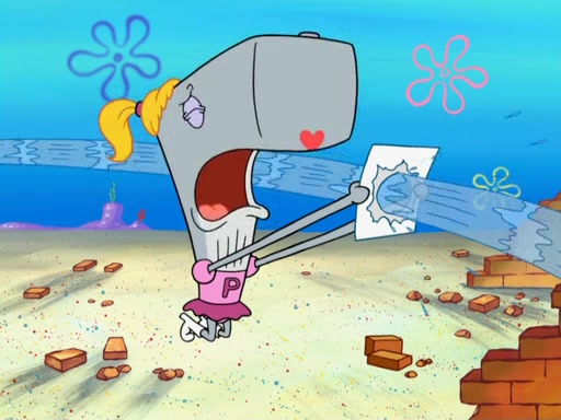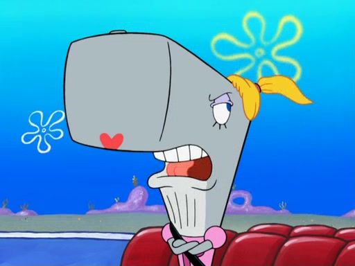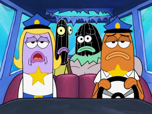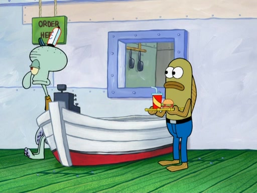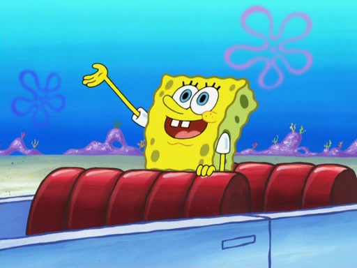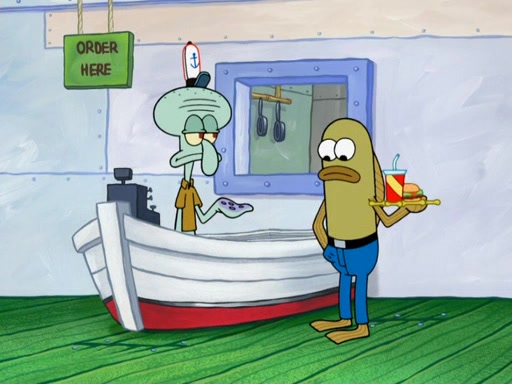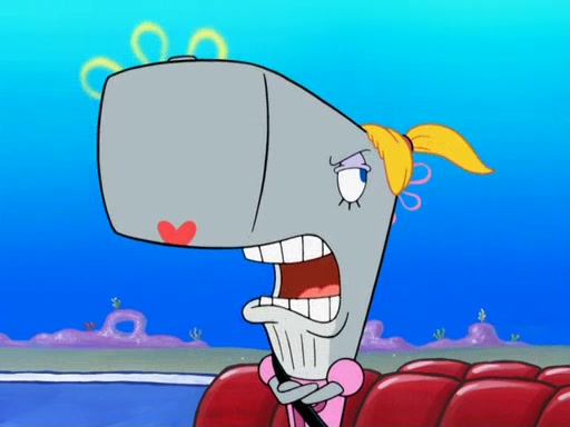Cuts to flashback, Squidward is about to give out change to a customer but suddenly, Mr. Krabs calls all his employees into his office. In his office, Mr. Krabs says that he will take either Squidward or SpongeBob with him and Pearl on a roadtrip, but then Squidward gets up and leaves (glad that he's closing it down), leaving Mr. Krabs to choose SpongeBob for the trip. Pearl isn't happy, throwing a suitcase on to SpongeBob, telling him not to get up until they leave town. After they leave, SpongeBob asks if he can get up and Pearl says "sure." They pass Super Mega Mall World and Pearl thinks that they are going there, but Mr. Krabs promises where they are going is way better. They then pass Planet Rollercoaster and once again, Pearl thinks that they are going there and Mr. Krabs says where they are going is a hundred times better.