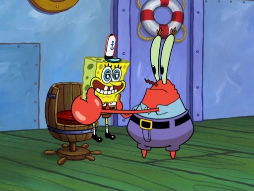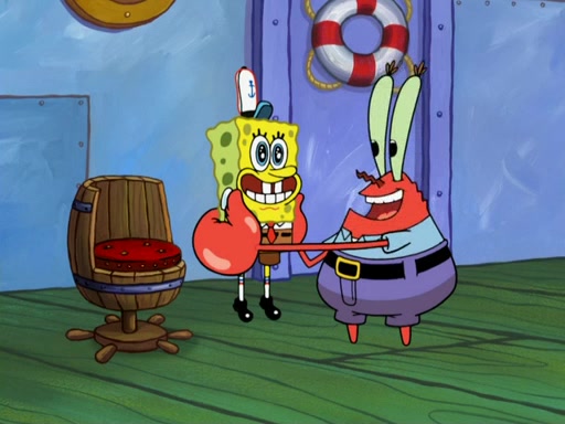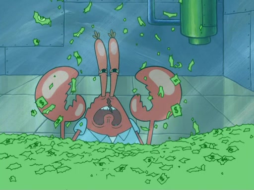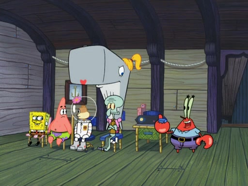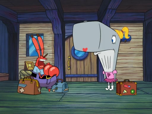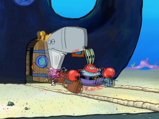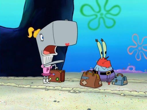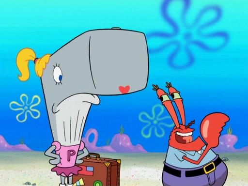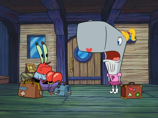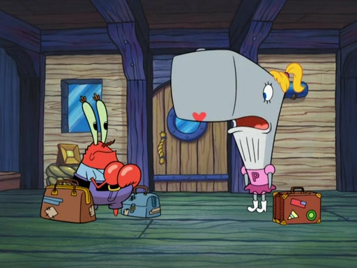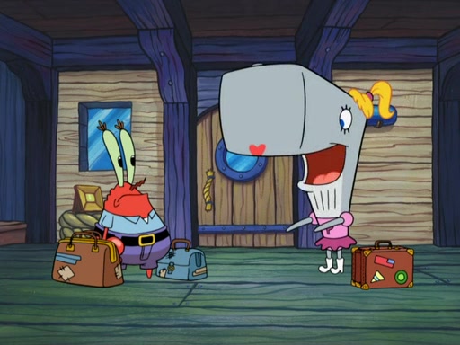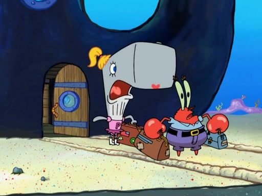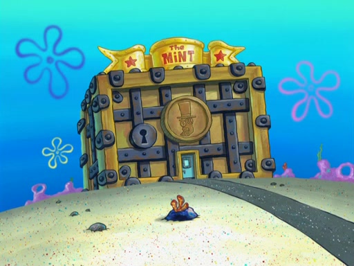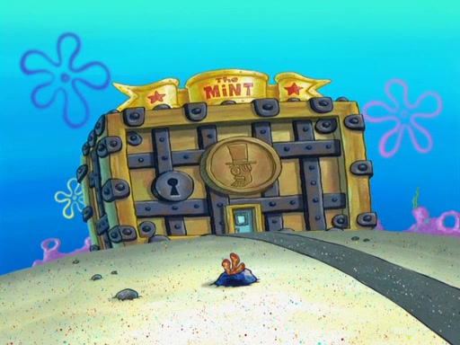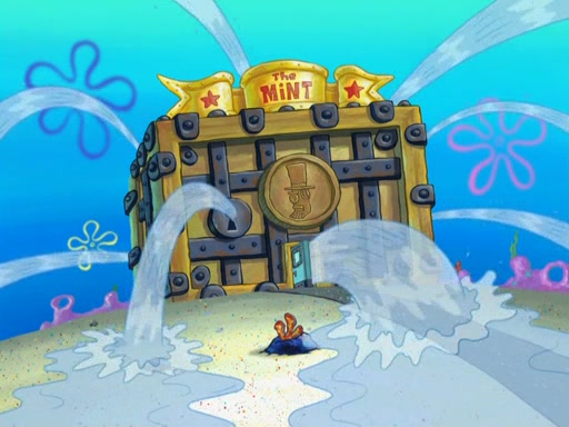 The episode starts off with Mr. Krabs showing SpongeBob, Patrick, Squidward, Sandy, and Pearl a slideshow about his vacation to the Bikini Bottom Mint.
