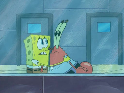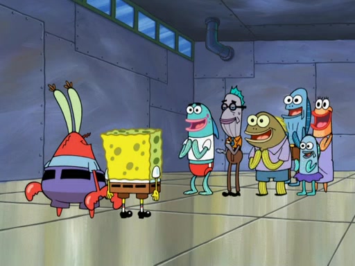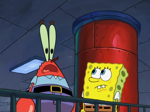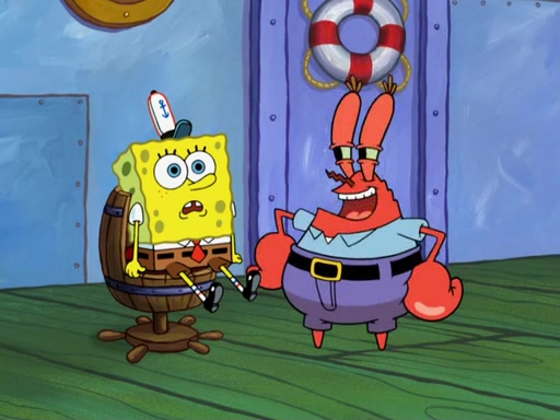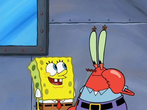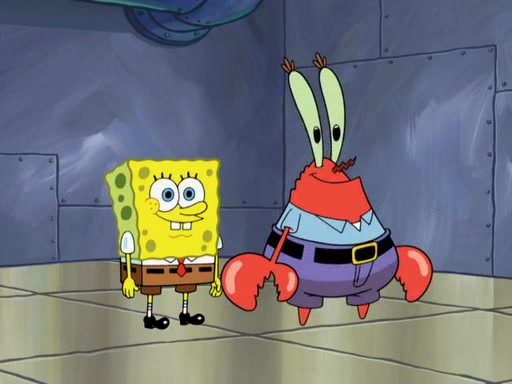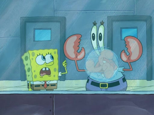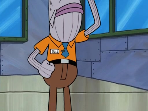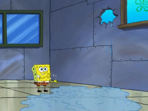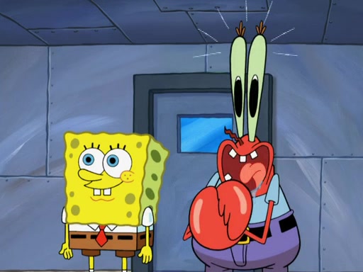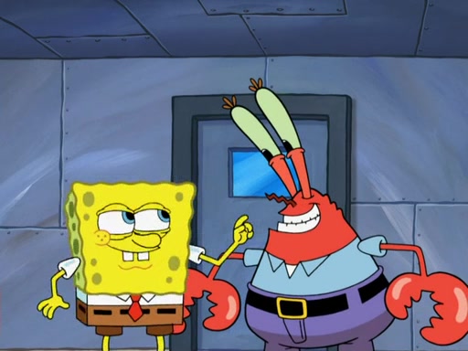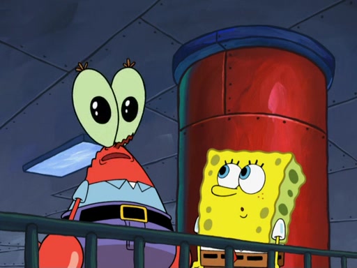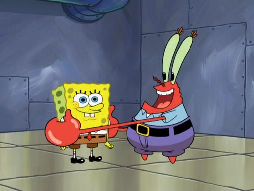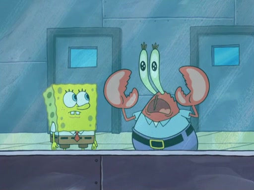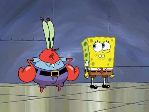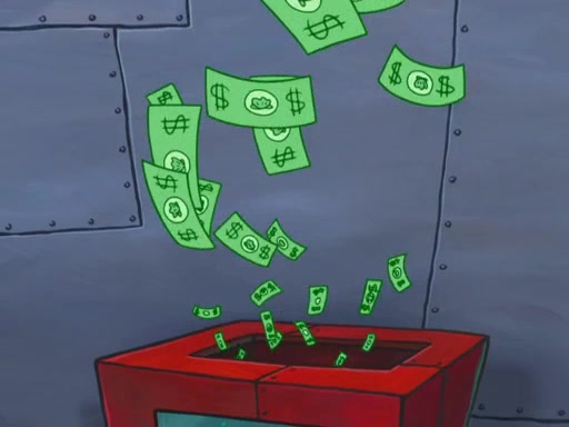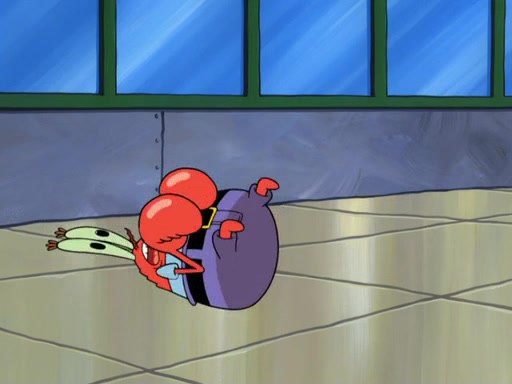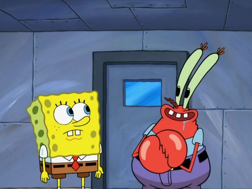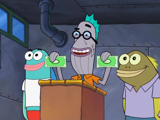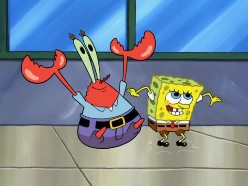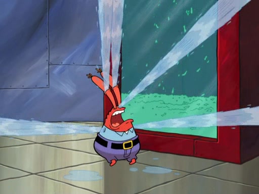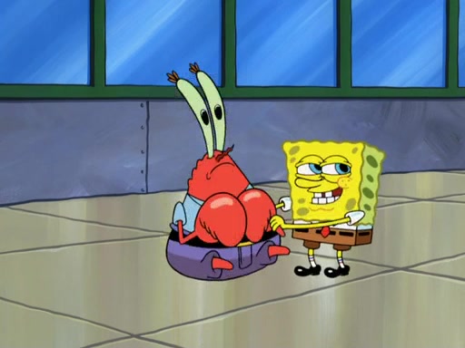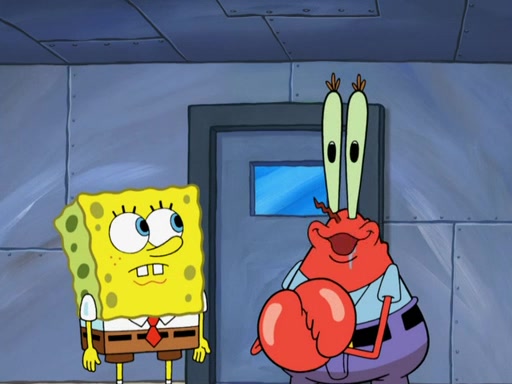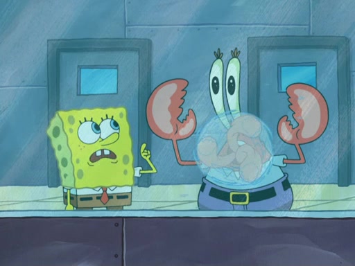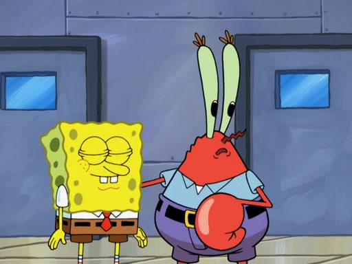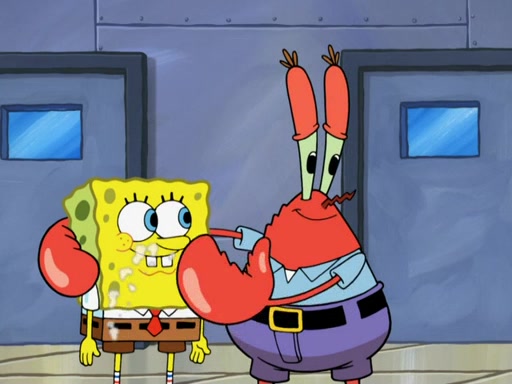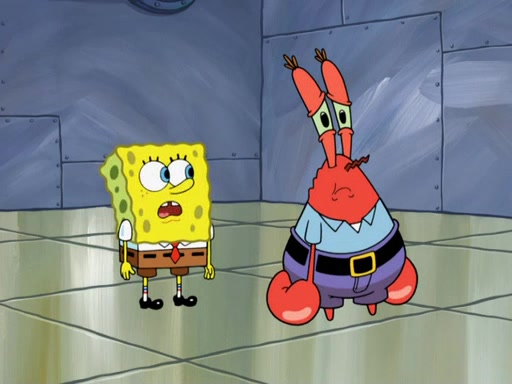 He starts crying, which floods the factory. SpongeBob absorbs the water and shoots it out the wall, destroying the autographed photo that Pearl finds. Bill is tired of SpongeBob and Mr. Krabs constantly interrupting the tour, so he then calls security to escort SpongeBob and Mr. Krabs out, but sees them tied up and gagged by two bank robbers. SpongeBob and Mr. Krabs stop them and are each rewarded with a Special Edition 1 dollar bill with their faces on it. Mr. Krabs then takes the bill from SpongeBob, saying that "he hasn't charged him yet for bringing him on this trip."