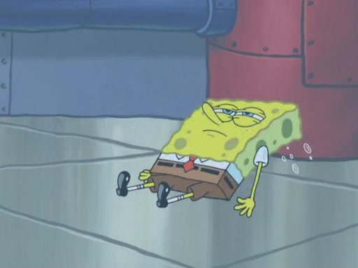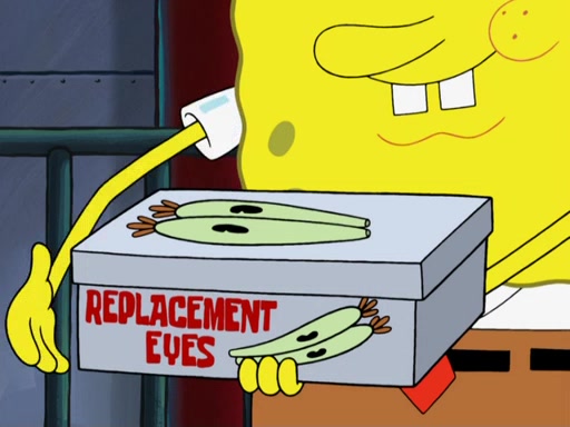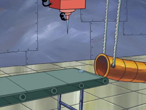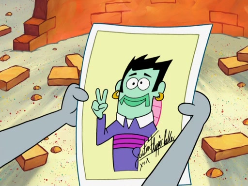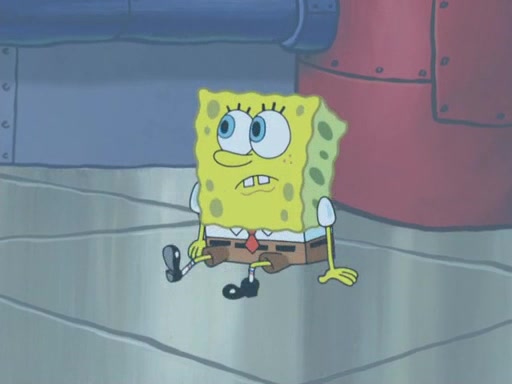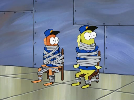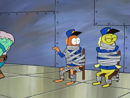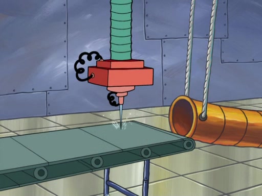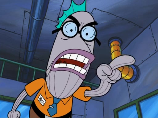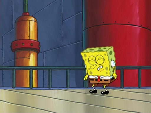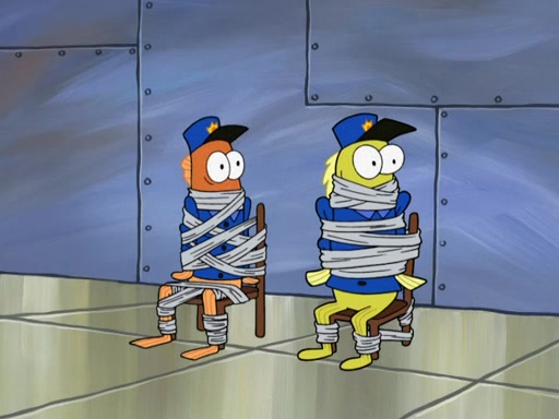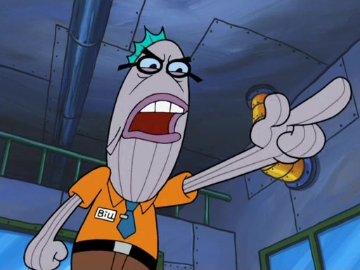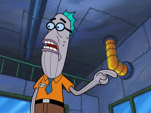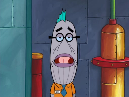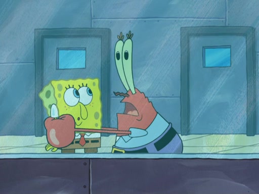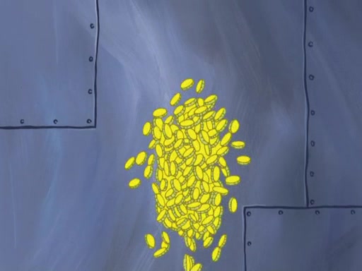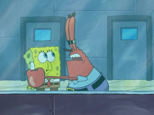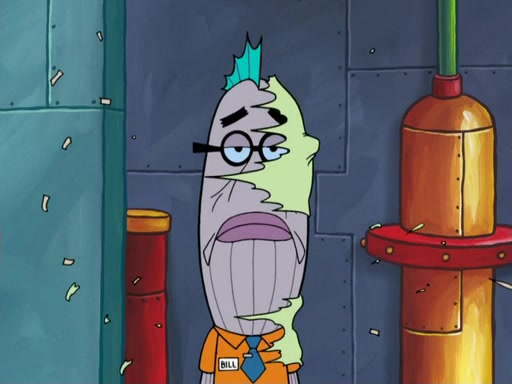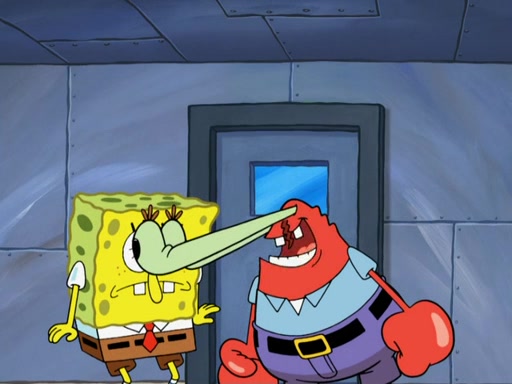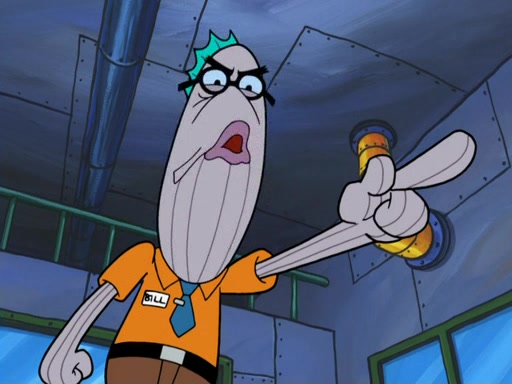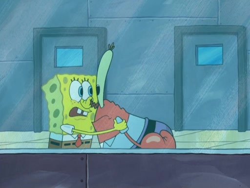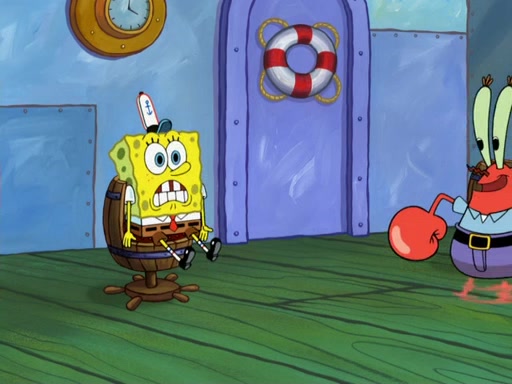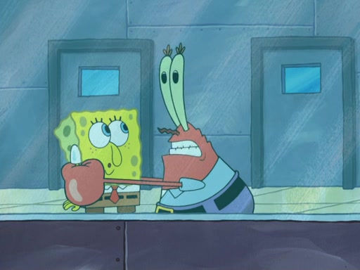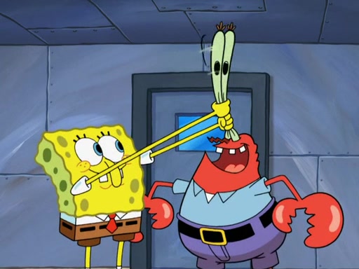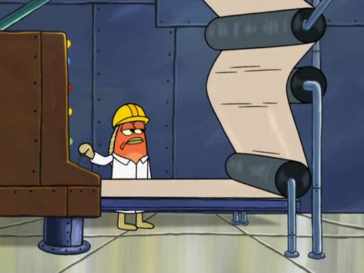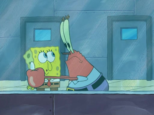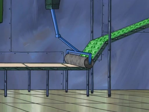 He starts crying, which floods the factory. SpongeBob absorbs the water and shoots it out the wall, destroying the autographed photo that Pearl finds. Bill is tired of SpongeBob and Mr. Krabs constantly interrupting the tour, so he then calls security to escort SpongeBob and Mr. Krabs out, but sees them tied up and gagged by two bank robbers. SpongeBob and Mr. Krabs stop them and are each rewarded with a Special Edition 1 dollar bill with their faces on it. Mr. Krabs then takes the bill from SpongeBob, saying that "he hasn't charged him yet for bringing him on this trip."